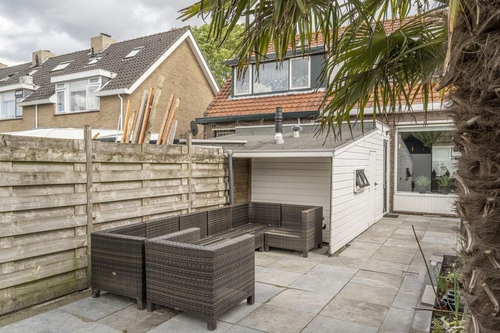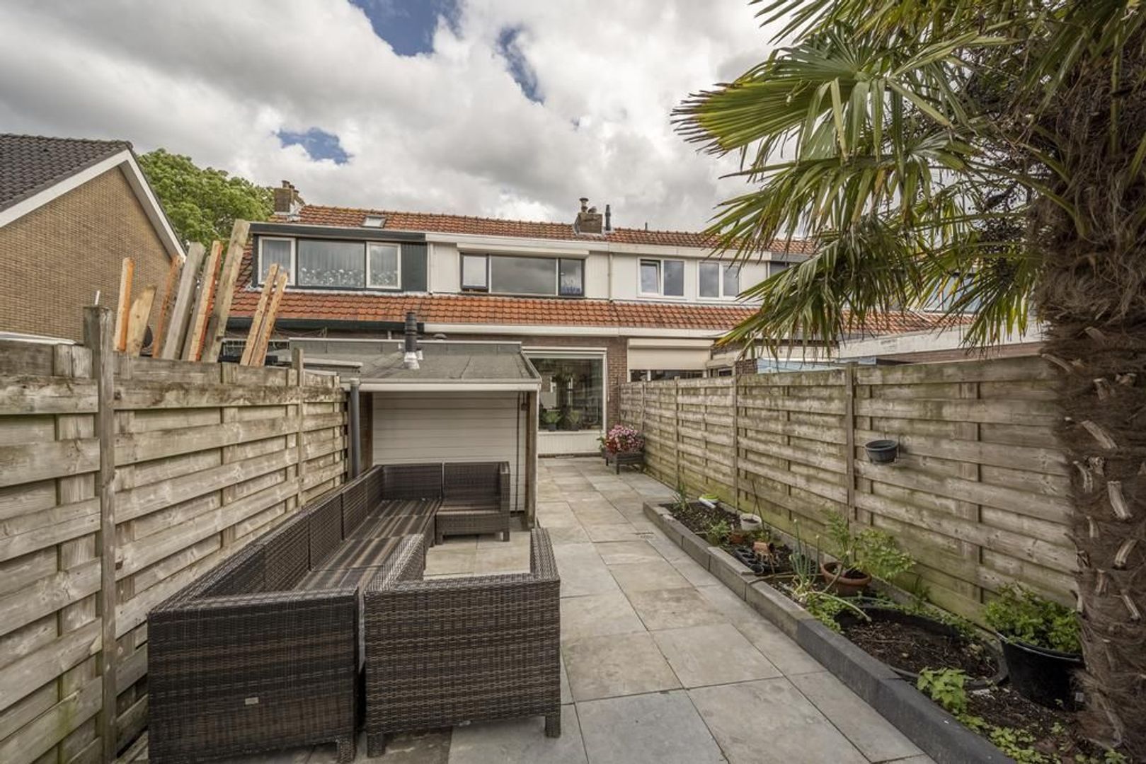 De diepe achtertuin ligt op het westen, wat garant staat voor maximale bezonning.