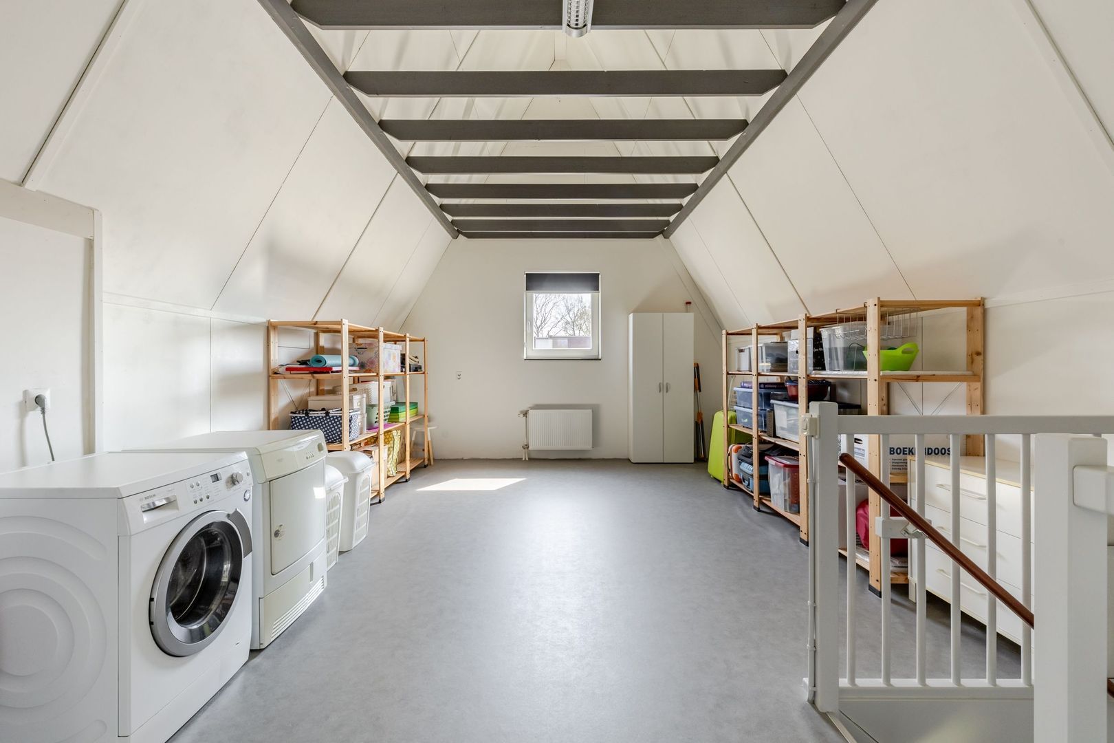 Er is een multifunctionele zolderruimte, met daarin o.a. de opstelplaats van de cv-ketel en de aansluitingen voor de wasapparatuur. De vierde slaapkamer is voorzien van een kopgevelraam en een extra dakraam.