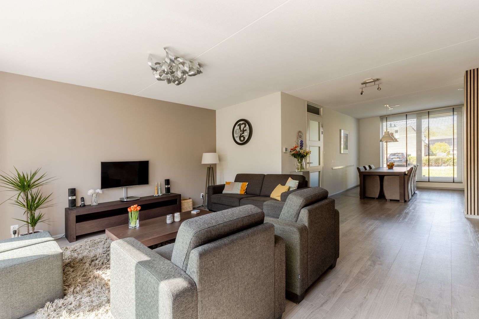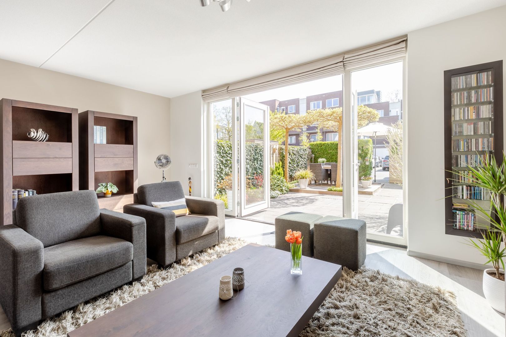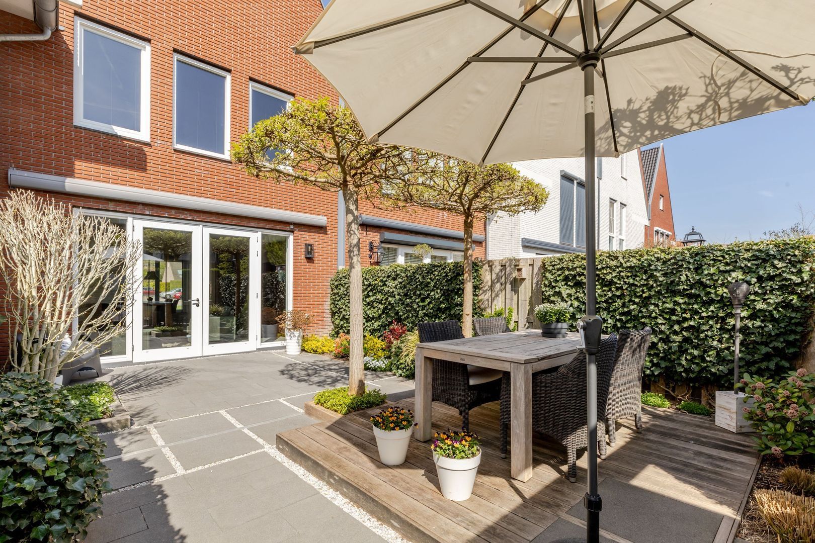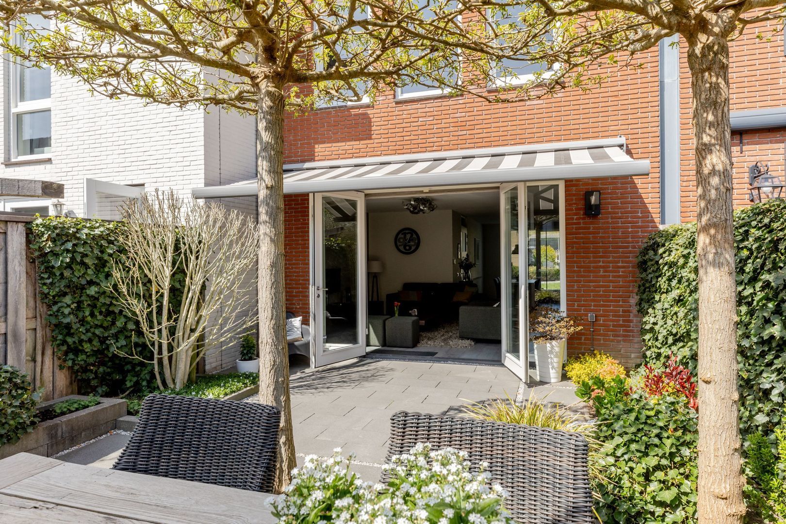 Bijzonder ruime woning met prachtig aangelegde tuin en parkeerplaats op eigen terrein.