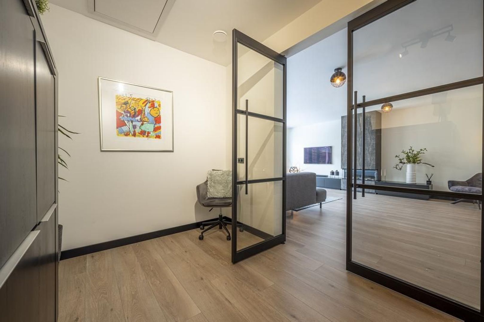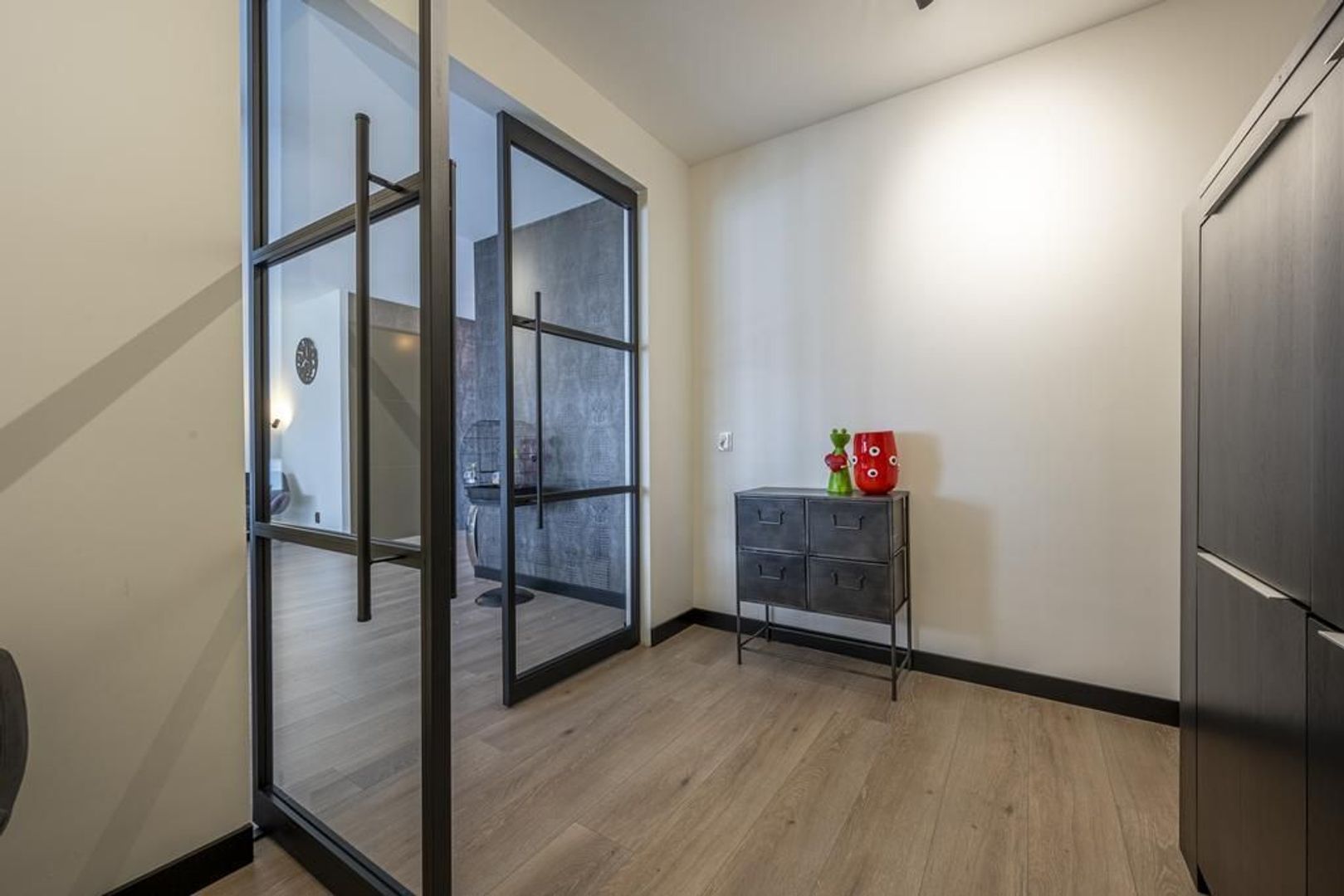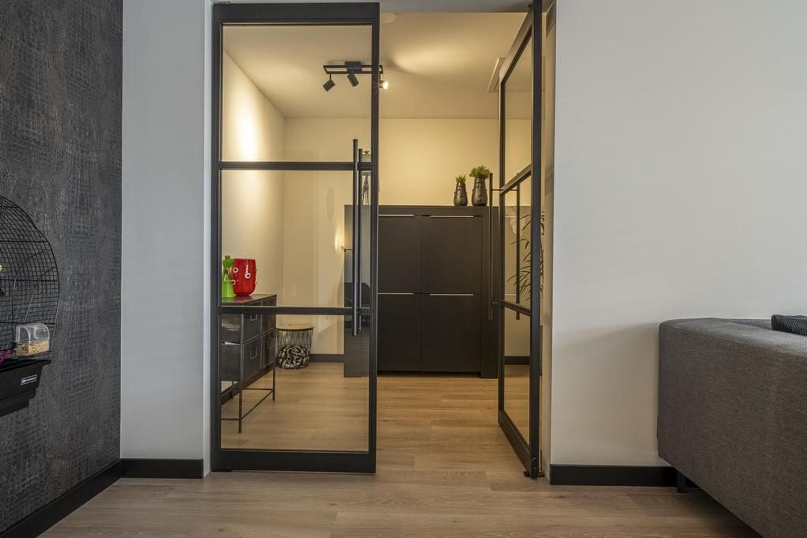 De voormalige berging is verbouwd tot mooie werkkamer annex speelkamer/hobbyruimte. De stalen deuren zijn helemaal van deze tijd.