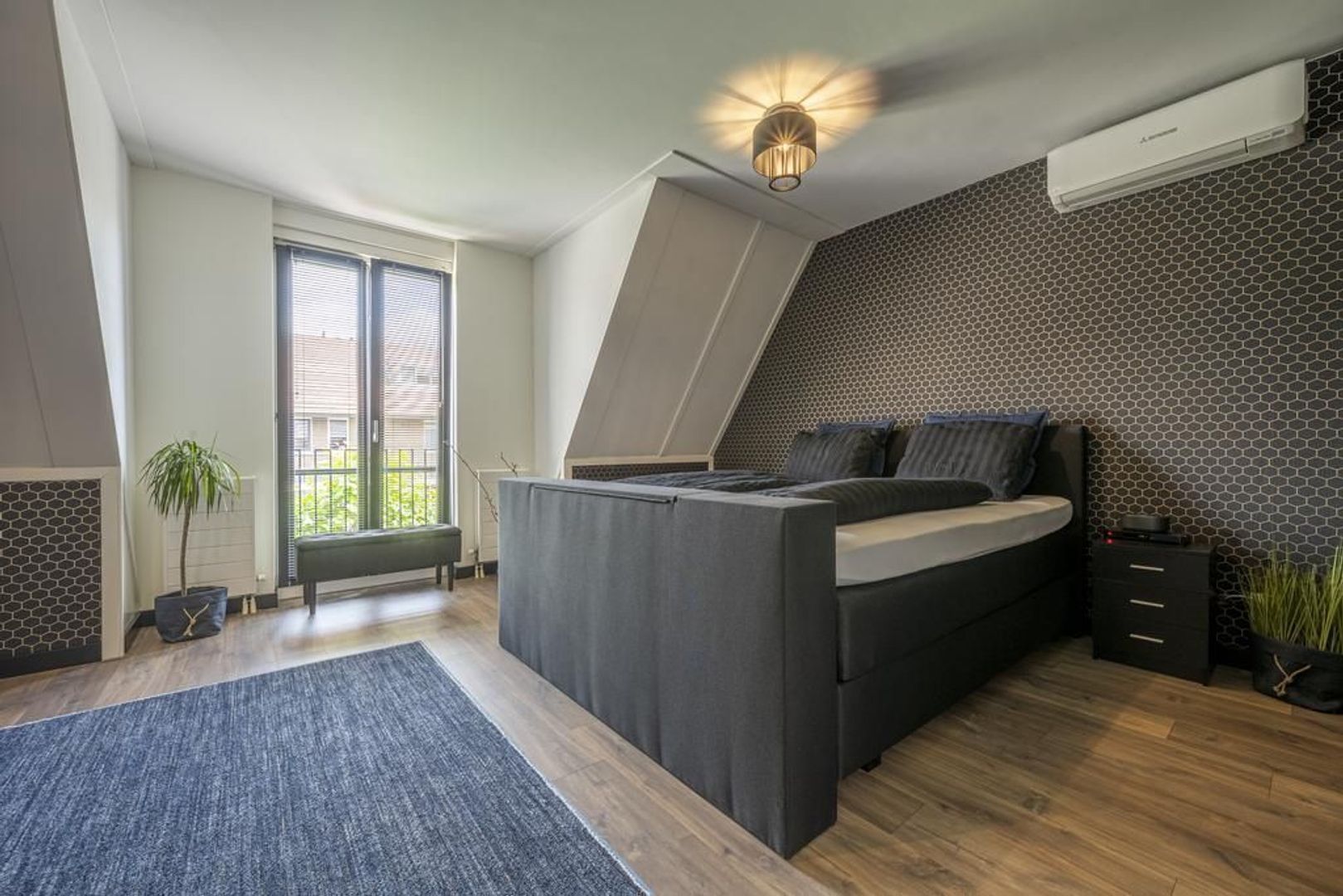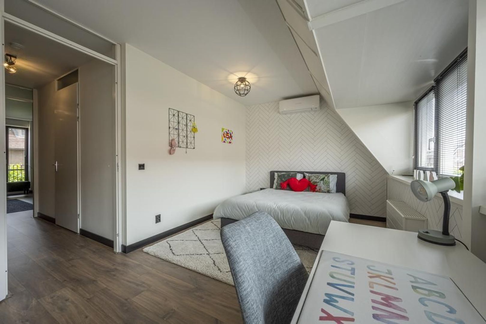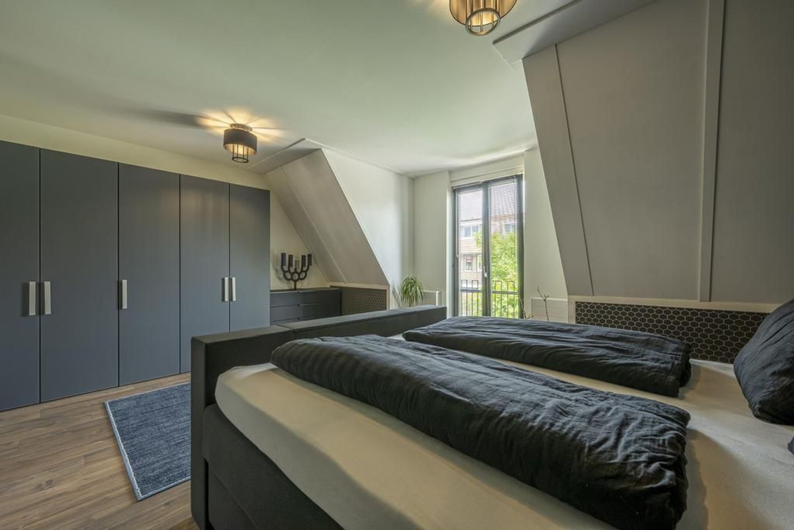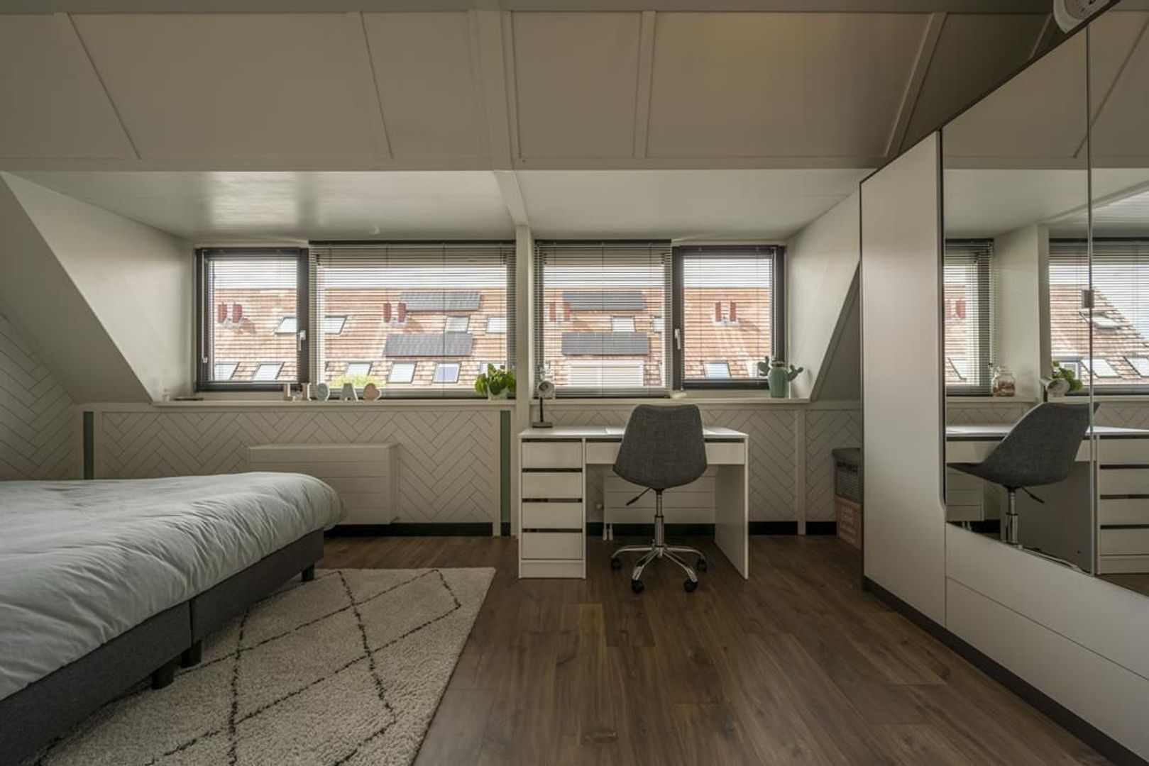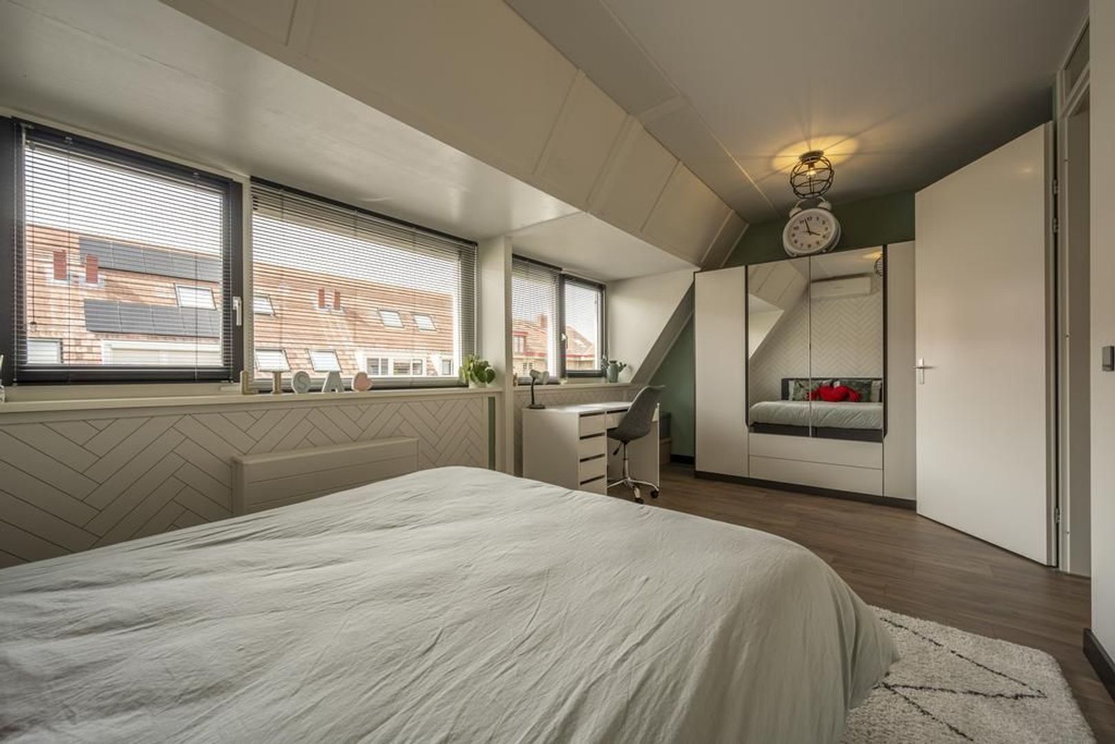 De masterbedroom is voorzien van het karakteristieke Franse balkon in de moderne betonnen dakkapel.