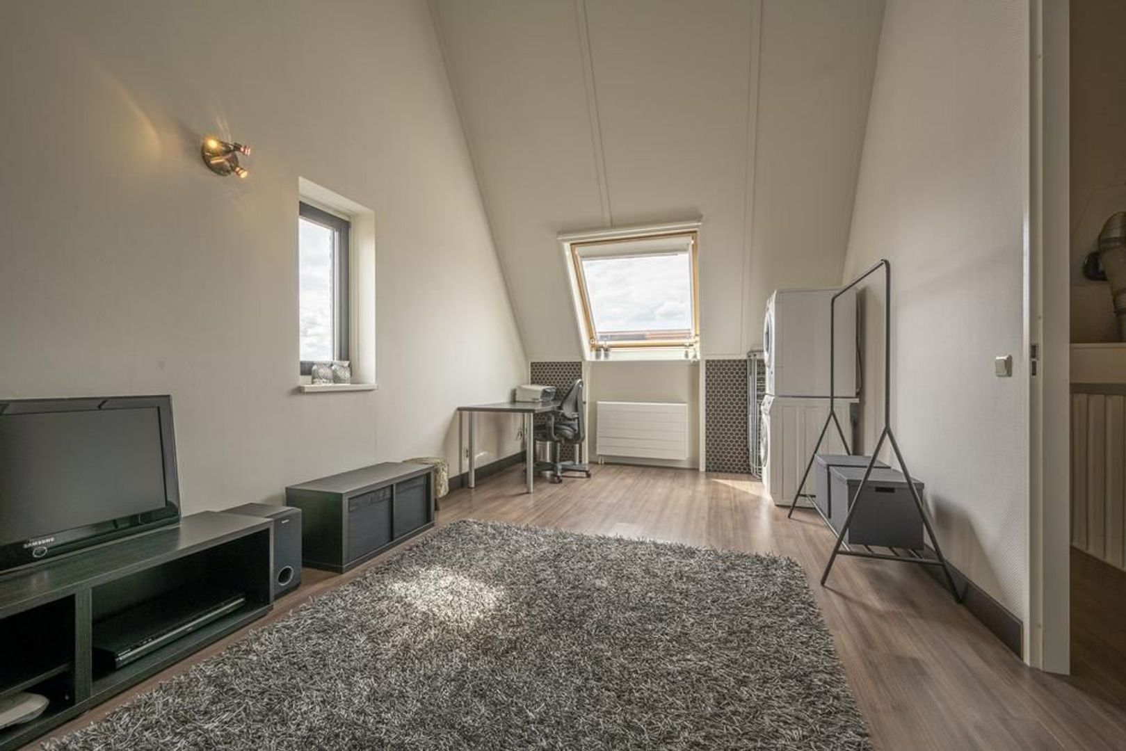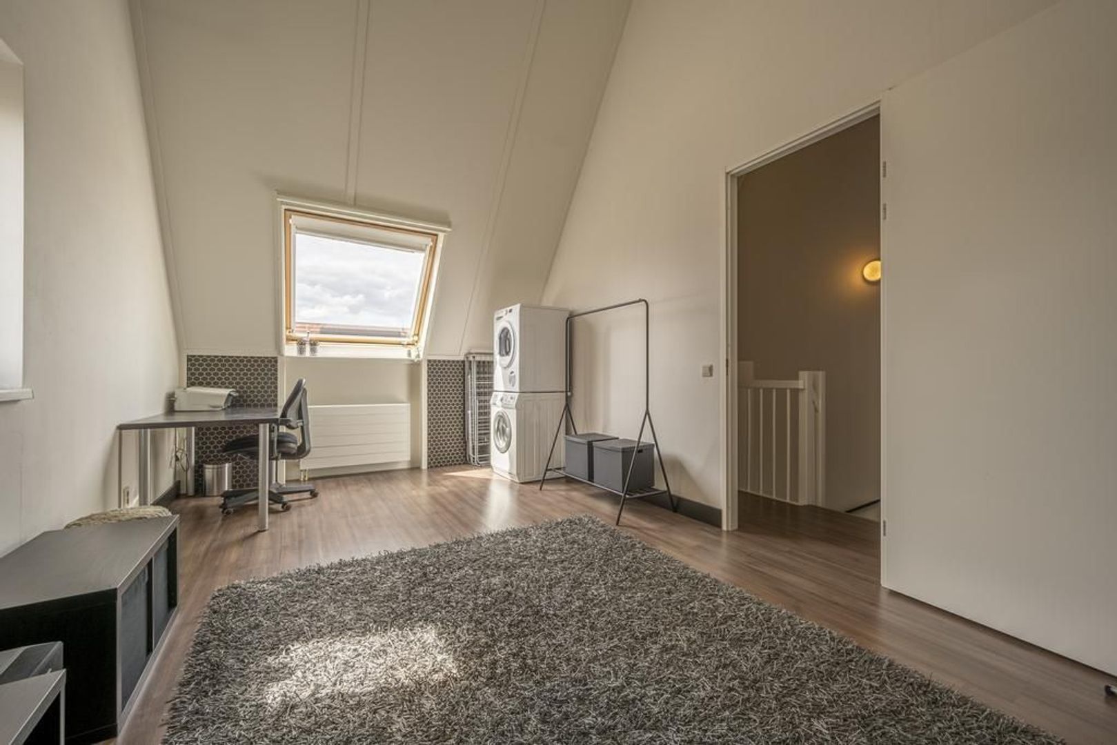 De derde slaapkamer, met de aansluitingen voor de wasapparatuur, is voorzien van een tuimelraam en een raam in de zijgevel. Dit maakt het tot een prettig lichte, volwaardige kamer.