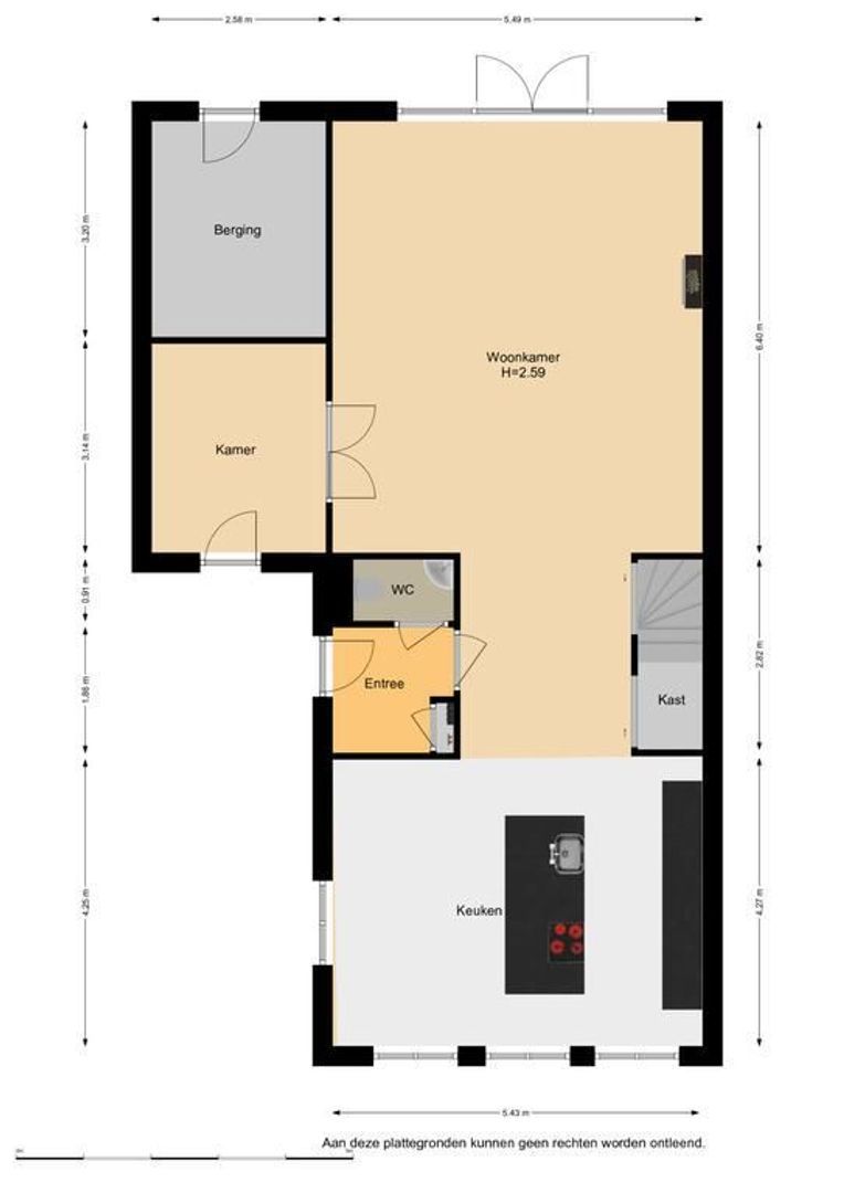 De zwarte deur ter plaatse van de trapopgang wordt ook voor de trapkast gehangen (waar nu de witte deur hangt)