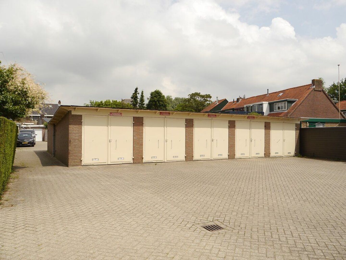 Dit betreft een box die ligt op een binnenterrein met daarop 19 garageboxen. De garagebox staat op eigen grond. Het overige binnenterrein en de ontsluitingsweg zijn gezamenlijk eigendom.