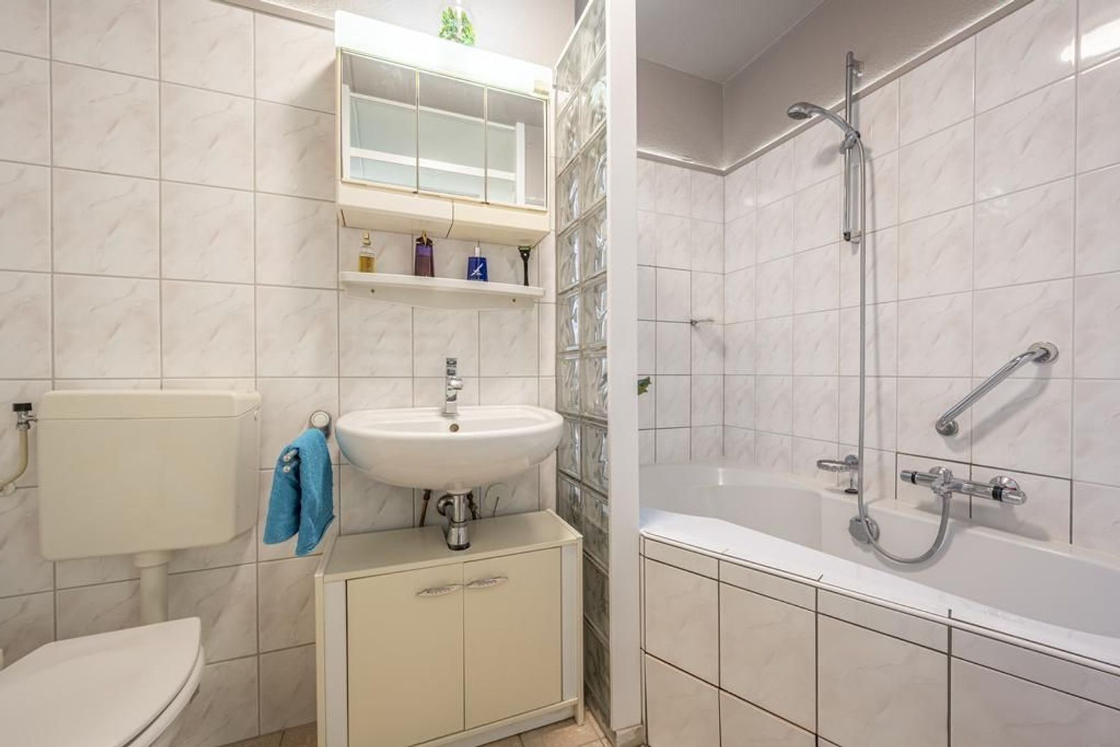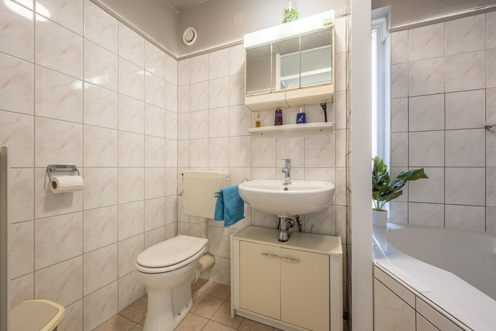De badkamer is ingericht met een zitbad, een wastafel en een tweede toilet.