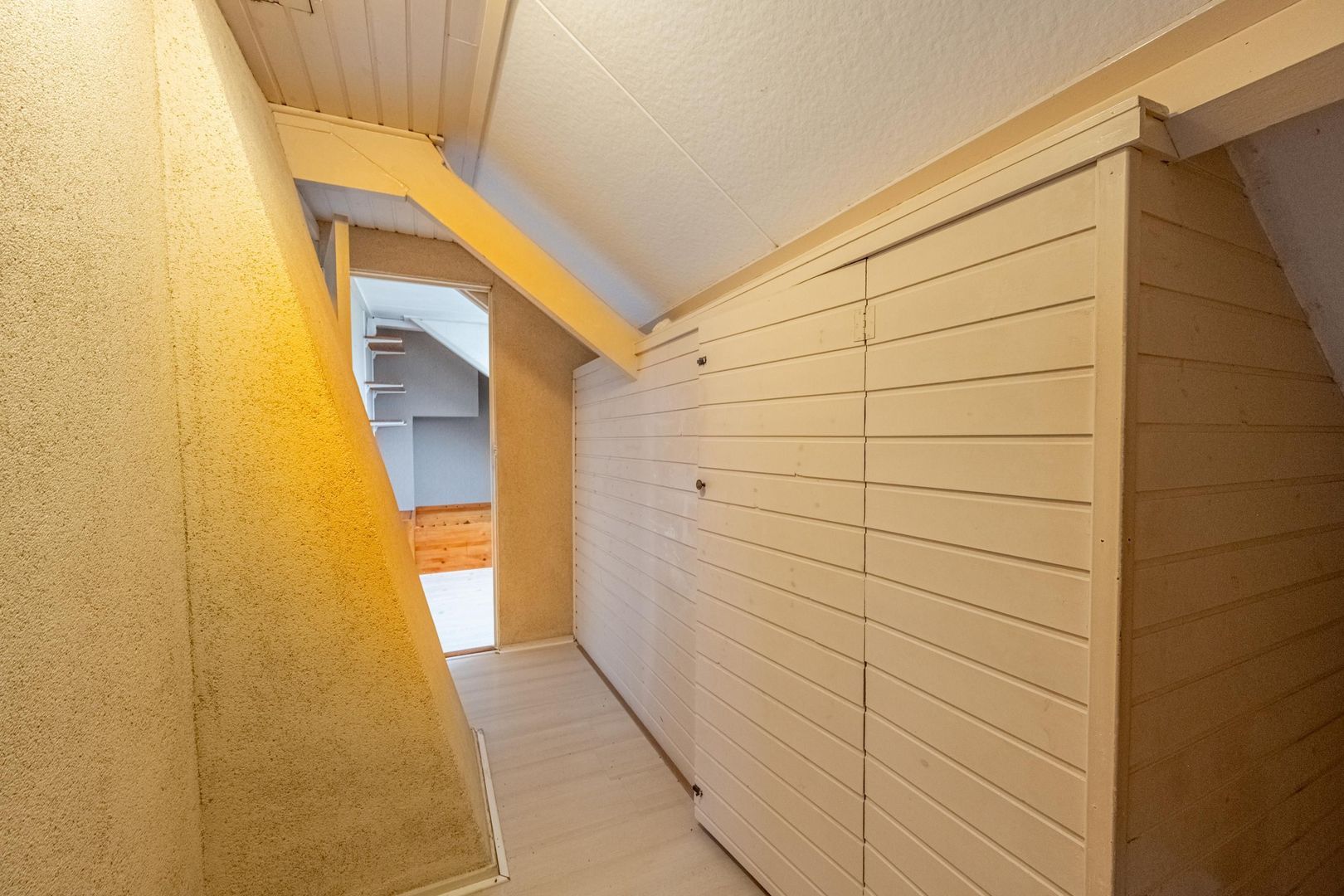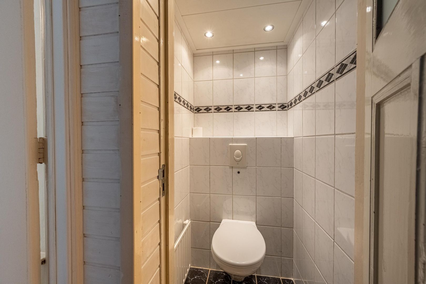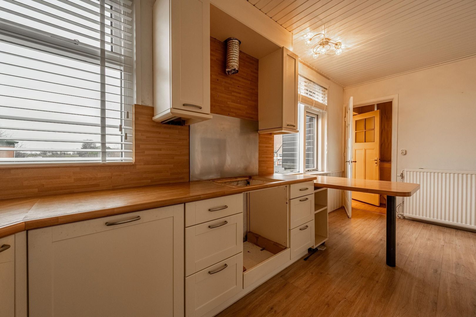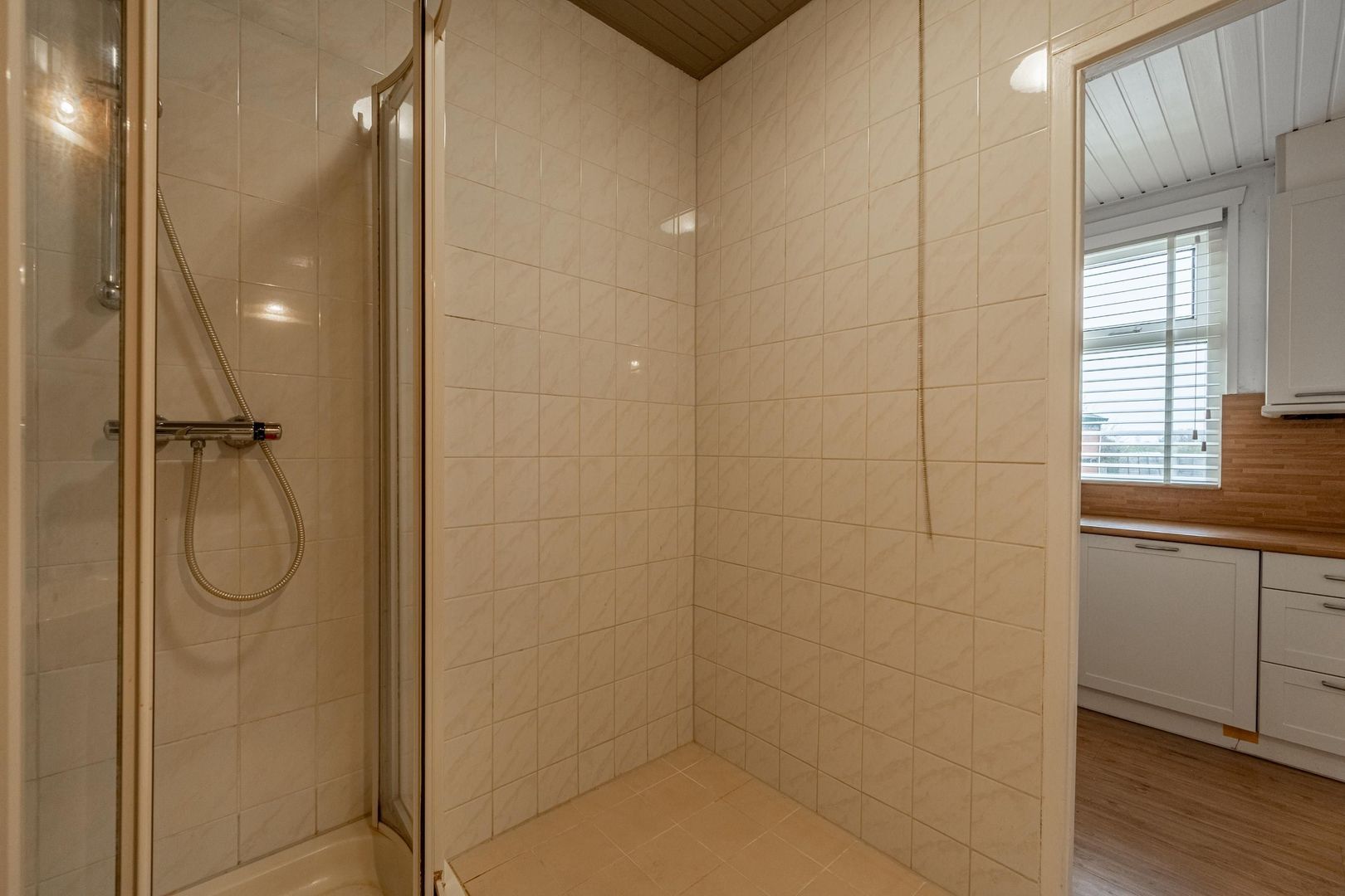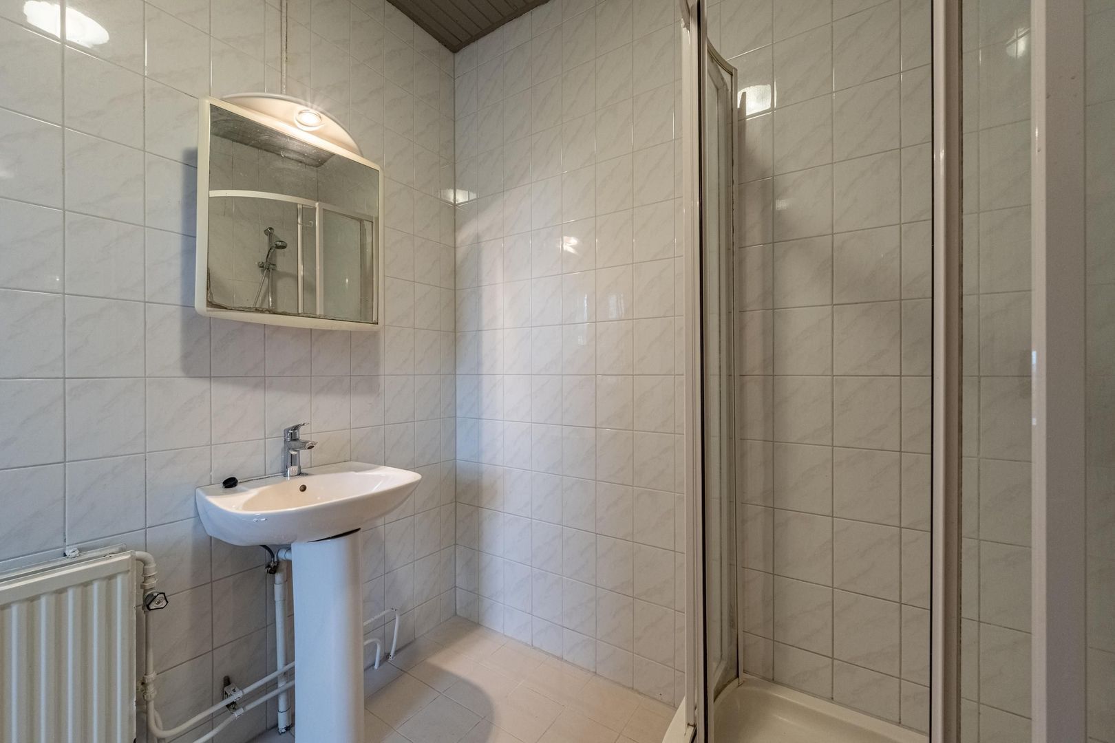 Via de keuken is de tussenhal met toiletruimte en de trapopgang naar de verdieping bereikbaar.