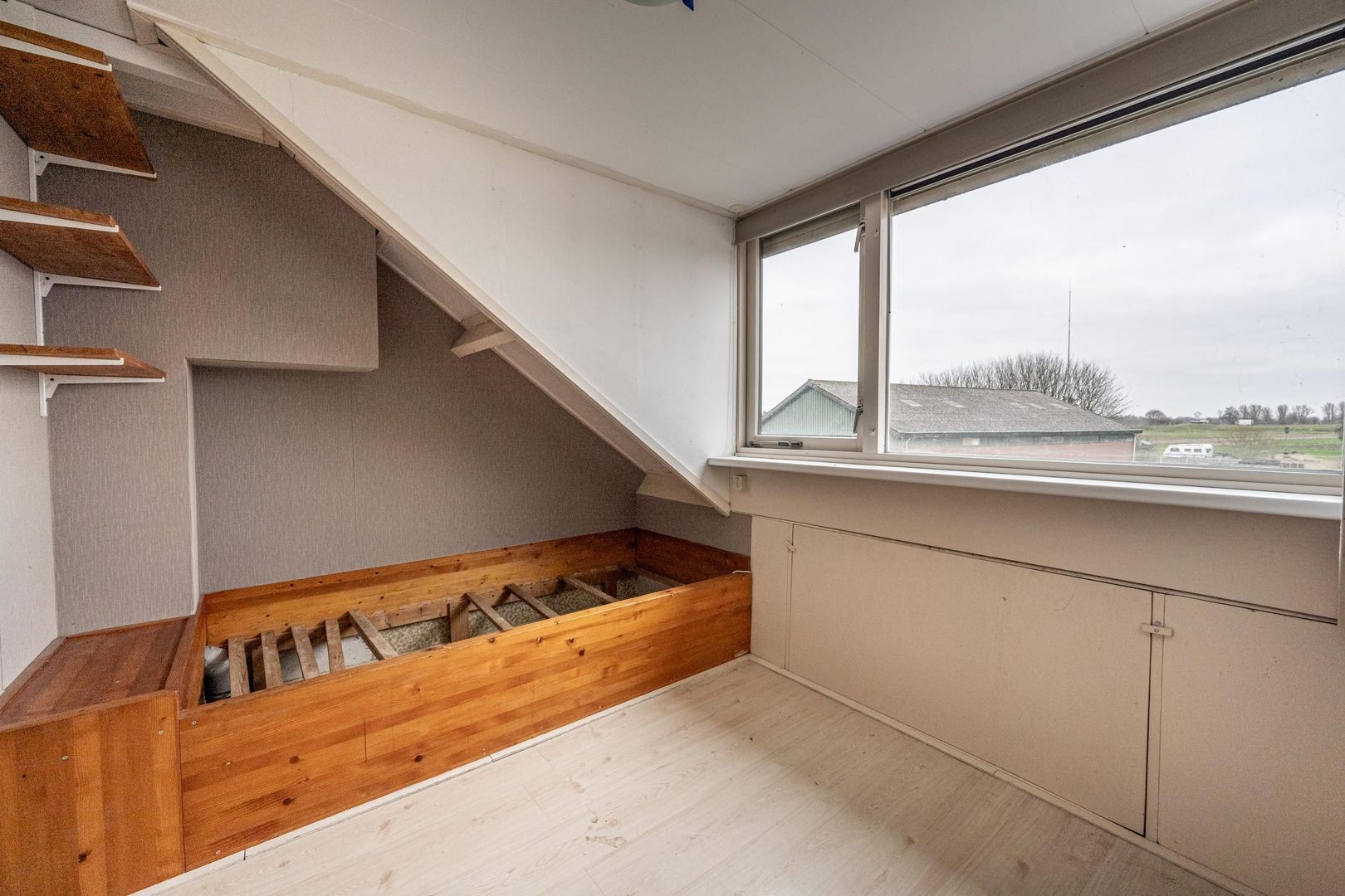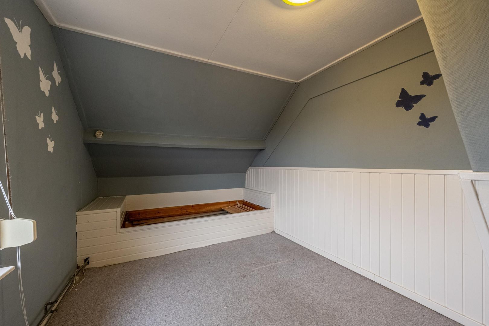 Op de verdieping: overloop, drie slaapkamers waarvan twee slaapkamers zijn voorzien van een dakkapel en een vast bed.