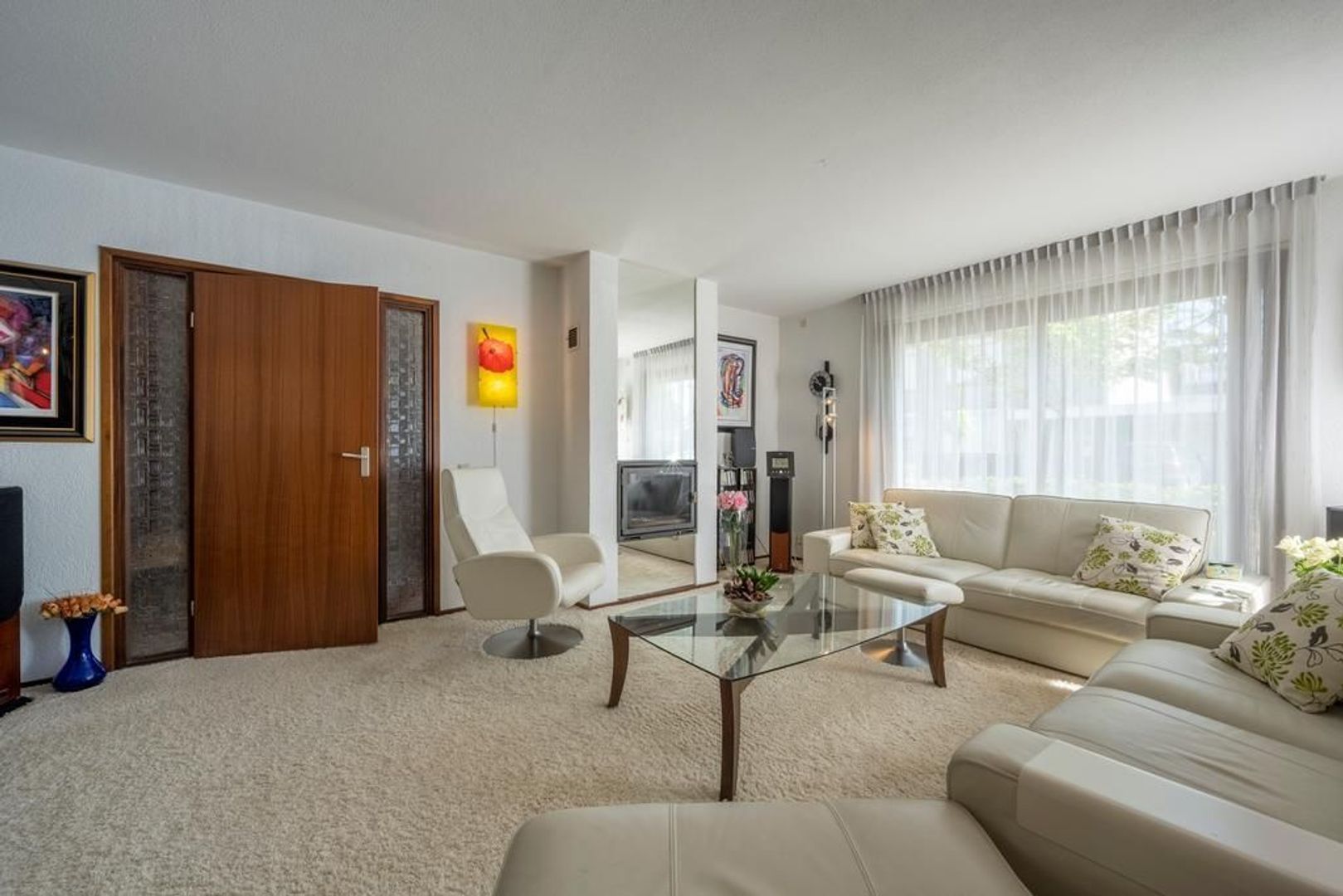 De indeling is globaal als volgt: entree in royale hal met garderobe, toiletruimte en trapopgang. Mooie lichte woonkamer met gezellige open haard.