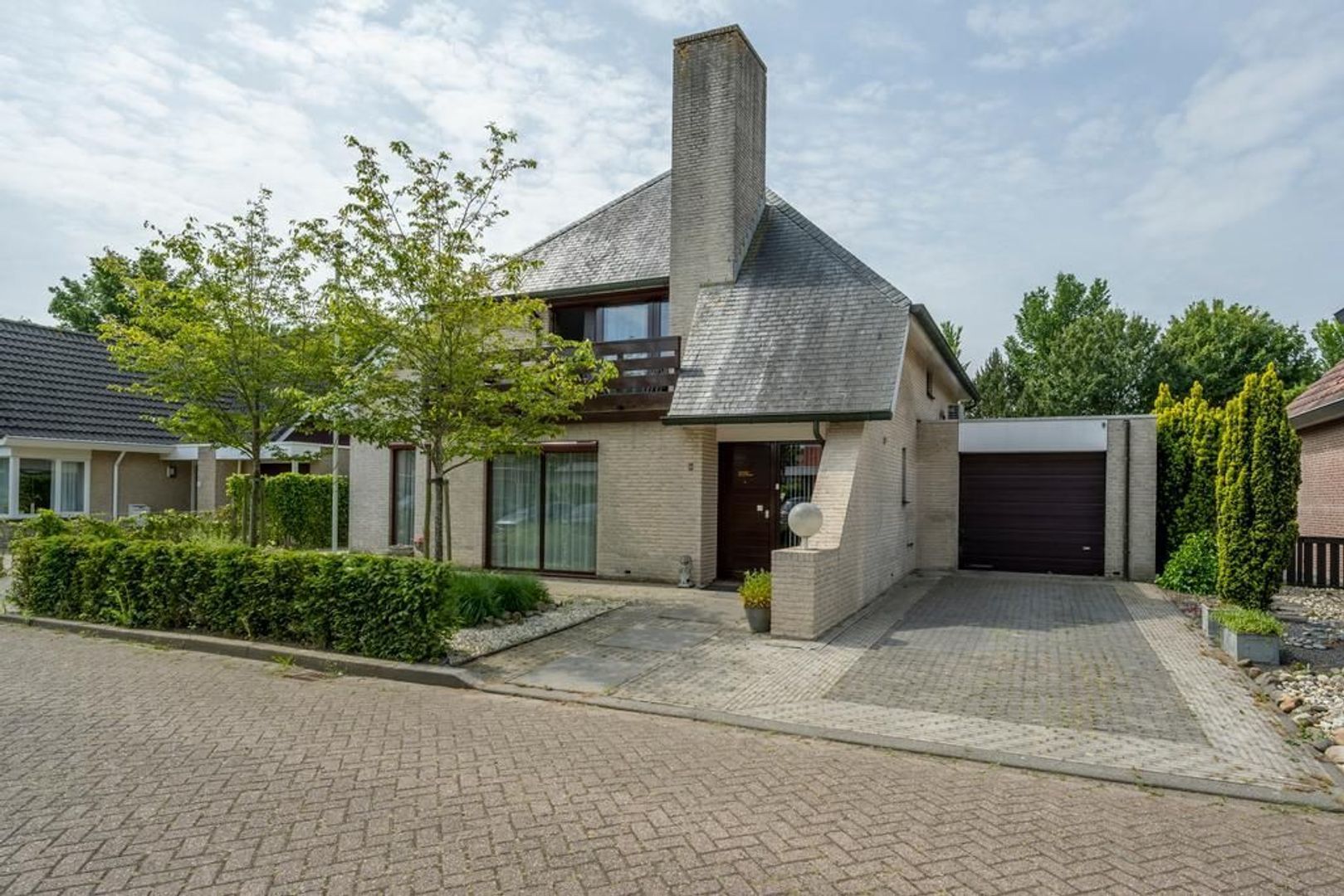 Ook de aangebouwde garage is ruim van formaat. Deze is uitgevoerd in spouw metselwerk. Op de oprit kunnen meerdere auto’s op eigen terrein geparkeerd worden.