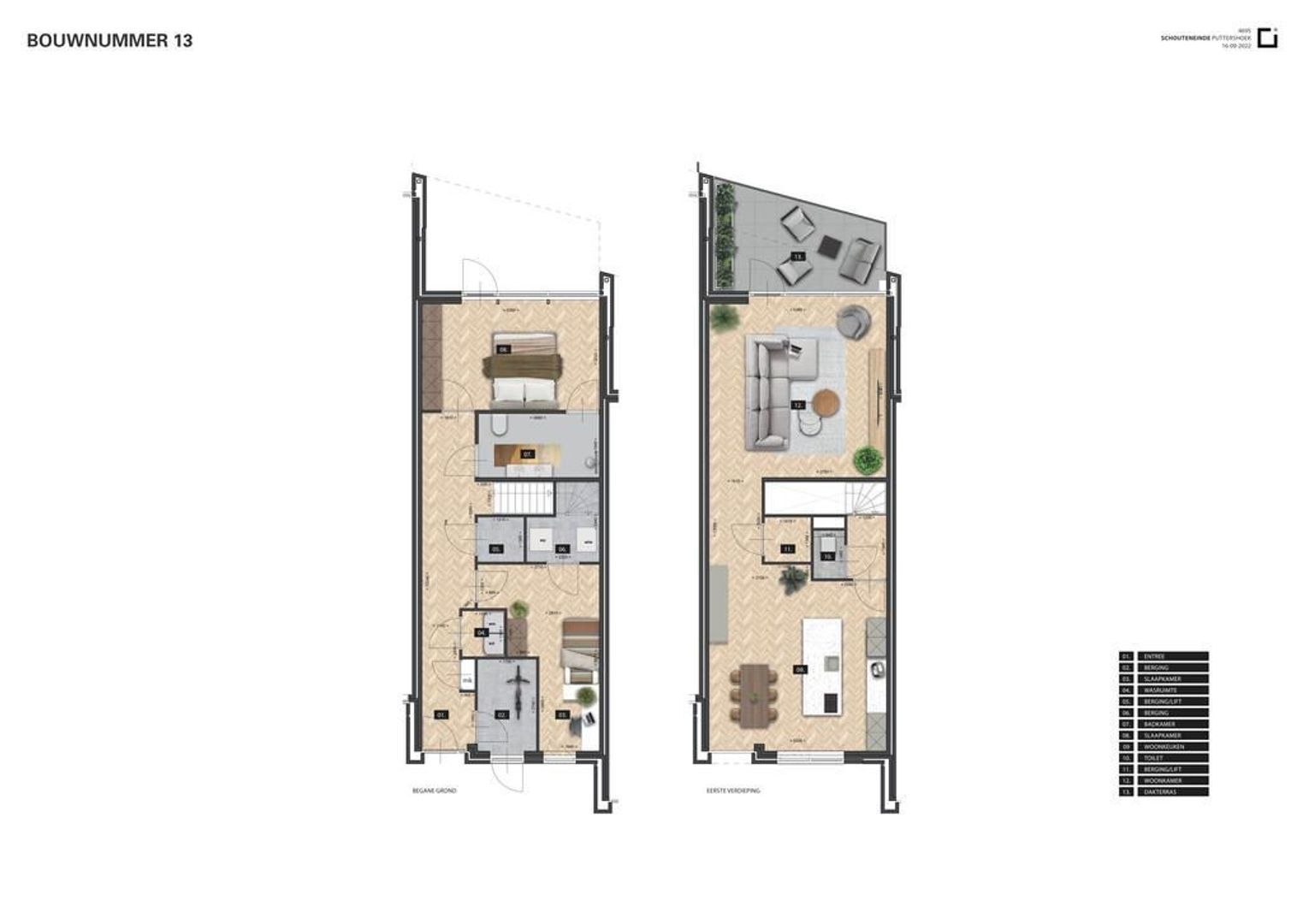 * 2 slaapkamers (bwnr. 13 en 14) of 3 slaapkamers (bwnr. 15)