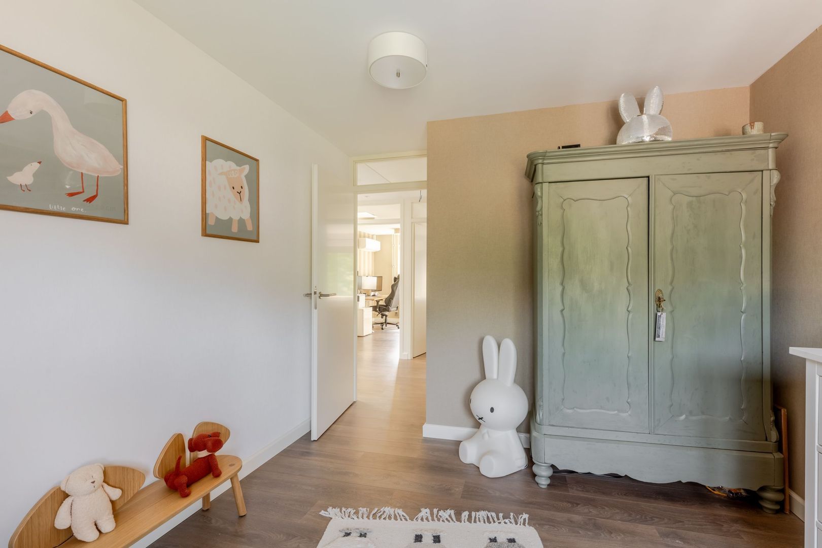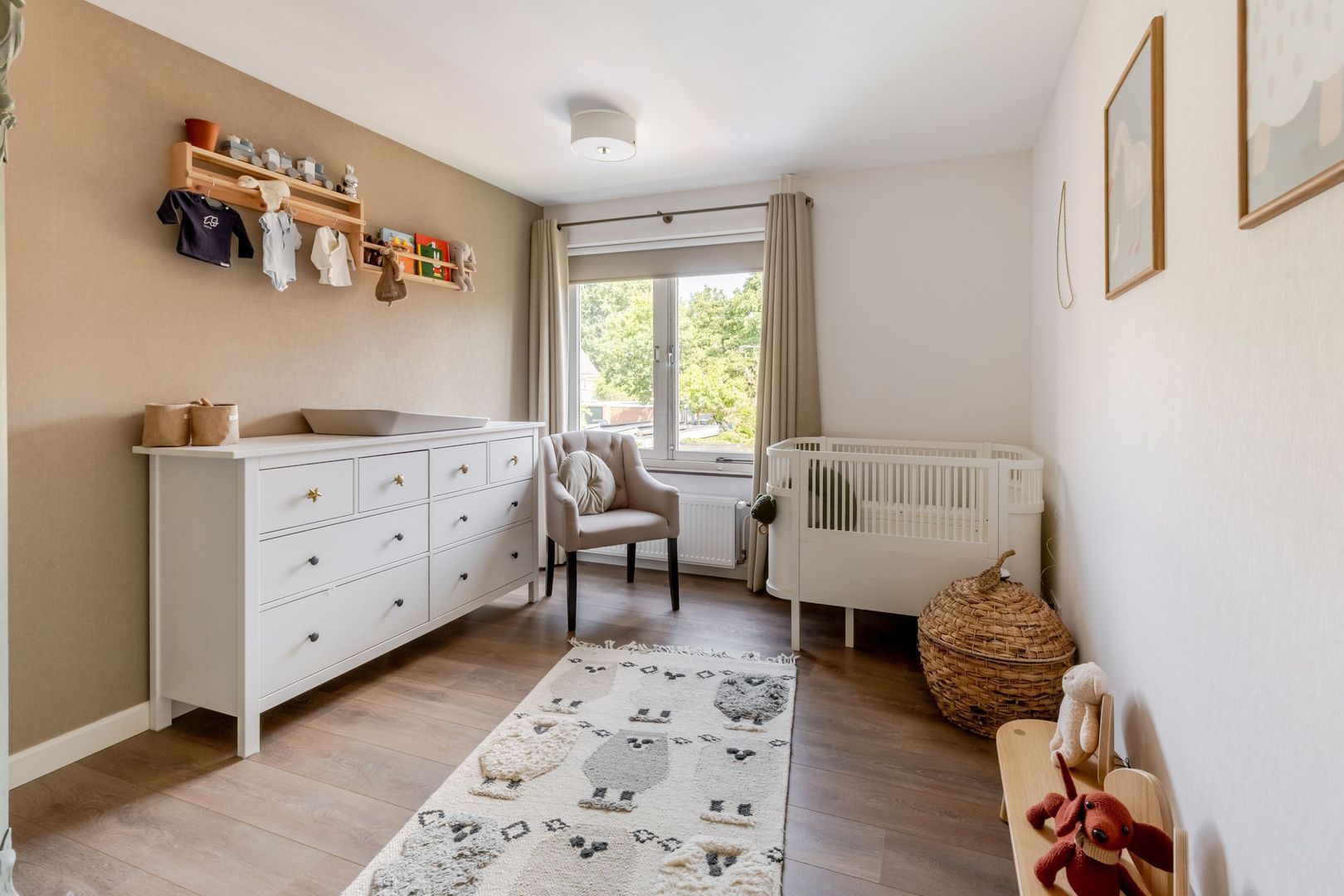 De slaapkamers zijn afgewerkt met een laminaatvloer en volledig behangen wanden.