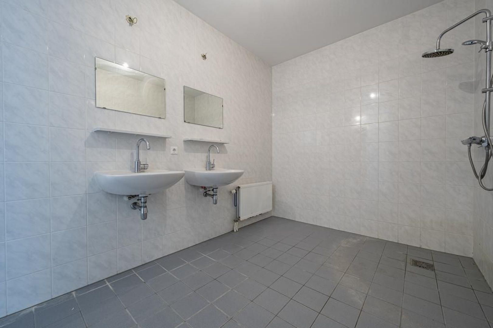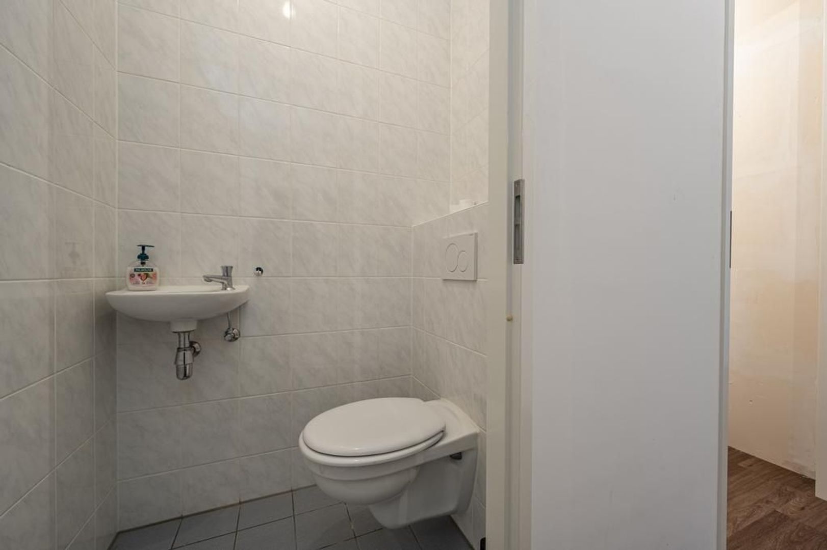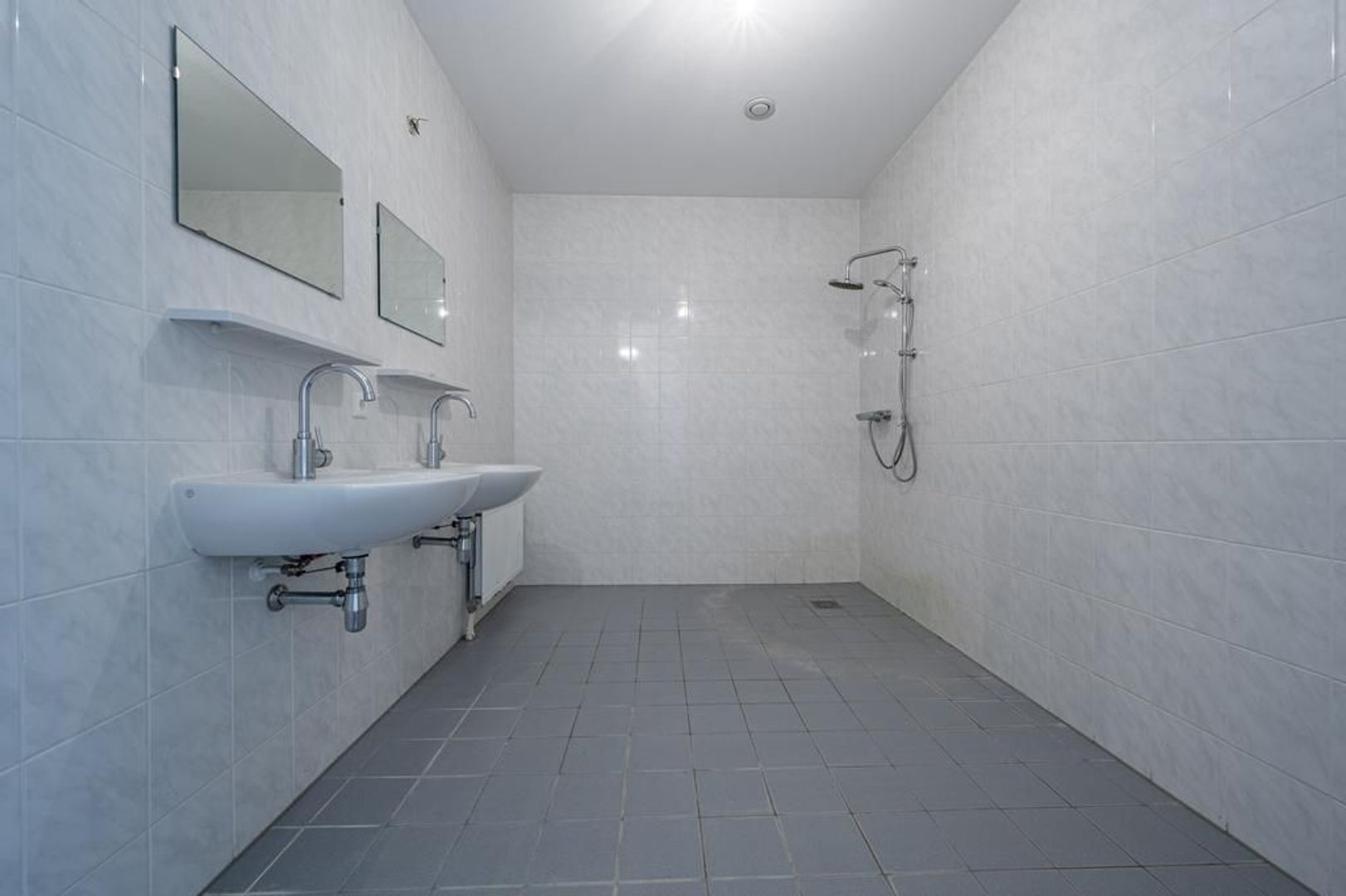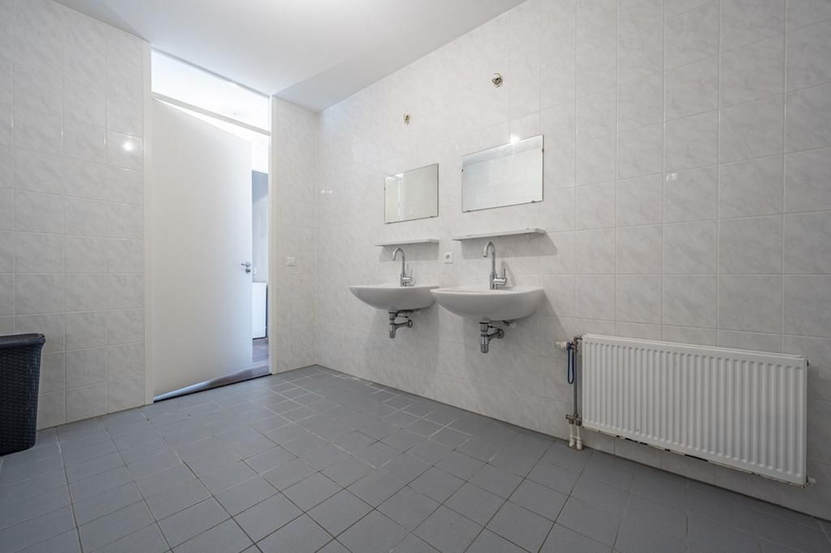 Vervolgens zijn er de badkamer, de berging annex wasruimte en een toiletruimte met een wandcloset en een fonteinbakje. De badkamer is groot en ingericht met twee wastafels en een doucheruimte.