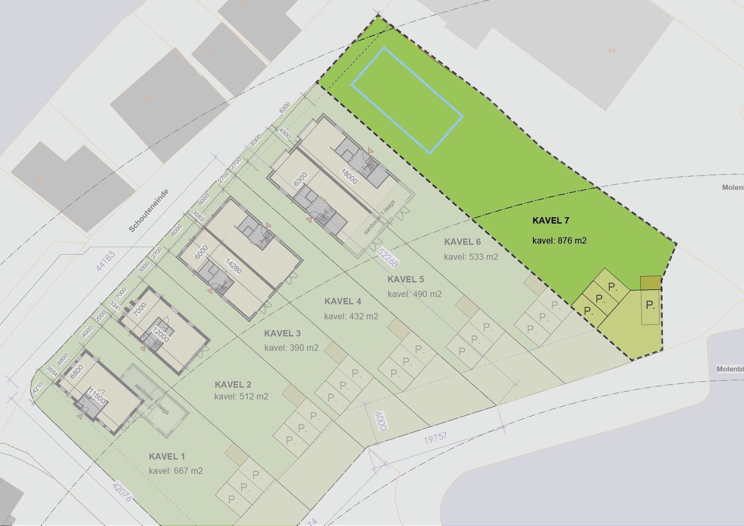 De kavel dat wordt aangeboden is geschikt voor de bouw van 1 vrijstaande woning. Achterop de kavel dienen parkeervoorzieningen op eigen terrein te worden gerealiseerd. Een gezamenlijke weg achter de overige kavels langs, zorgt voor ontsluiting op de Molendijk.