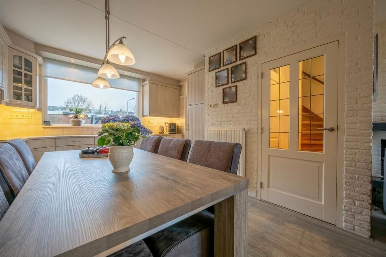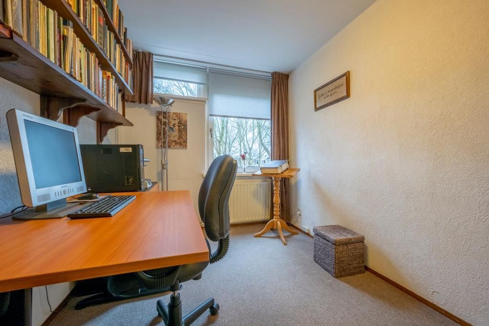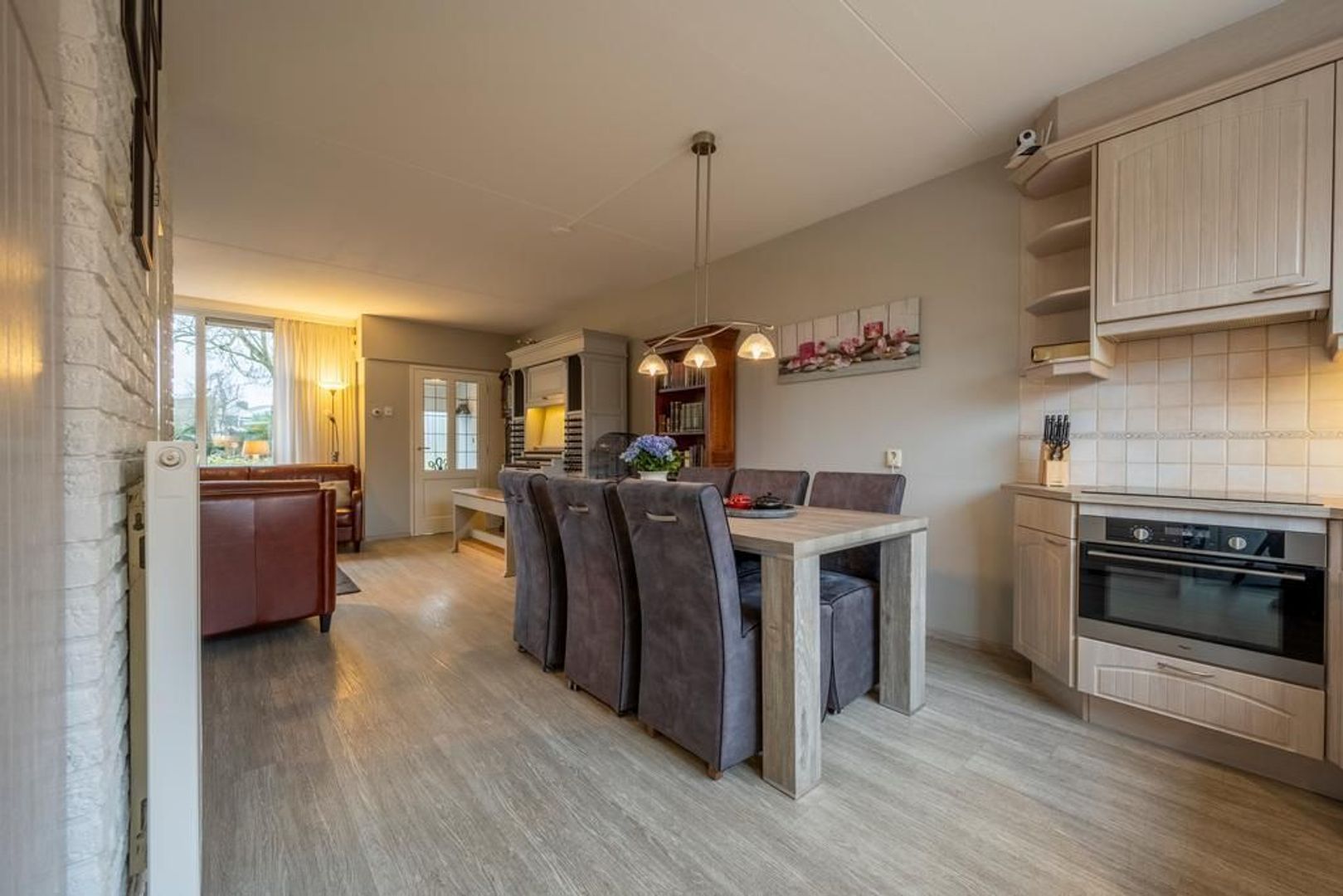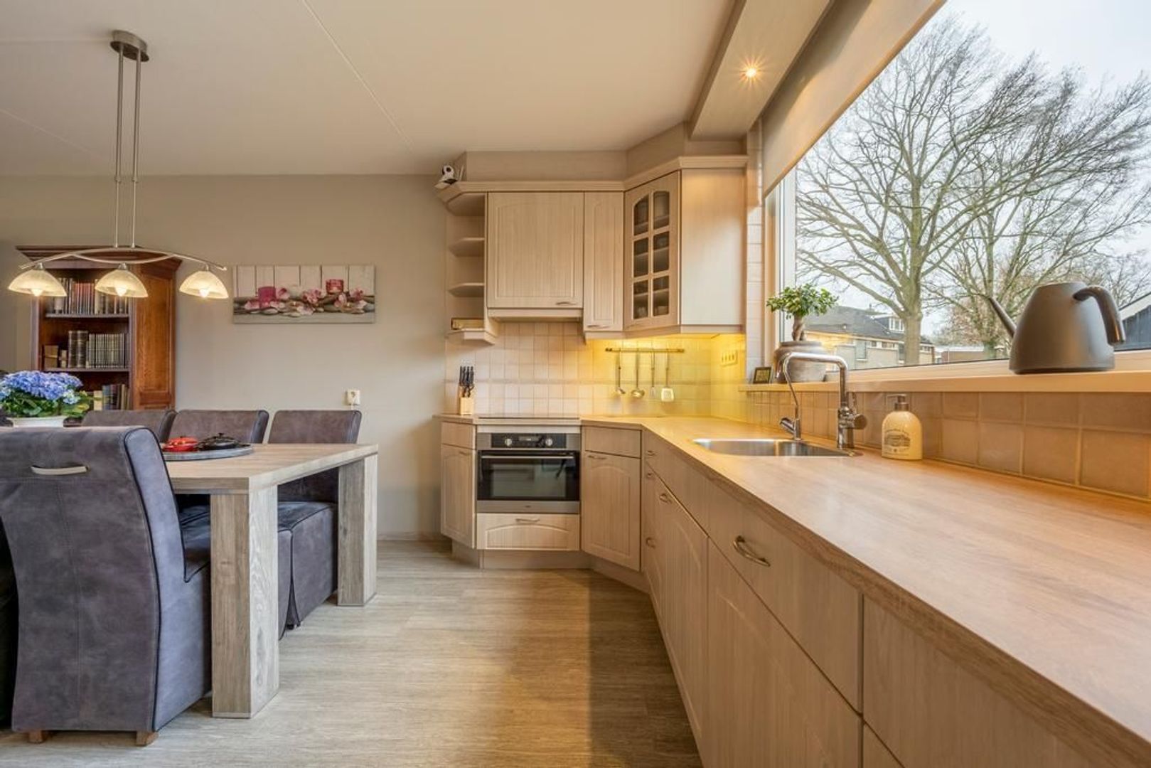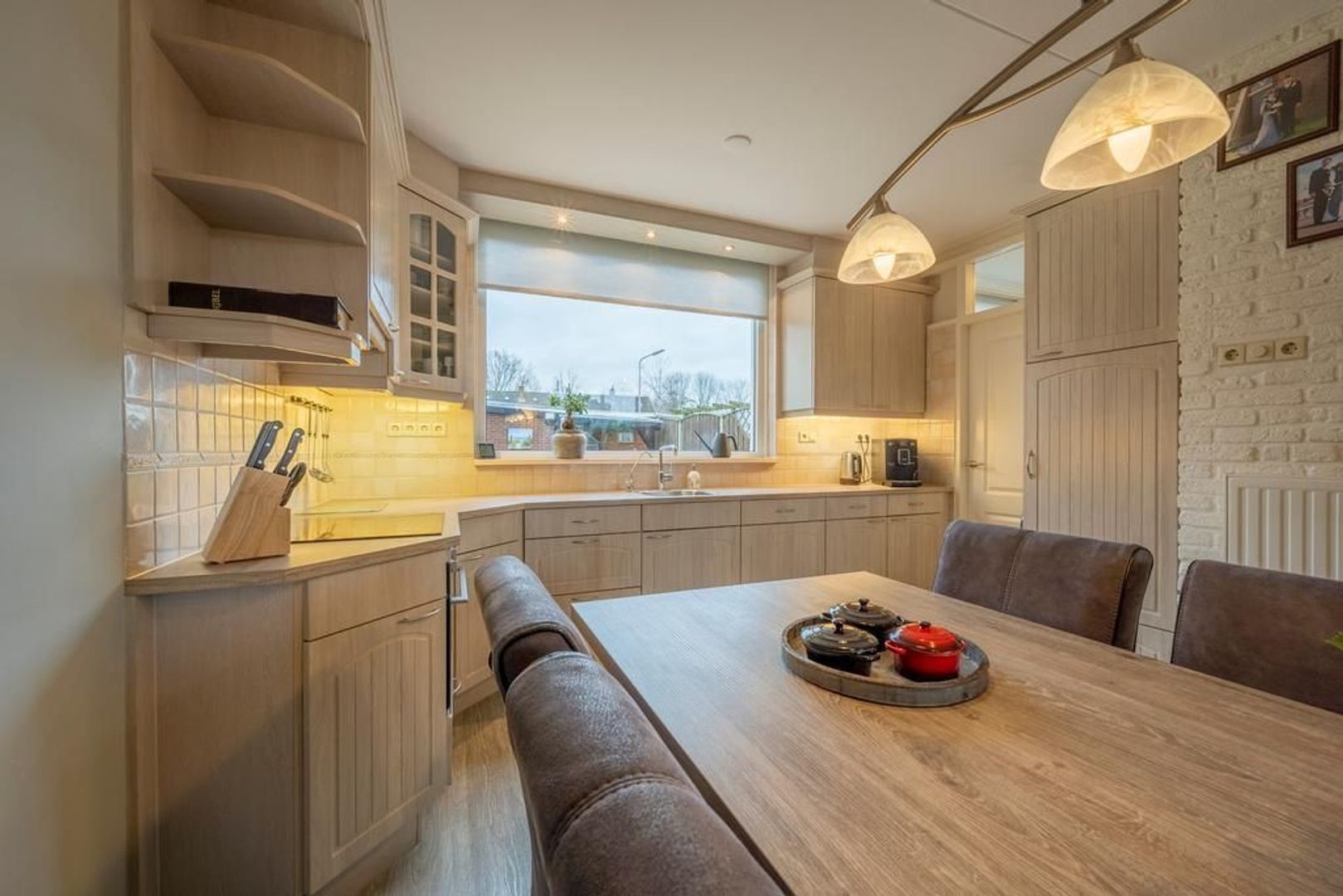 Bijzonder praktisch is de naastgelegen bijkeuken met de aansluitingen voor de wasapparatuur en de deur naar de tuin. In de bijkeukenkast is een waterontharder aanwezig.