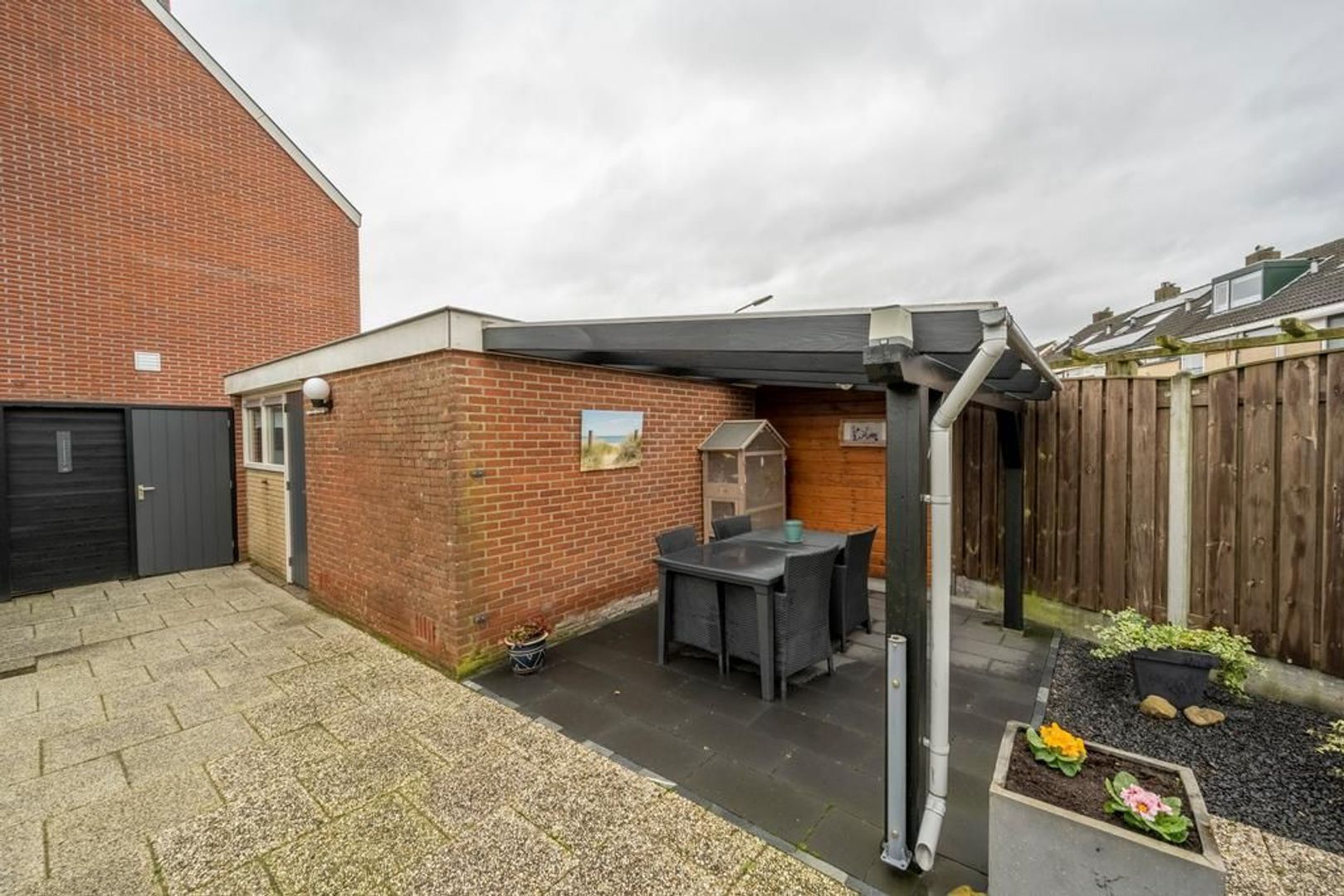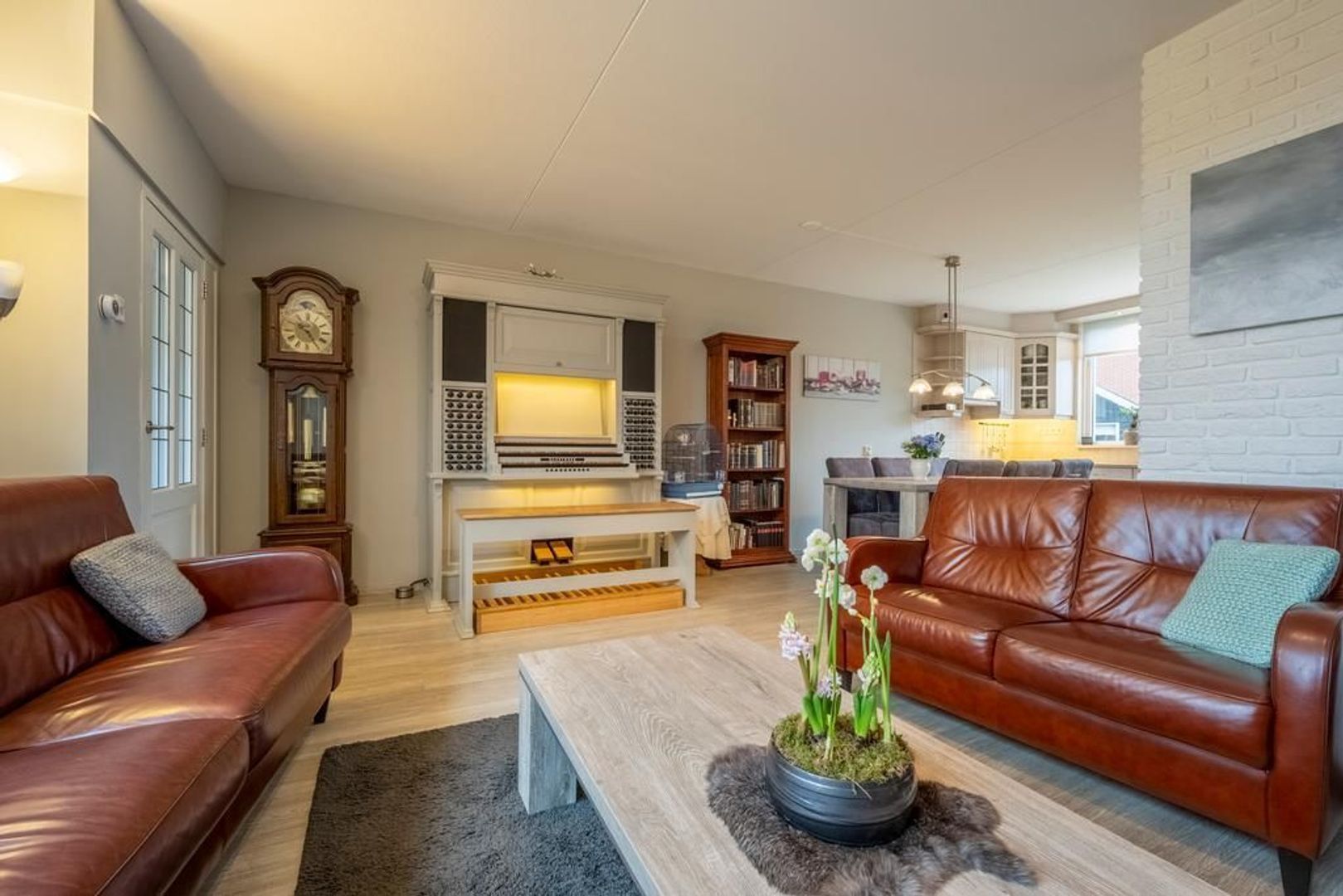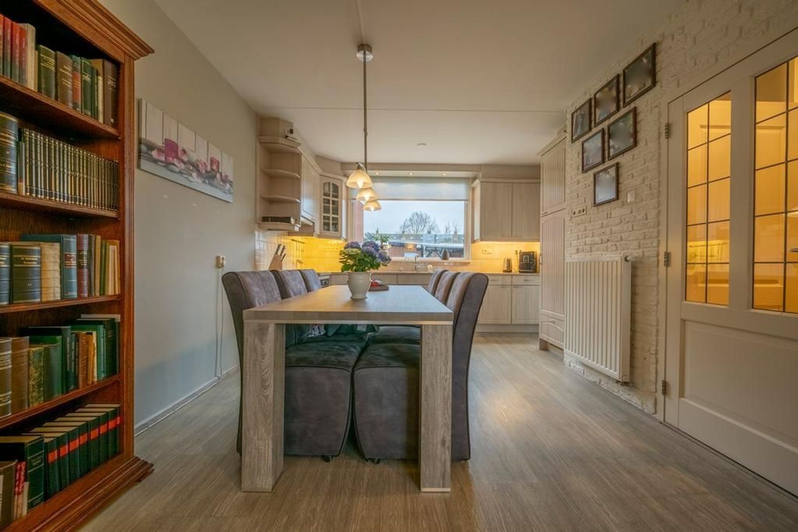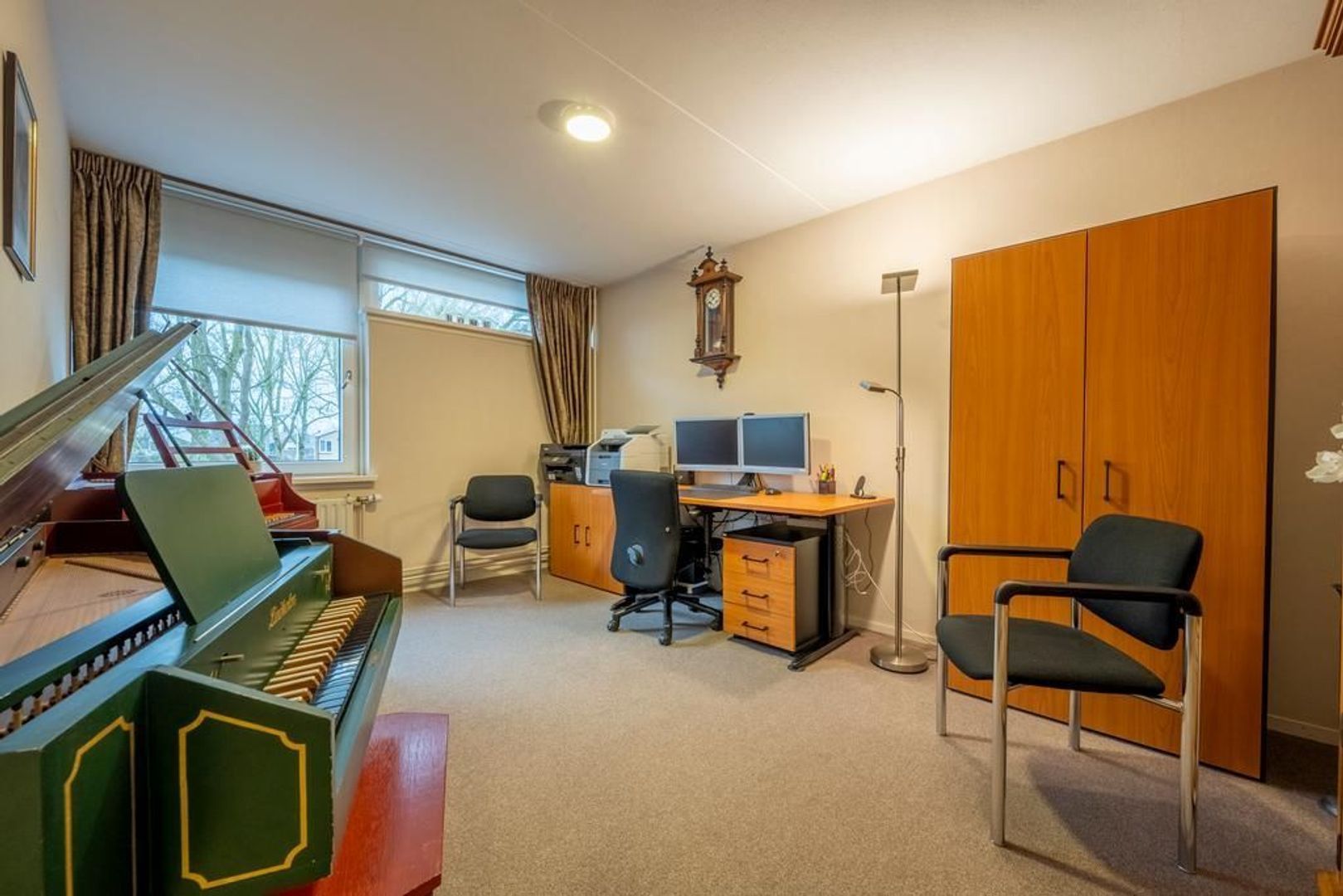 Bijzonder praktisch is de naastgelegen bijkeuken met de aansluitingen voor de wasapparatuur en de deur naar de tuin. In de bijkeukenkast is een waterontharder aanwezig.