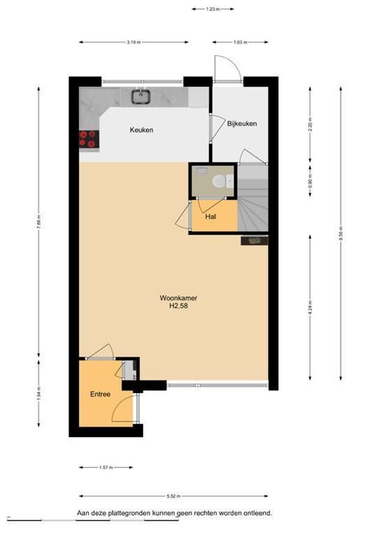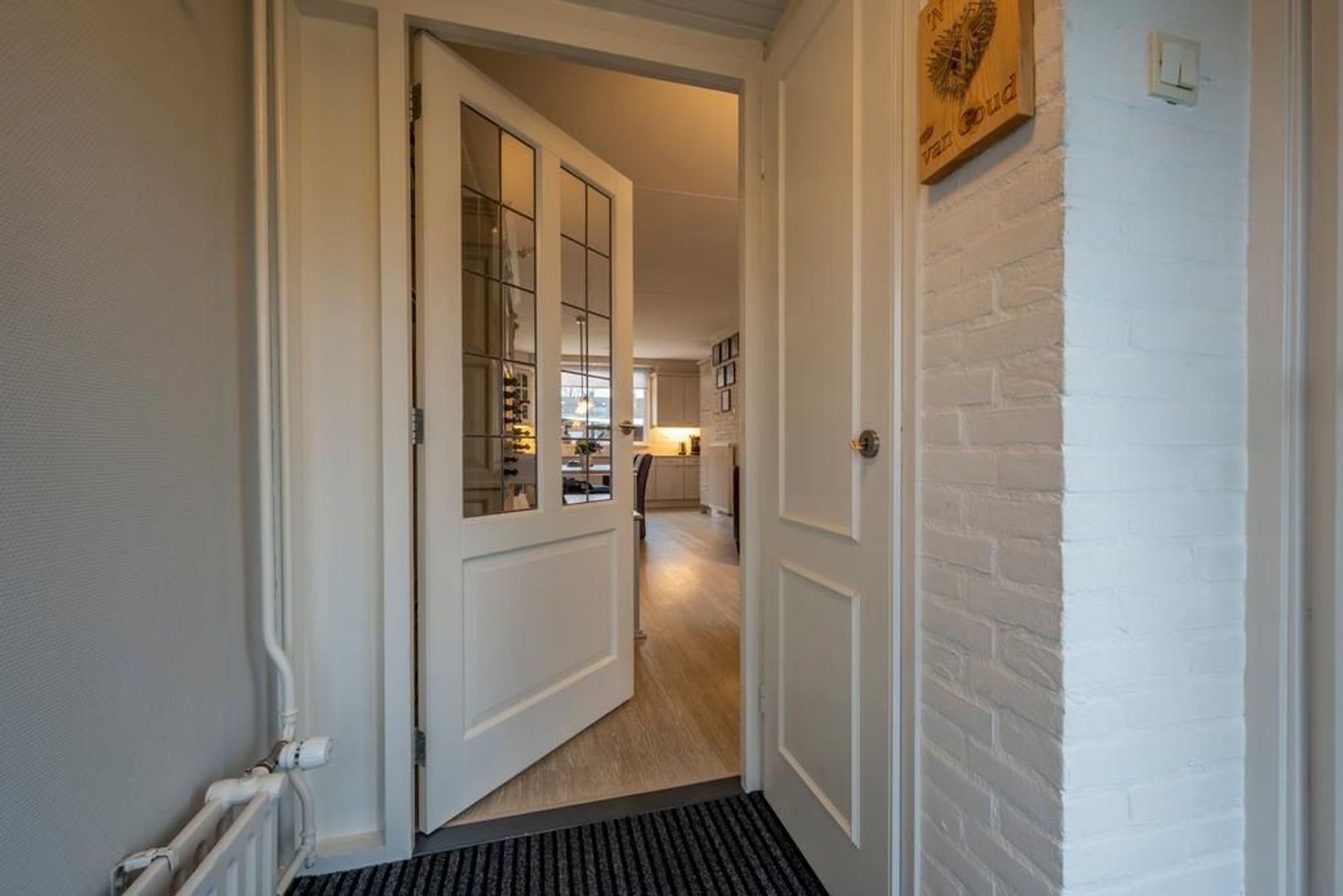 De indeling is als volgt: entreehal met meterkast, ruime woonkamer met gashaard en open keuken aan de tuinzijde. Deze heeft een uitgebreide L vormige inrichting en is uitgevoerd met een afzuigkap, koelkast, vaatwasser, close-in-boiler, combi-magnetron en inductiekookplaat.