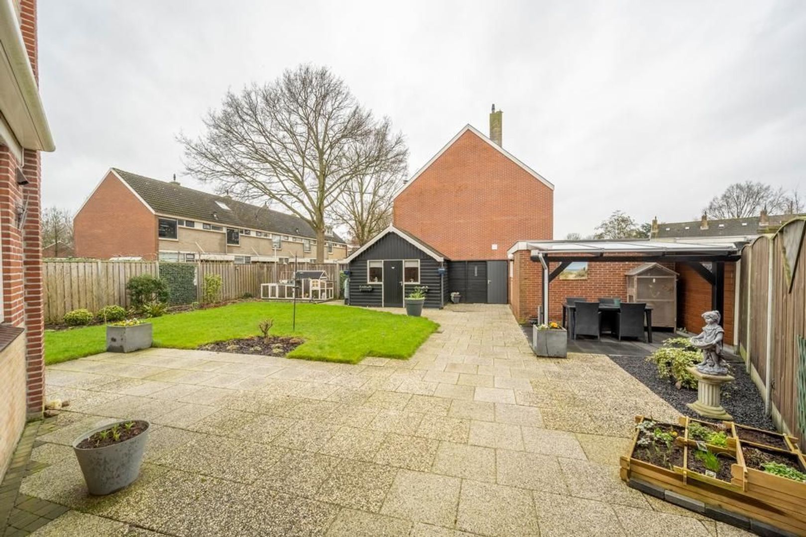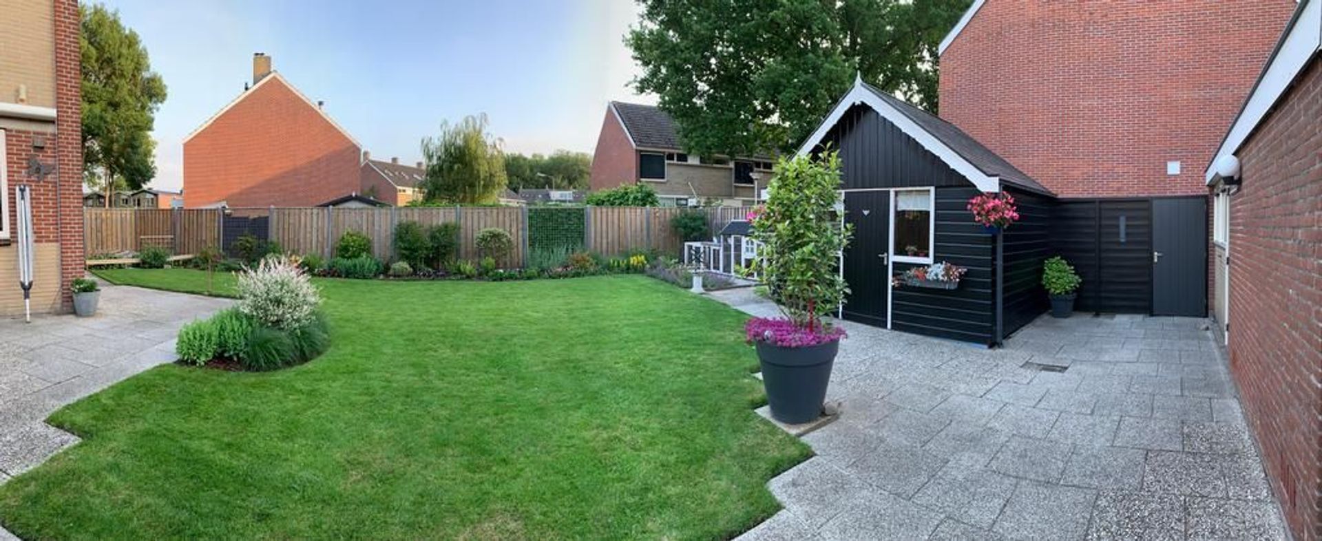 Ruime hoekwoning met garage, berging, overkapping en flinke tuin, gelegen in een rustige woonwijk aan een plantsoen.
