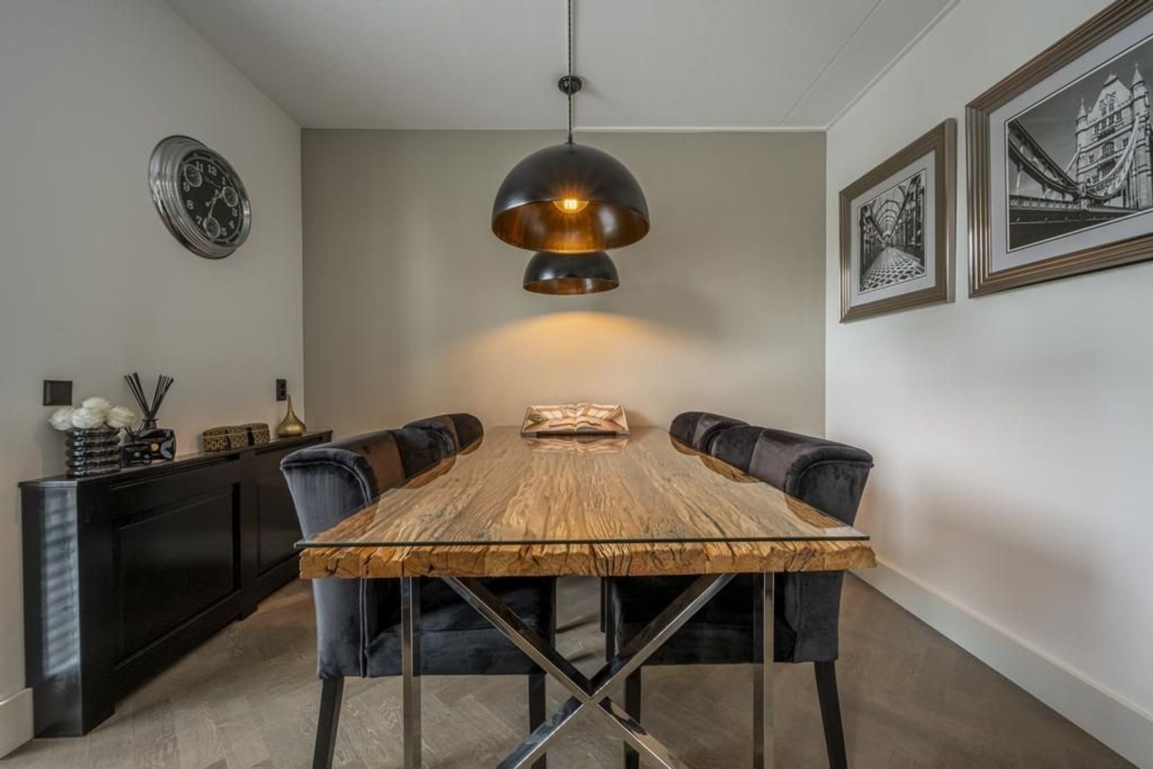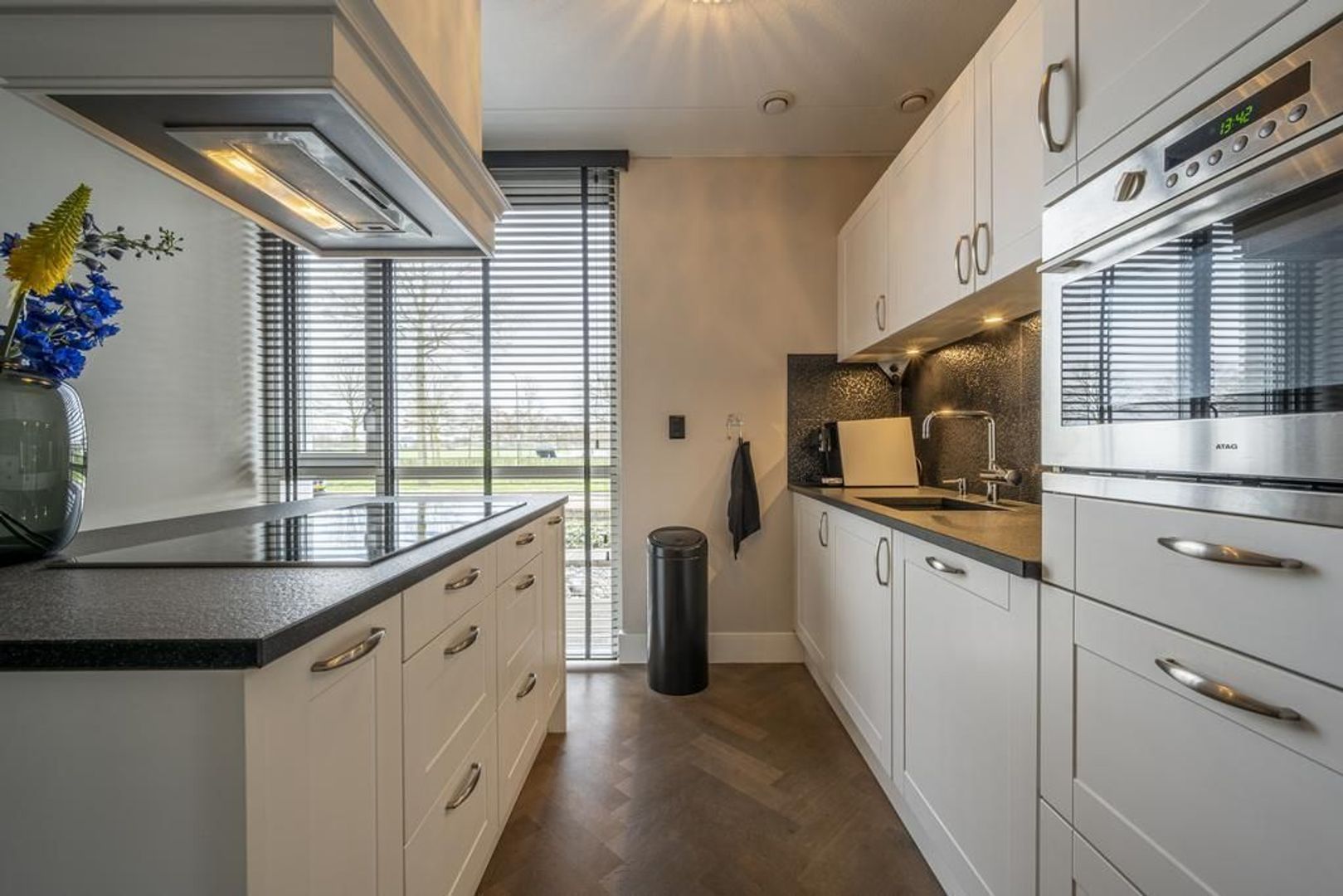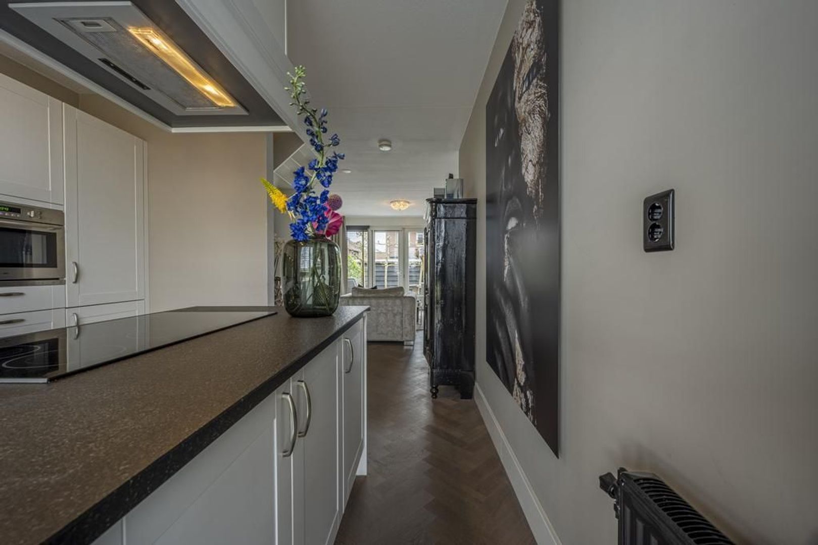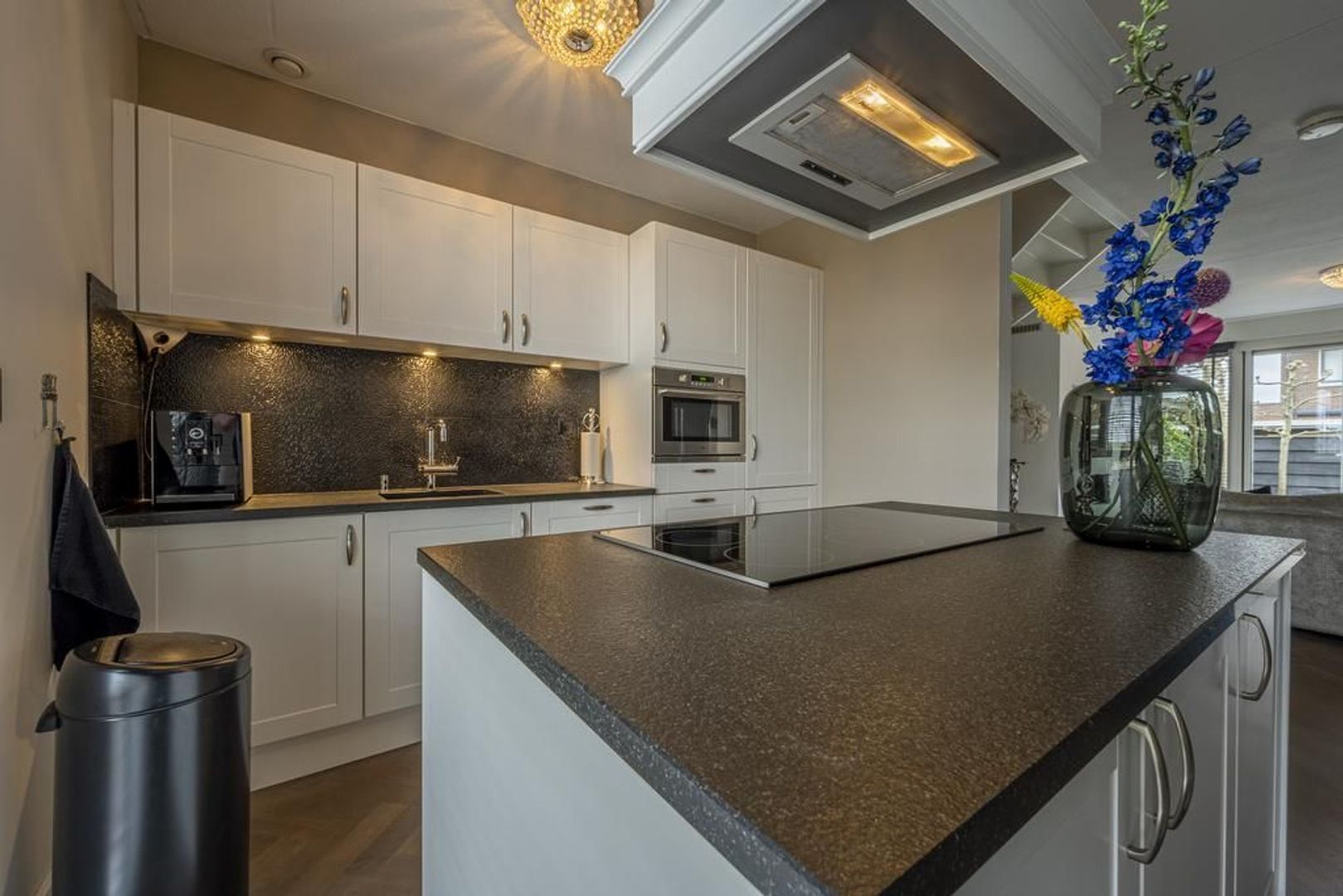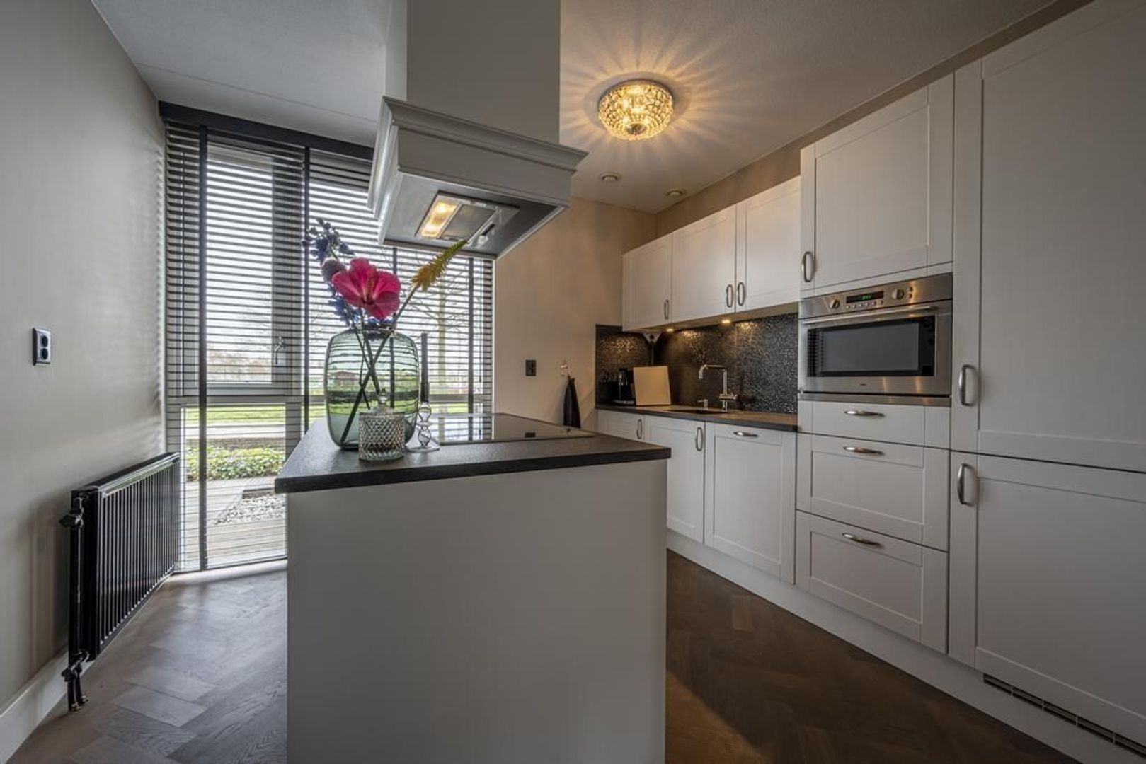 De open keuken is aan de straatzijde gesitueerd. Deze is voorzien van een wandopstelling en een eiland. Compleet met inbouwapparatuur, zoals een combi-magnetron, koel-vriescombinatie, vaatwasser, 5-pits inductie kookplaat en een afzuigkap.