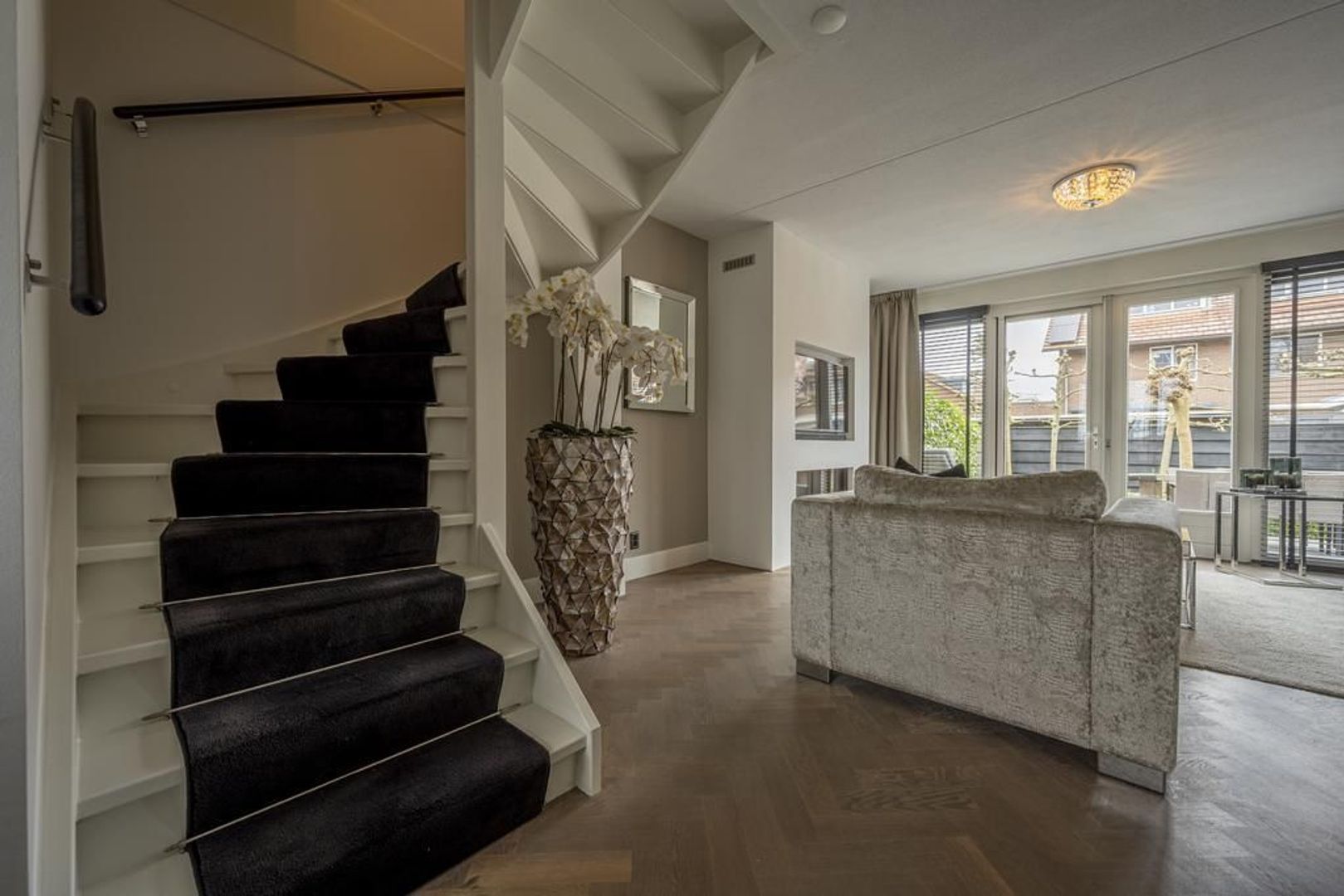 De open trap in de woonkamer leidt naar de eerste verdieping.