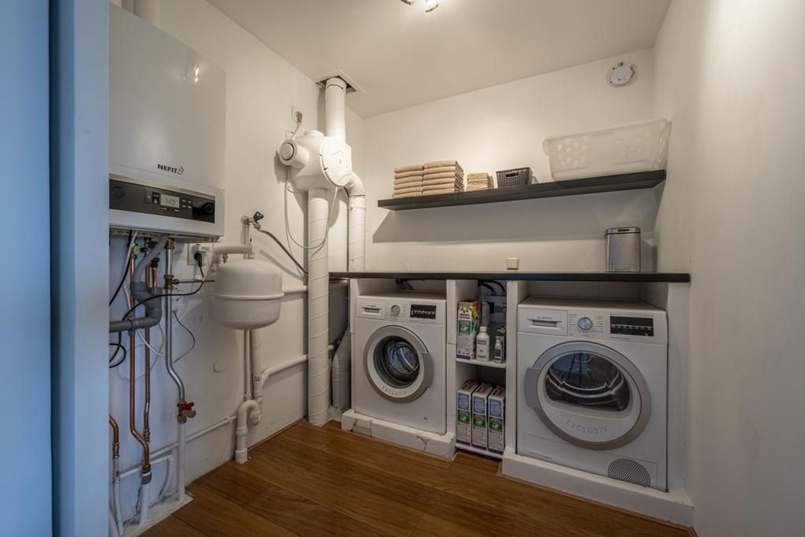 Er is een technische ruimte met onder andere de cv-ketel, de aansluitingen voor de wasapparatuur en de omvormer voor de zonnepanelen.