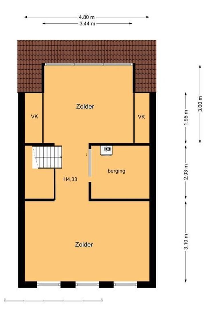 Vanaf de voorkant is al duidelijk hoe hoog het huis is en hoeveel extra ruimte dit geeft.