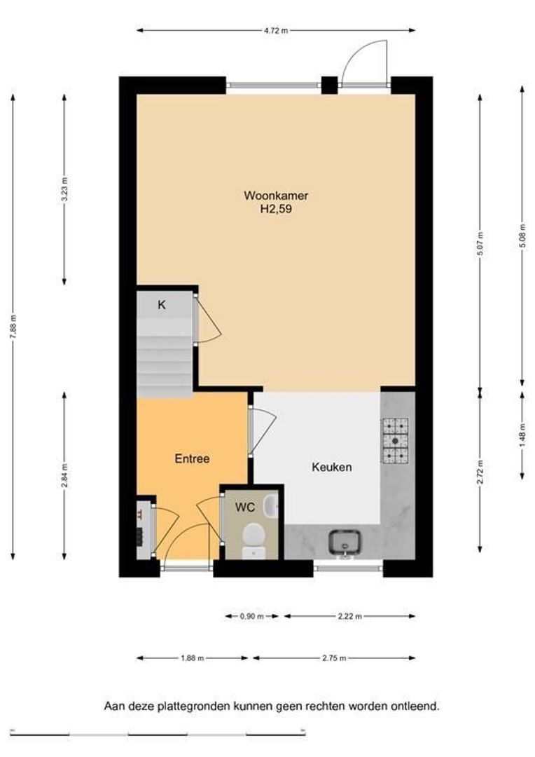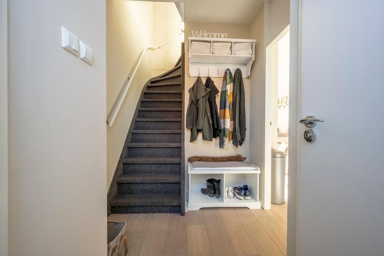 De indeling is globaal als volgt te omschrijven: entree/hal, meterkast, trapopgang en modern toilet met wandcloset en fonteintje.