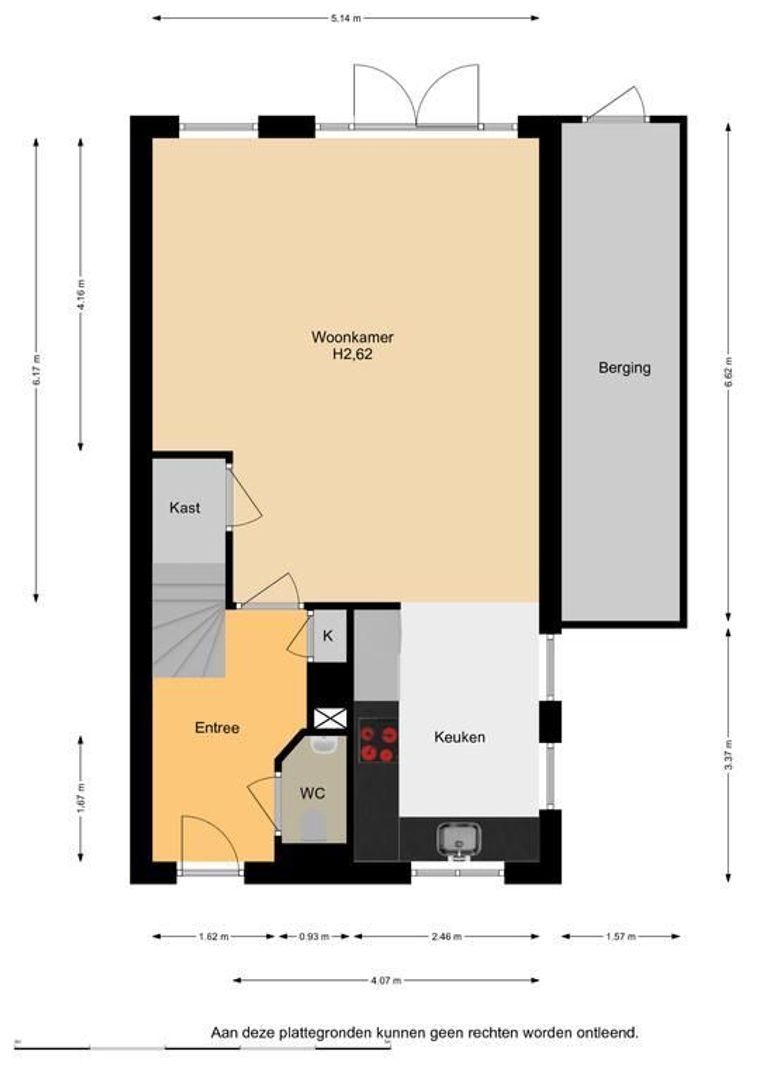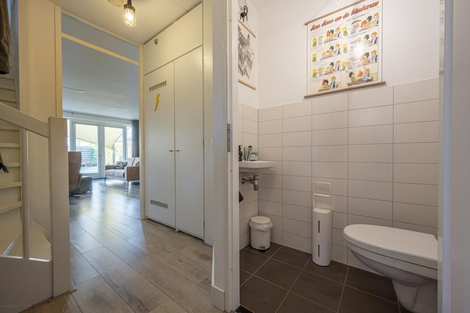De indeling is als volgt: entree/hal, toiletruimte met wandcloset en fonteintje, vaste kast, meterkast en trapopgang.