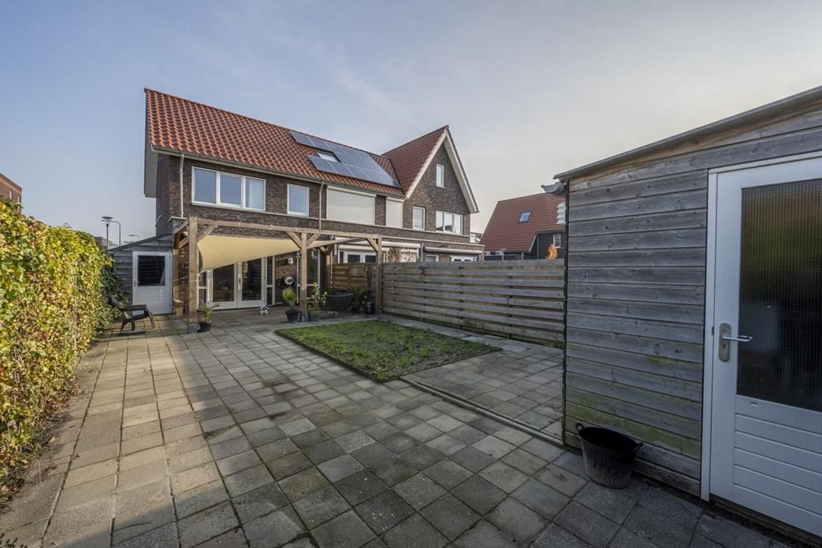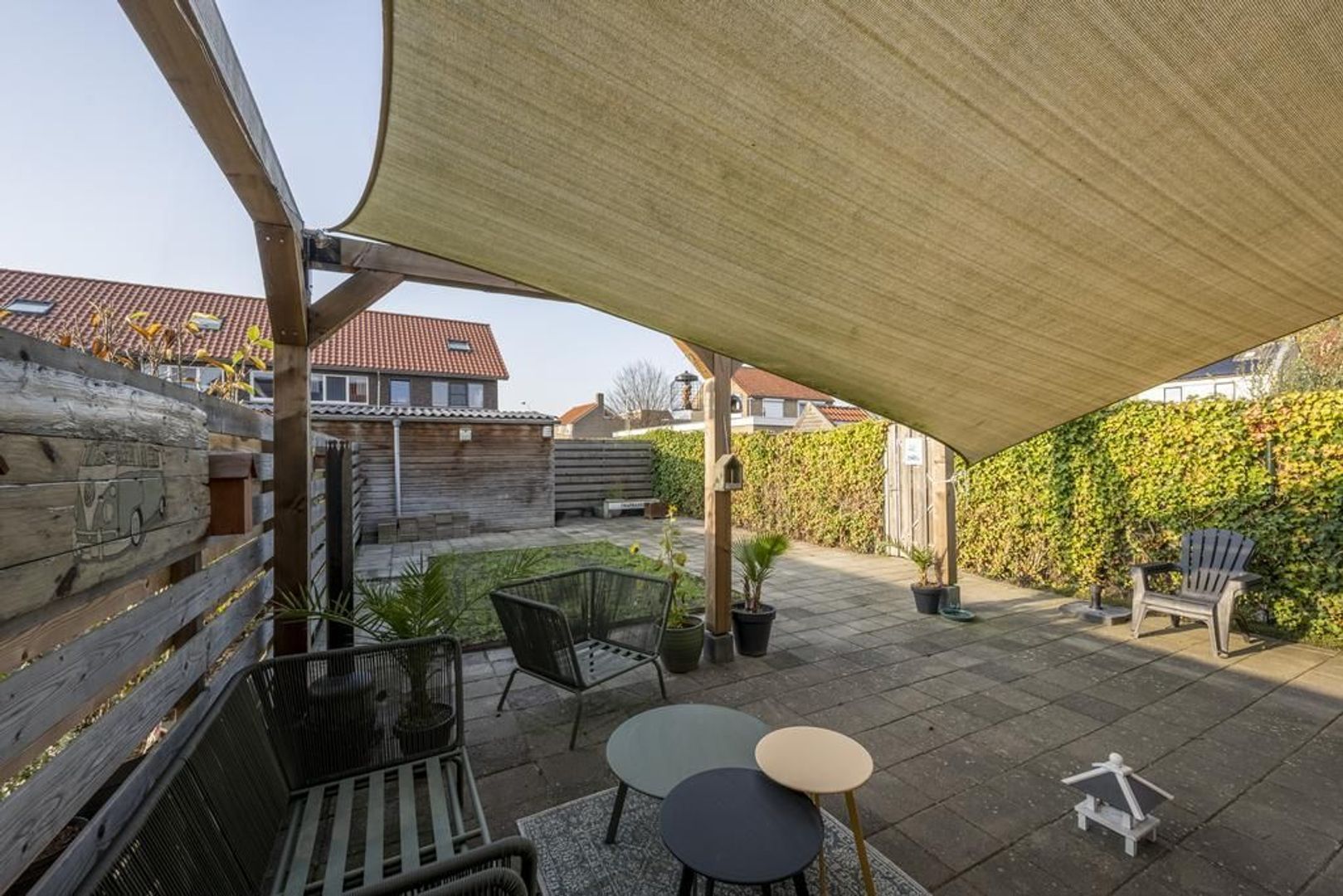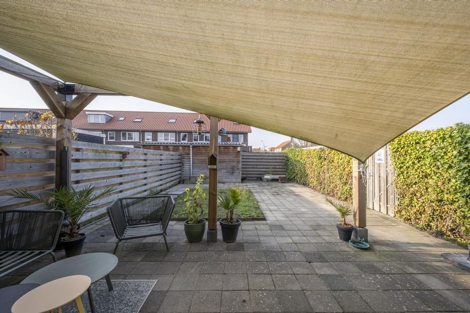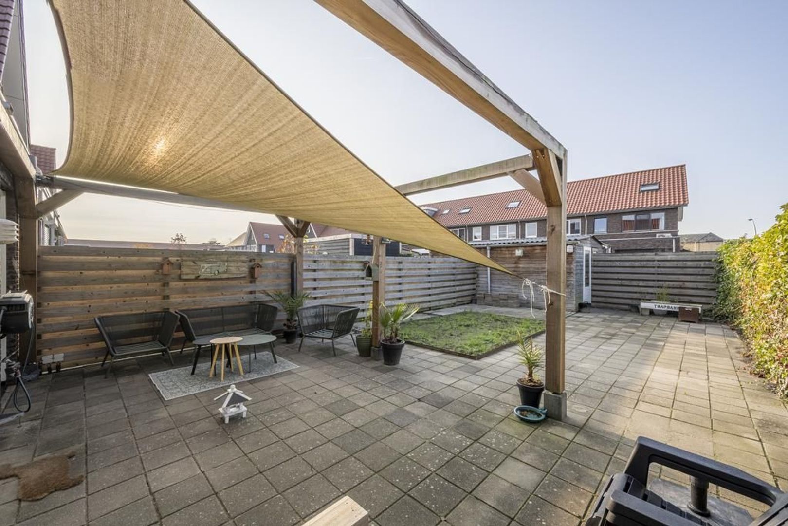 De achtertuin is lekker diep en ligt op het zonnige zuidwesten. Aan de zijkant is een aangebouwde houten berging geplaatst en achterin de tuin staat eveneens een berging; opslagruimte genoeg dus!
