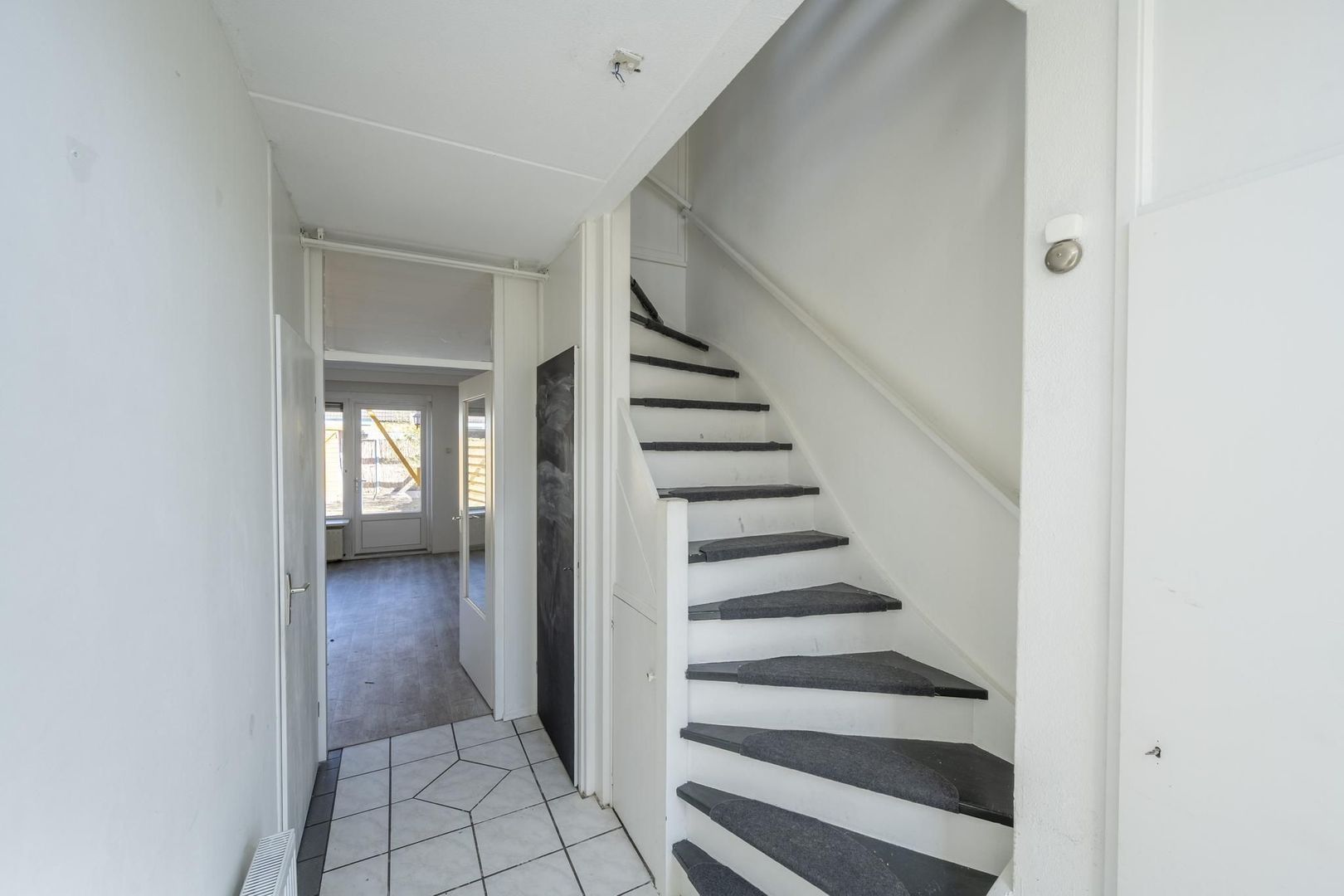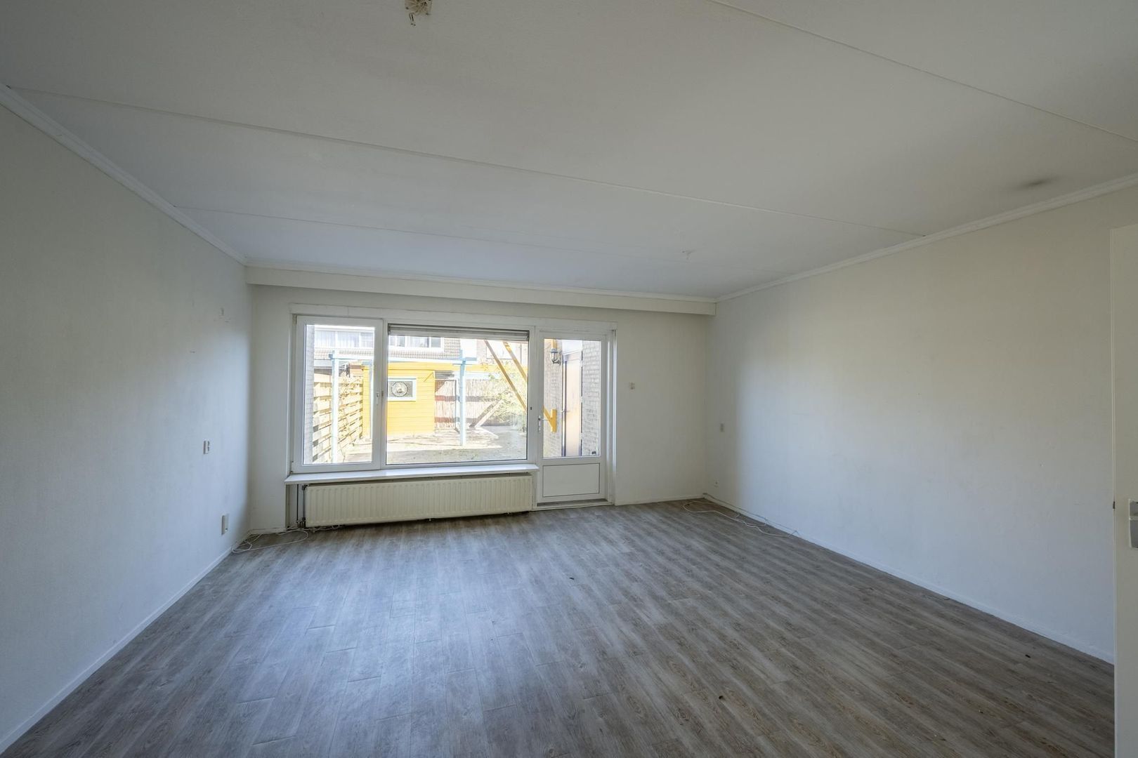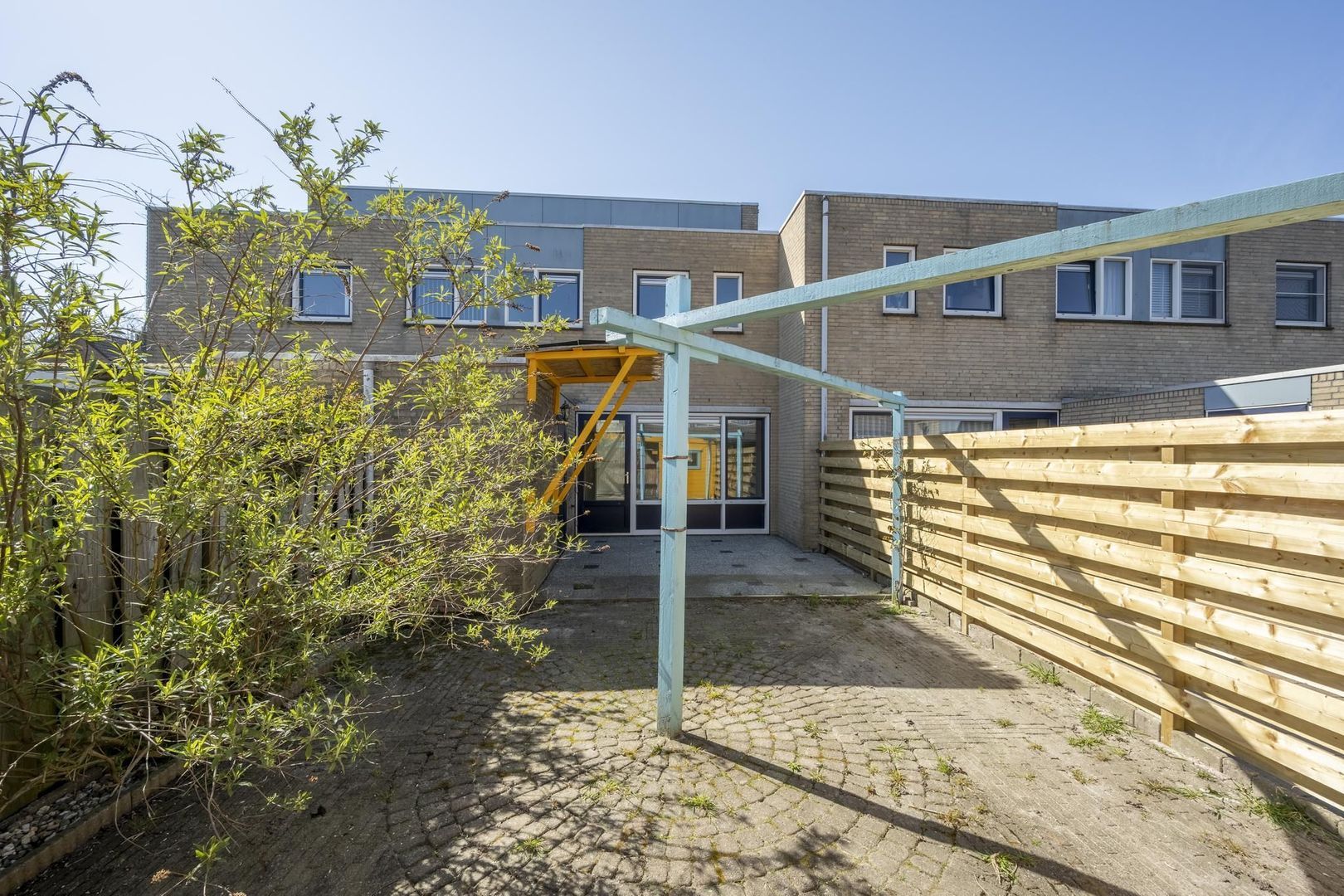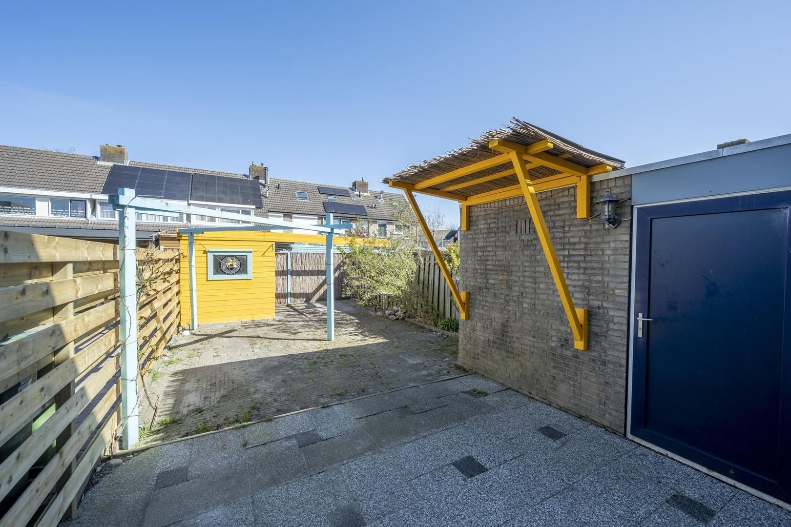 De diepe achtertuin ligt op het noorden. Hierin staat ook nog een houten berging.