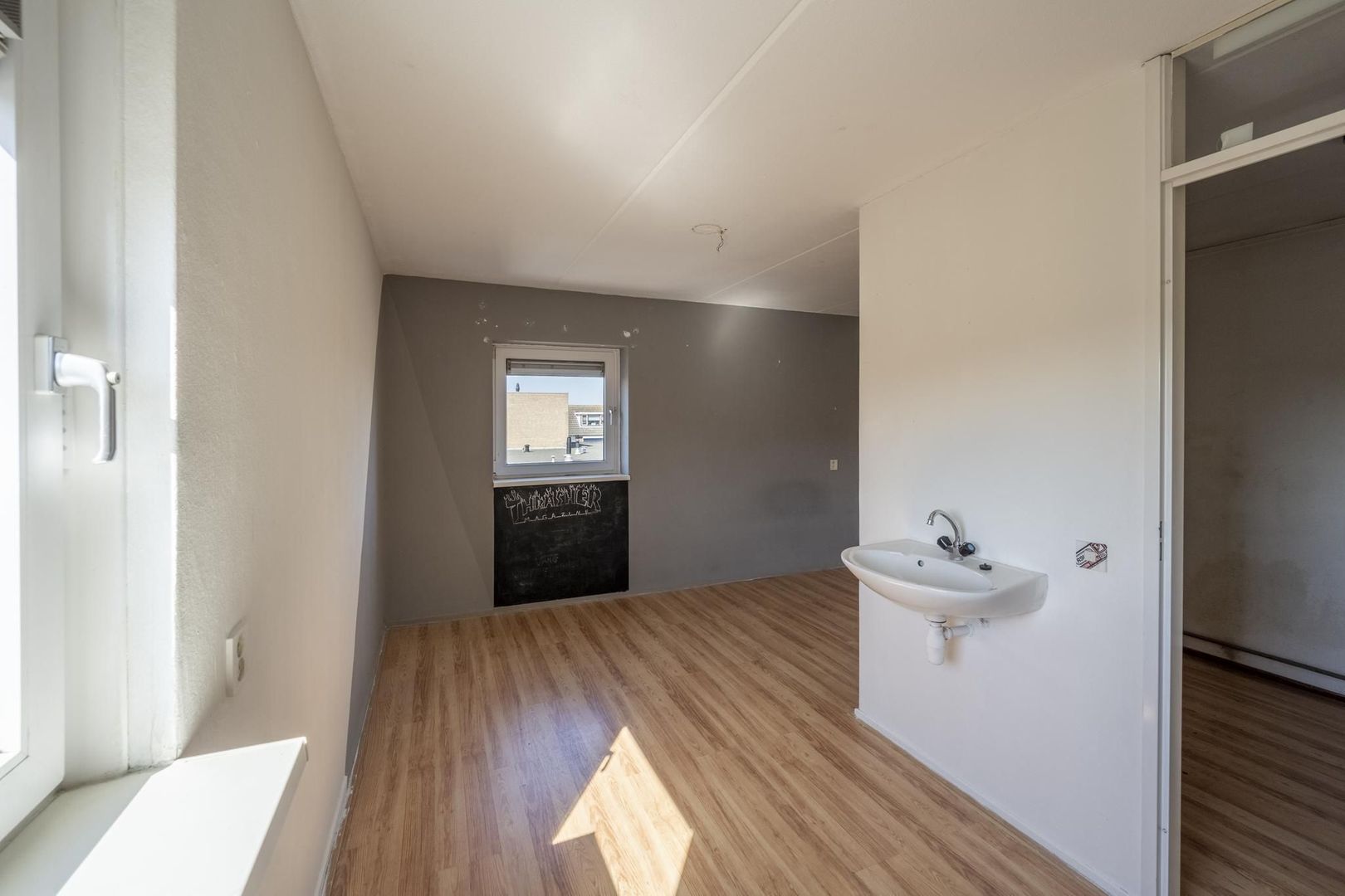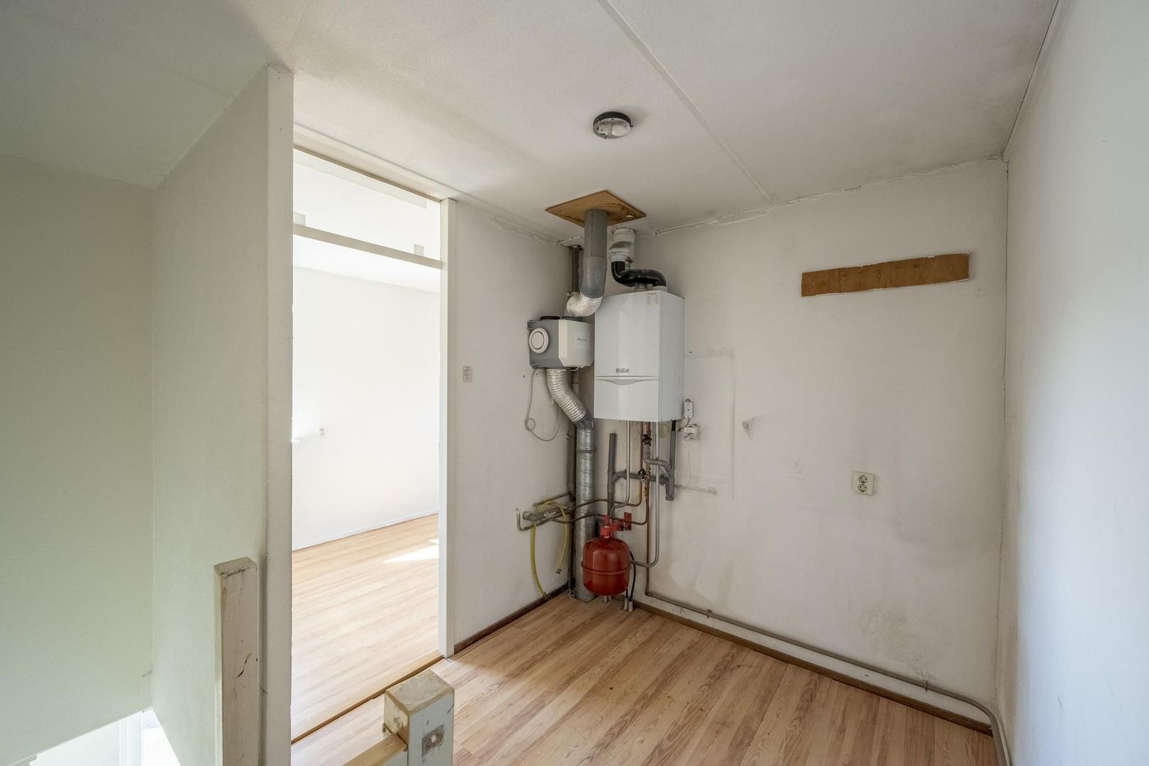De tweede verdieping is met een vaste trap bereikbaar. Hier bevinden zich de voorzolder met de opstelplaats ten behoeve van de cv-ketel, de mechanische ventilatie en de aansluiting voor de wasmachine. Dan is hier ook nog een ruime, vierde slaapkamer met een wastafel.
