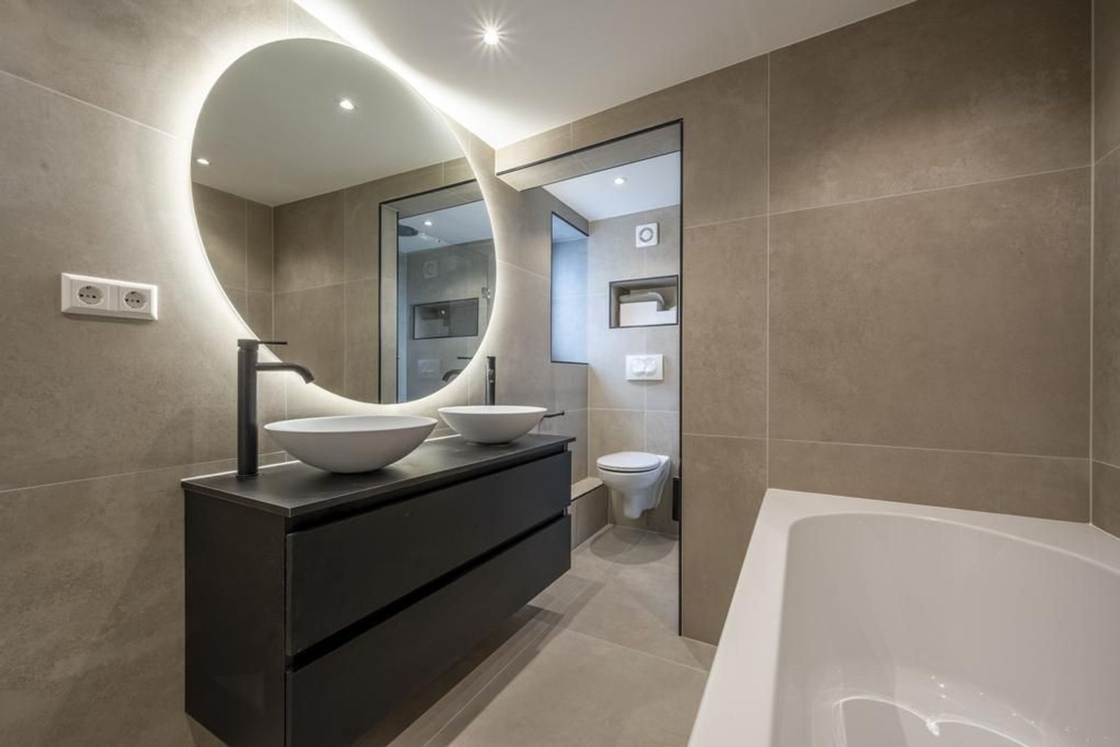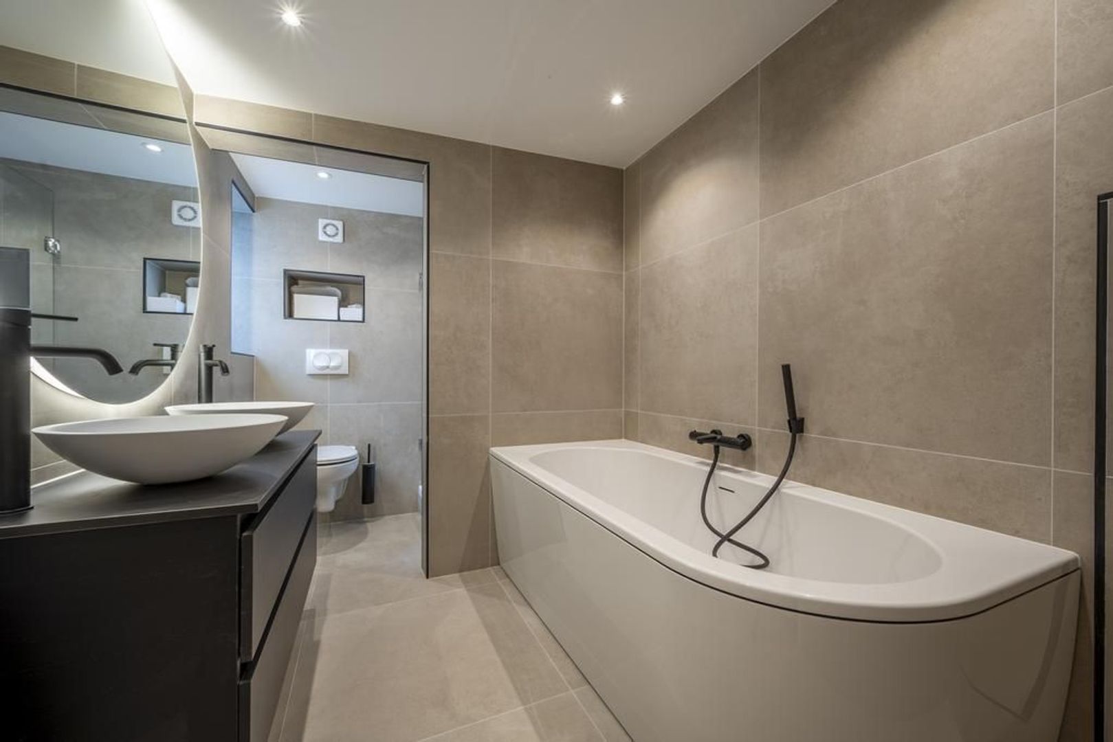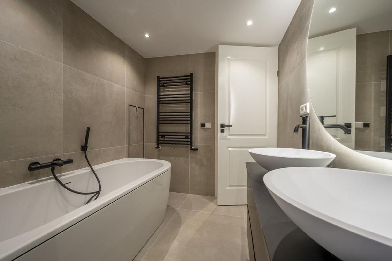 Een prachtige grote slaapkamer met dito badkamer. Deze is ingericht met een ligbad, aparte doucheruimte, wastafelmeubel met kommen, toilet, spiegel, inbouwspots en comfortabele vloerverwarming.