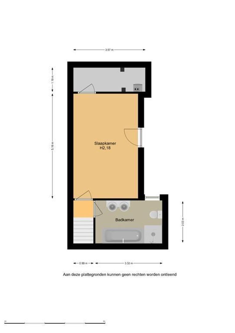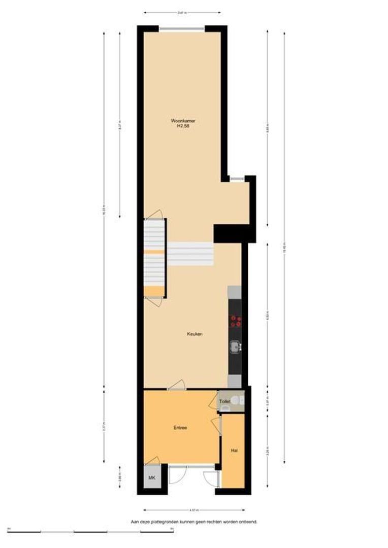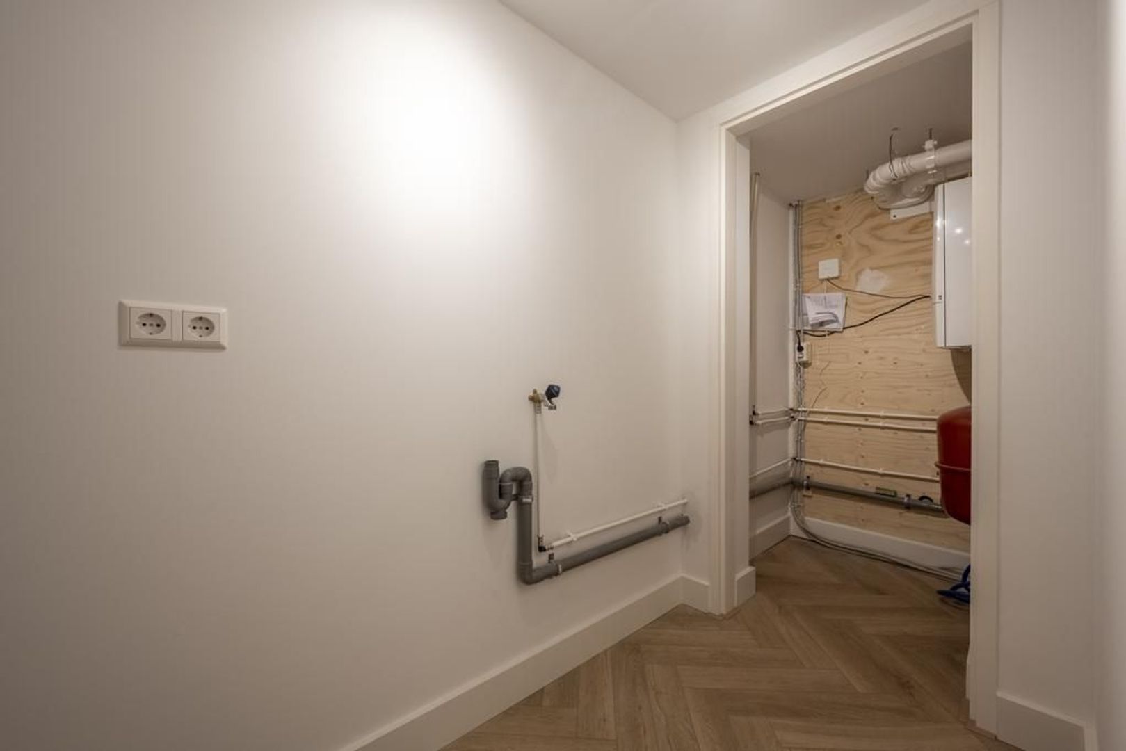 In het onderhuis is ook een technische ruimte, met de aansluiting voor de wasmachine en de cv-ketel. Een deur geeft toegang tot een (smalle), besloten buitenplaats van ruim zes meter lengte. Deze patio is voorzien van drainage.