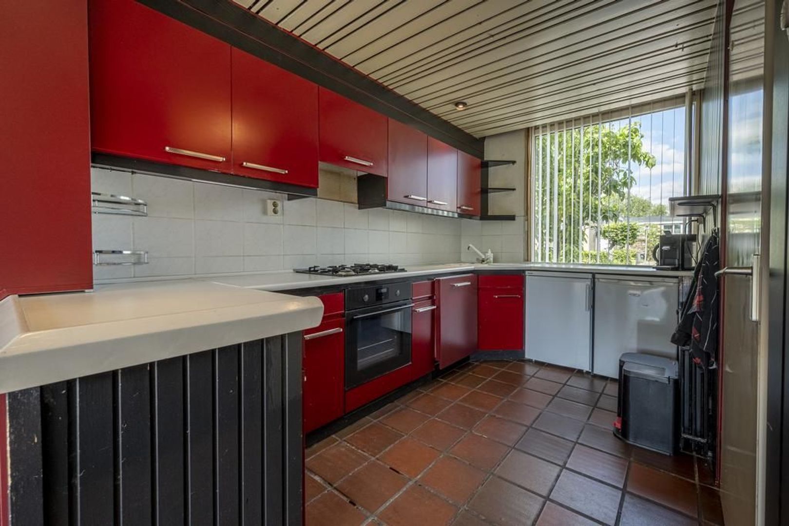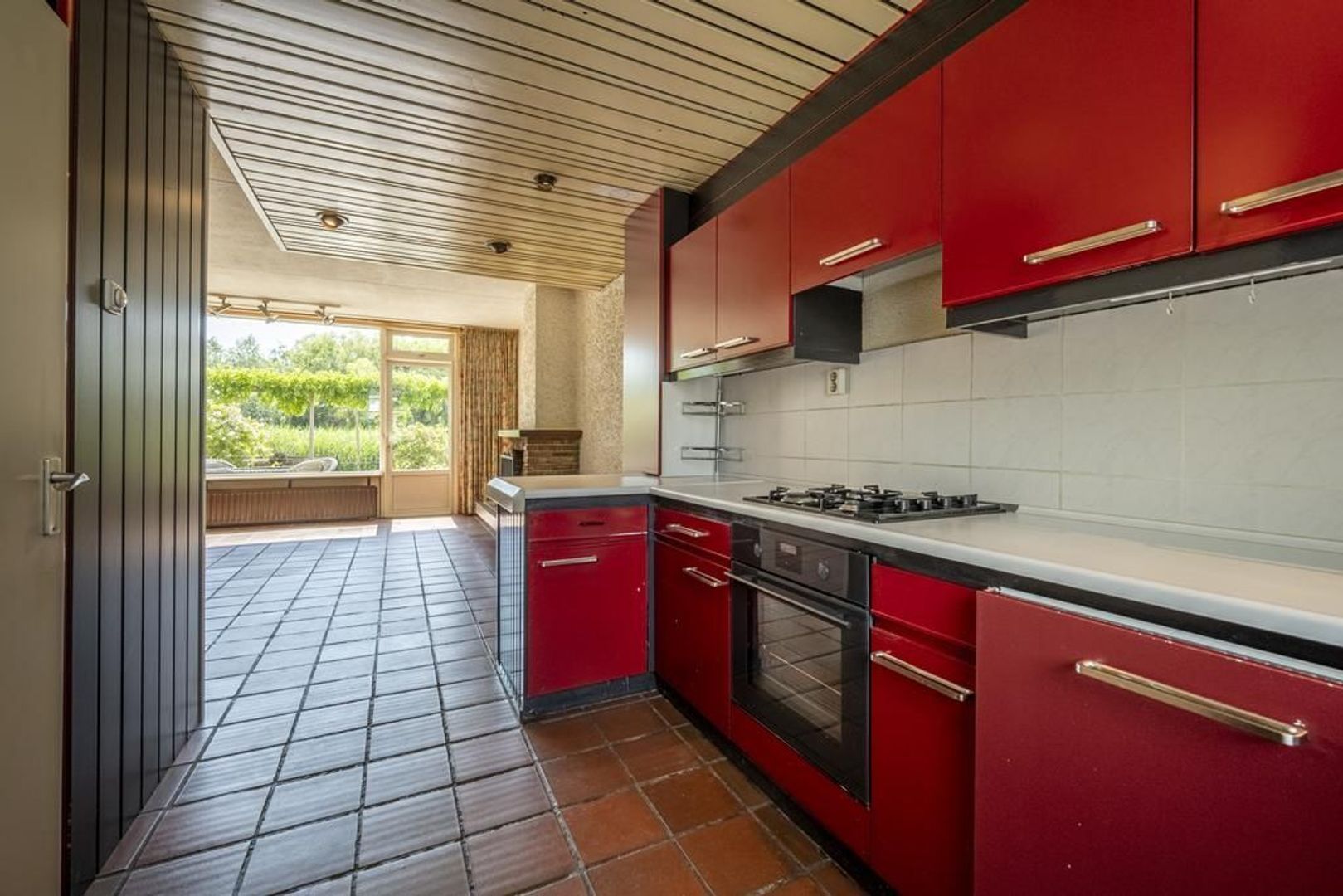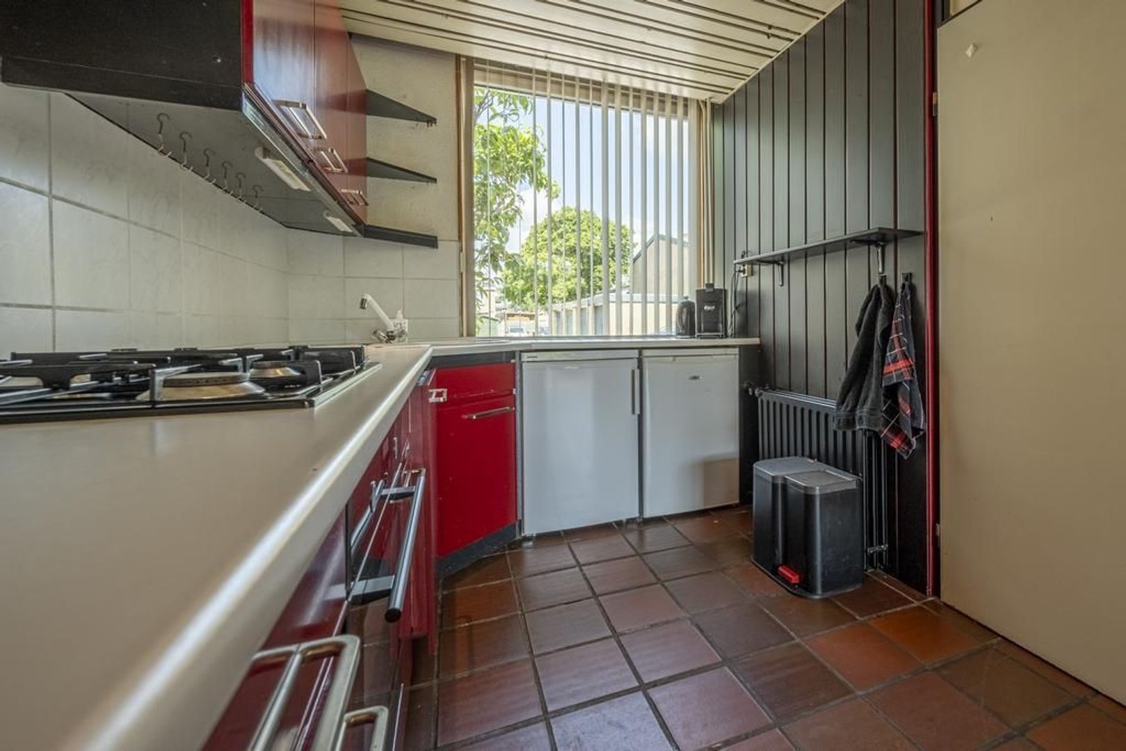 Open keuken aan de straatzijde. Deze heeft een L-vormige inrichting met enkele inbouwapparaten.