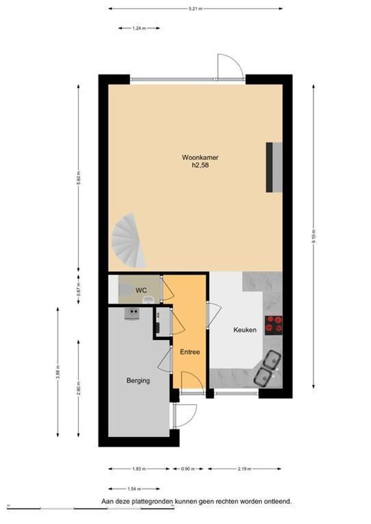 De indeling is als volgt: entree, hal met inpandige berging en meterkast.