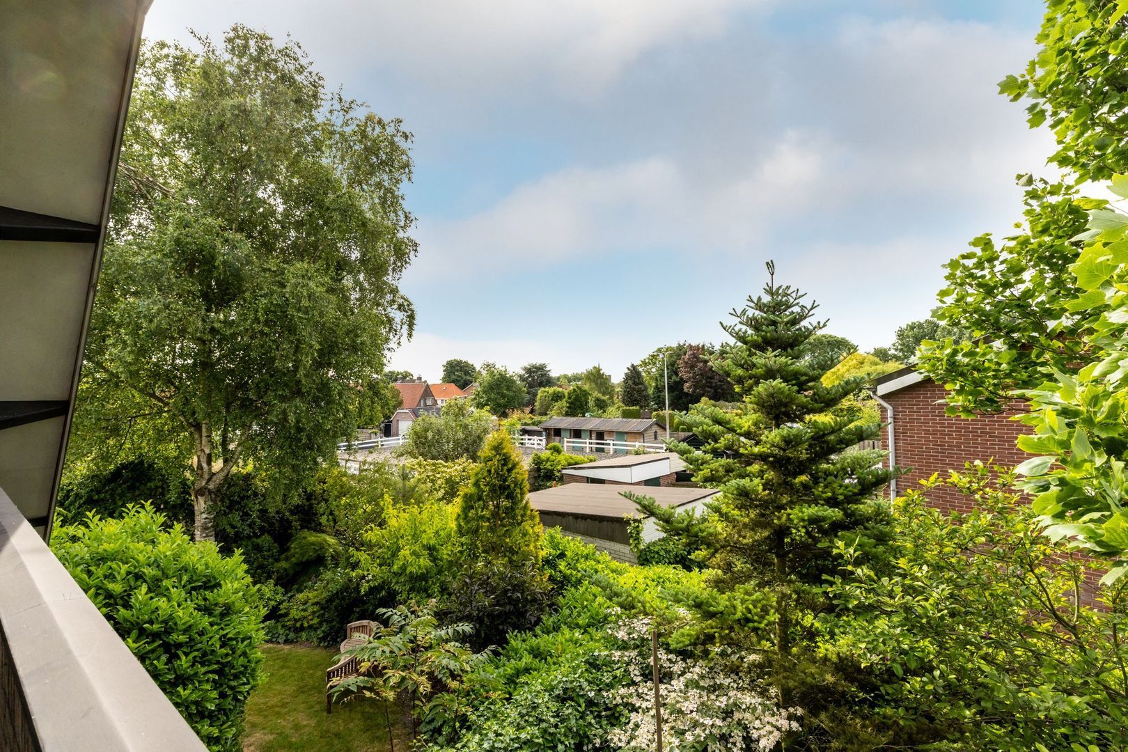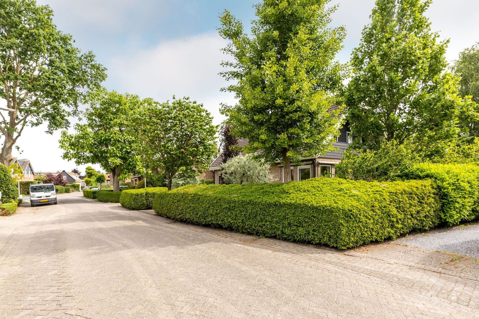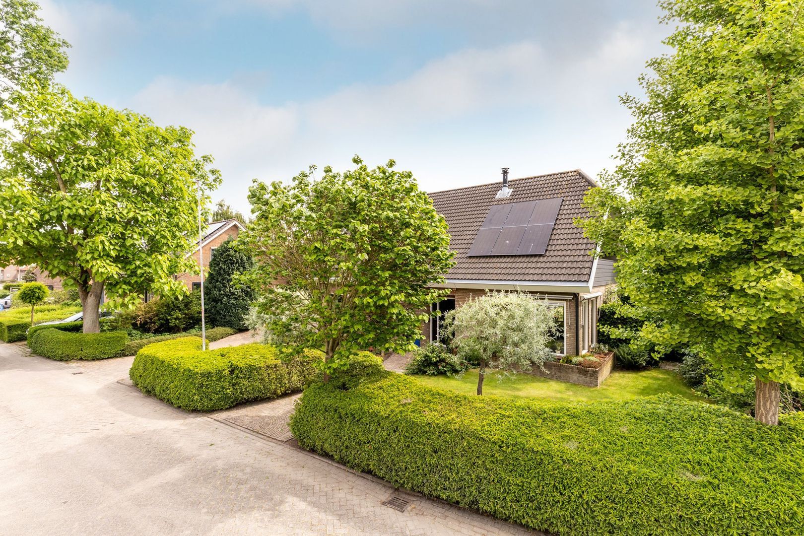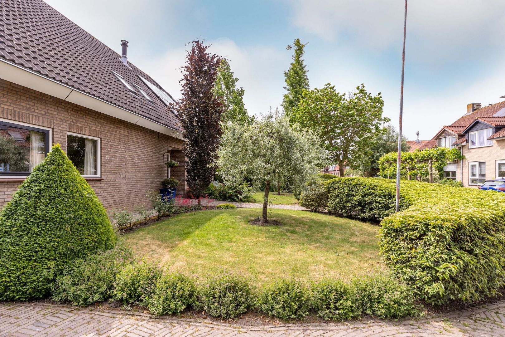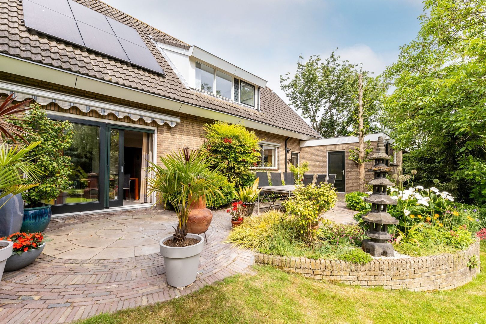 De achtertuin is prachtig aangelegd en goed onderhouden. Direct achter de woning ligt een fraai bestraat terras, dat overgaat in het gazon met prachtige borders, volwassen bomen en struiken, een vijverpartij en een mooi houten tuinhuis. Een hobbykas om zelf in te telen ontbreekt niet. Ook middenin de tuin ligt een fraai terras.