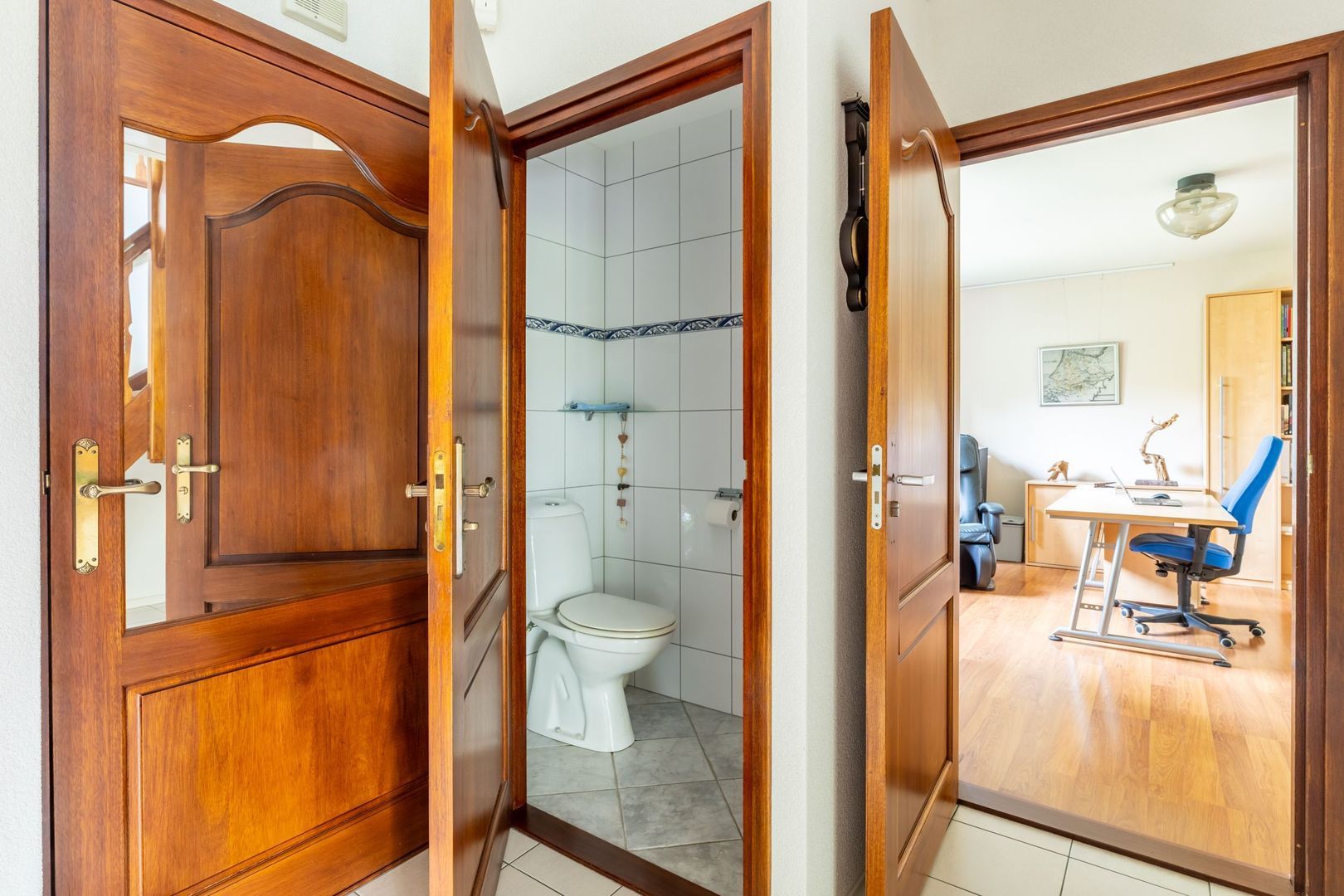 Op de verdieping zijn vier ruime slaapkamers, waarvan de twee aan de achterkant tevens toegang hebben tot het balkon. De overloop is ruim en licht dankzij de dakramen.