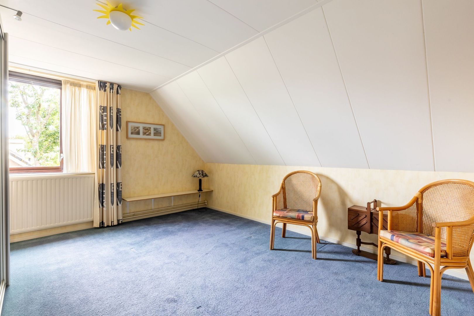 Een vlizotrap geeft toegang tot de bergzolder, die voldoende stahoogte heeft onder de nok.