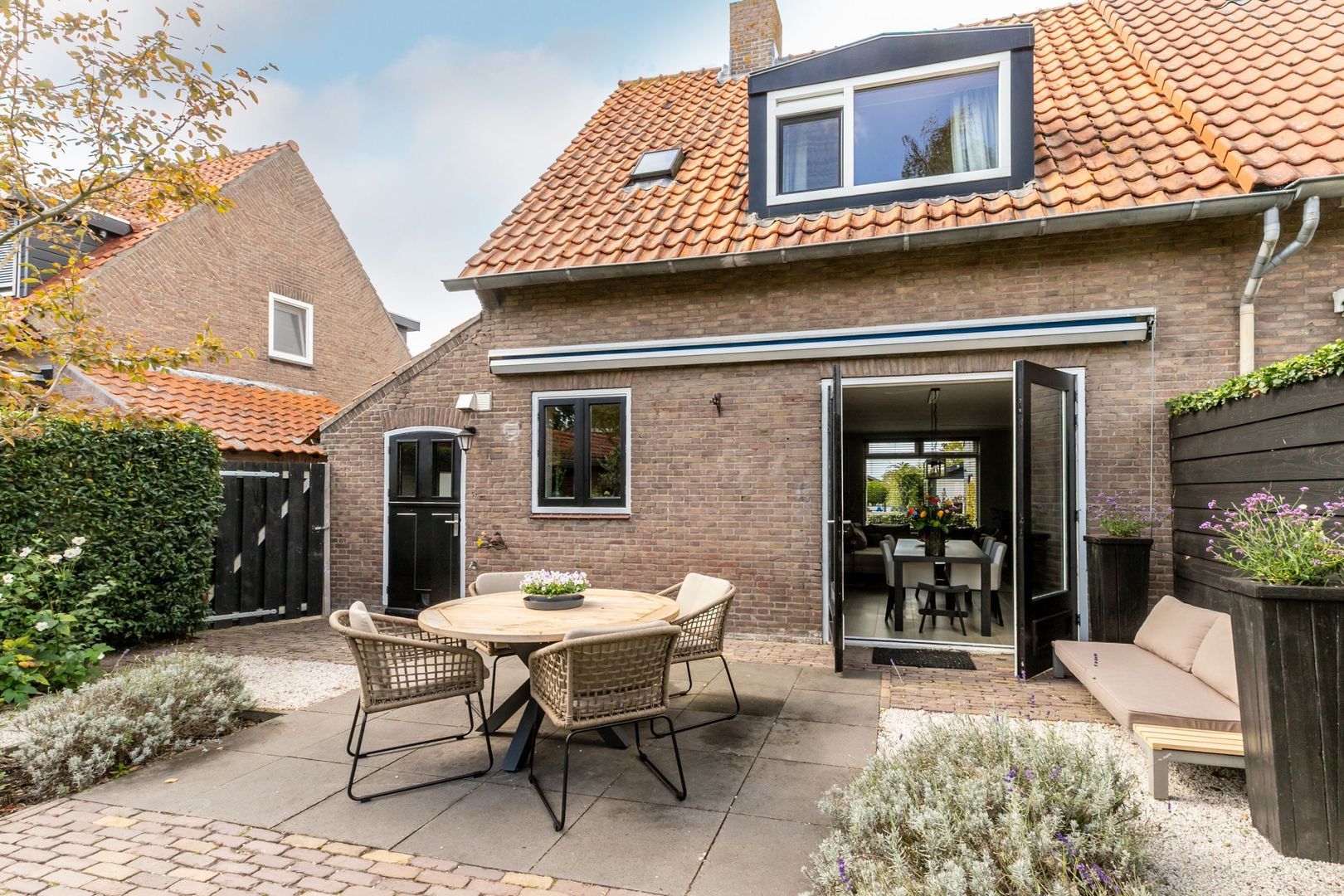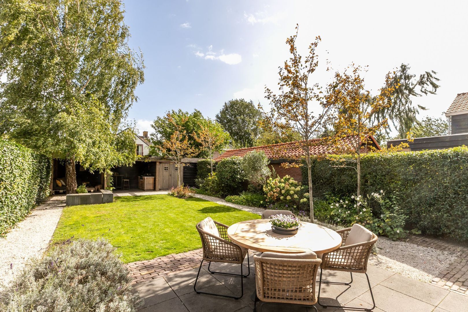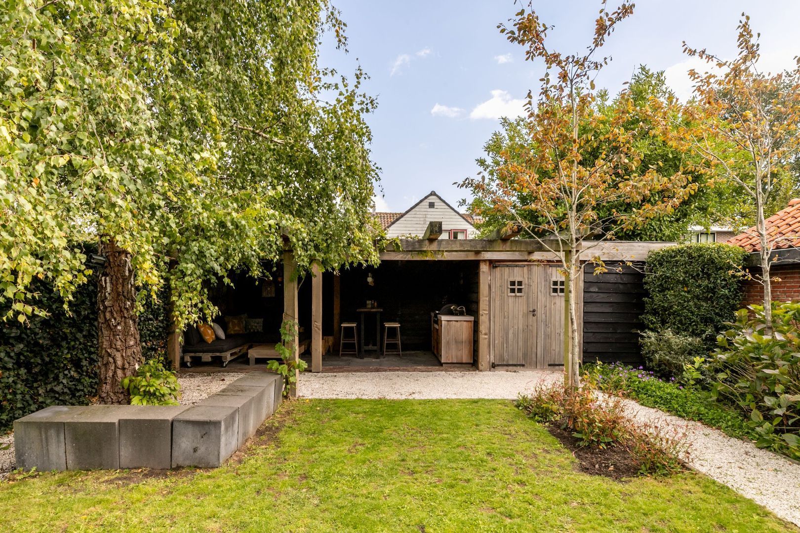 De tuin biedt veel ruimte en privacy en is goed aangelegd. Achterin staat een houten berging met aangebouwde overkapping, waarin het tot 's avonds laat goed toeven is.