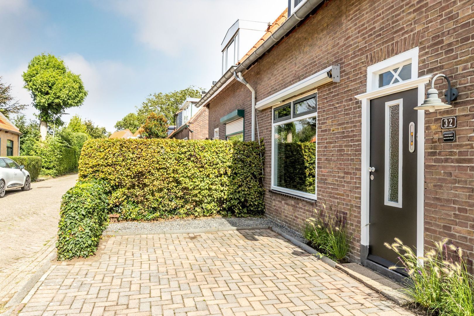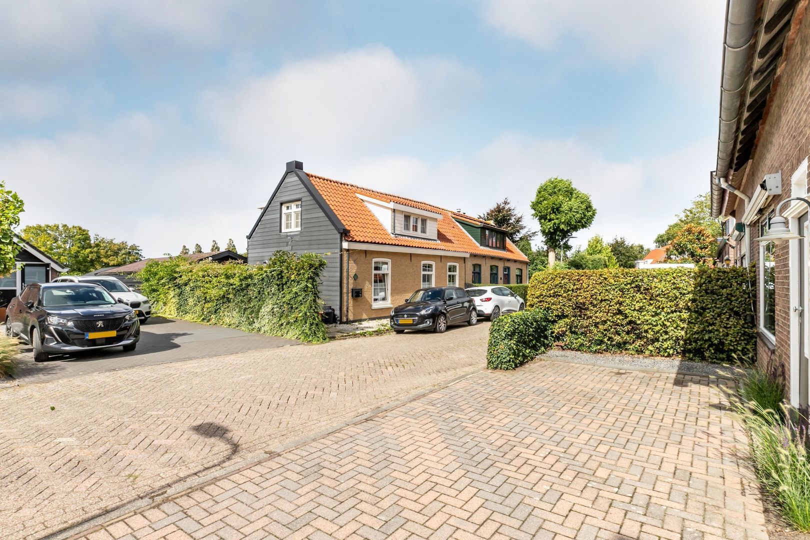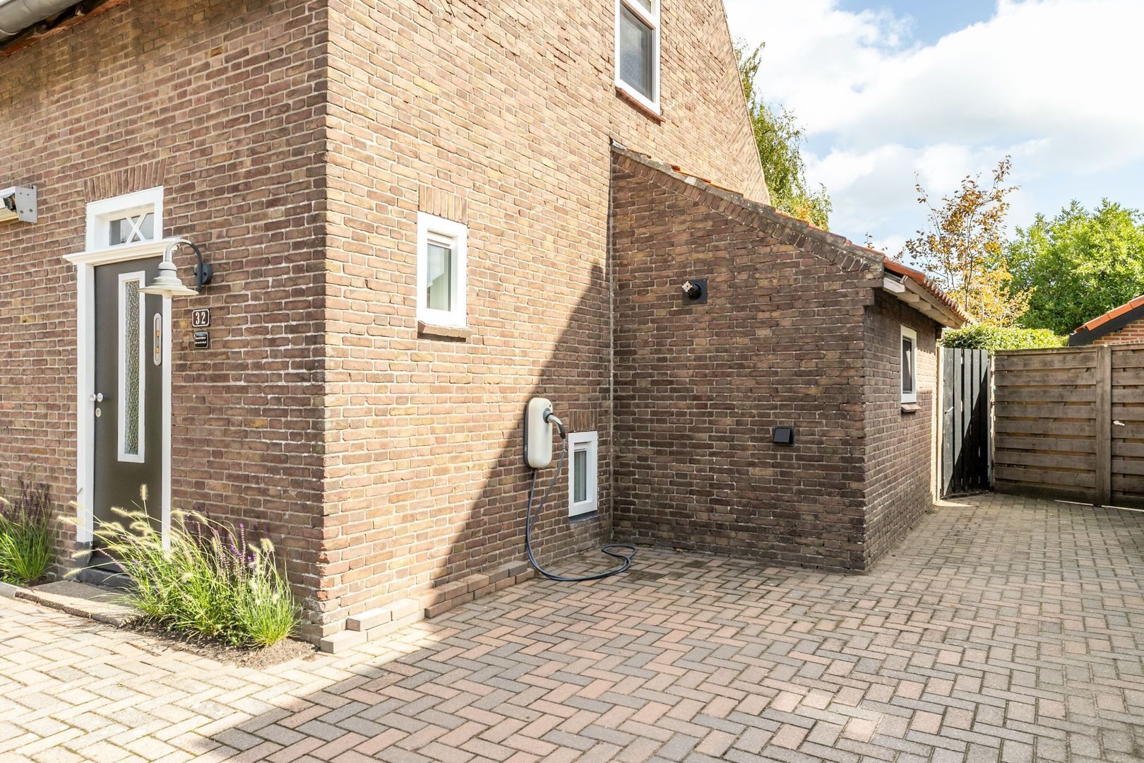 Aan de voorkant is voldoende ruimte om te parkeren op eigen terrein. Een oplaadpunt voor de elektrische auto is al aanwezig.