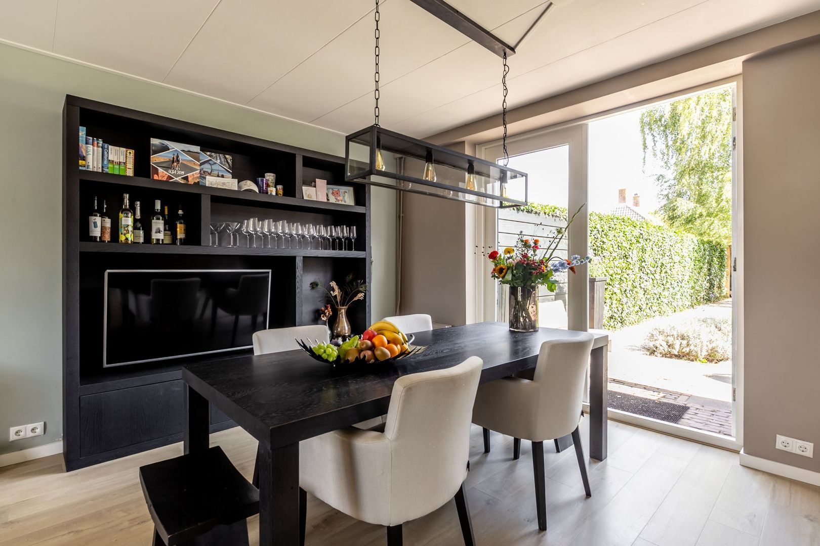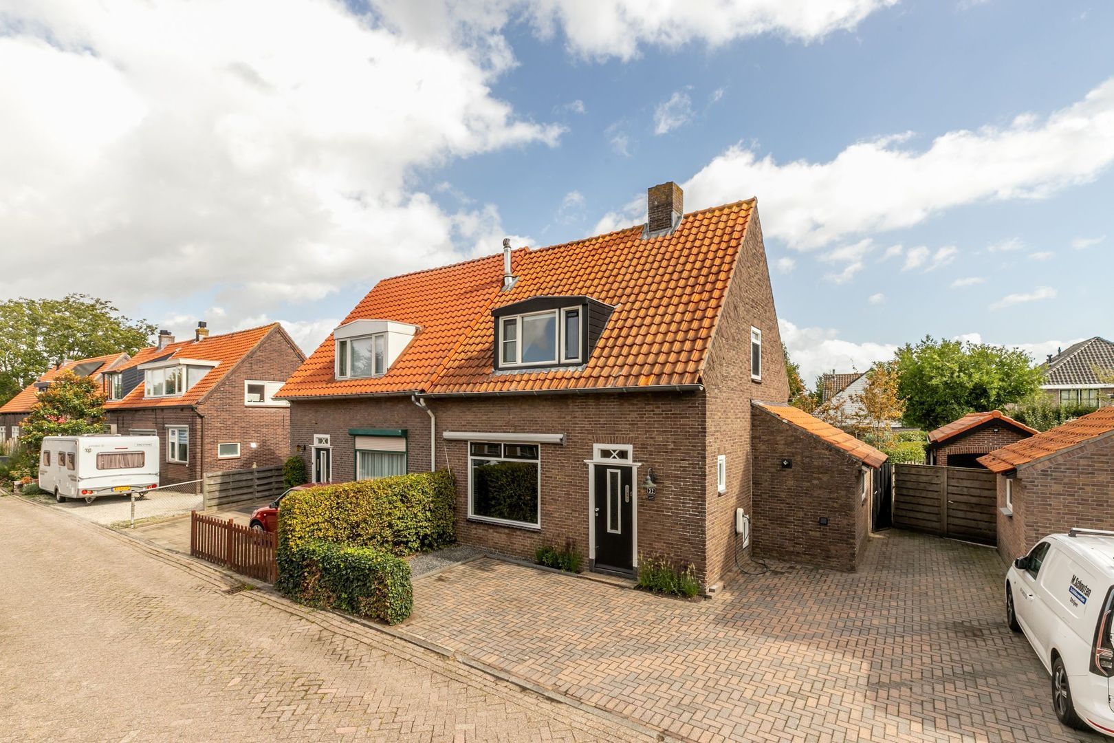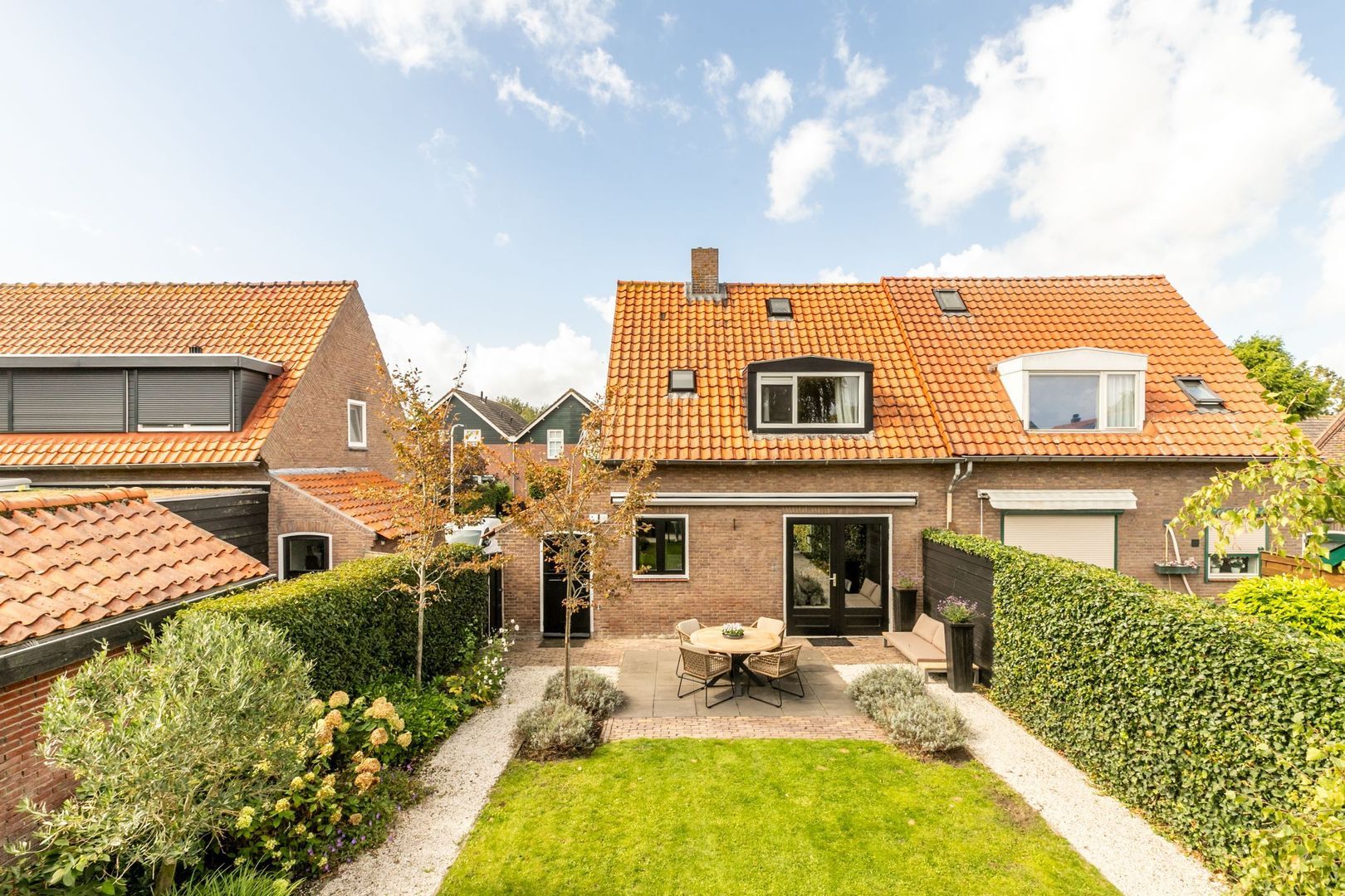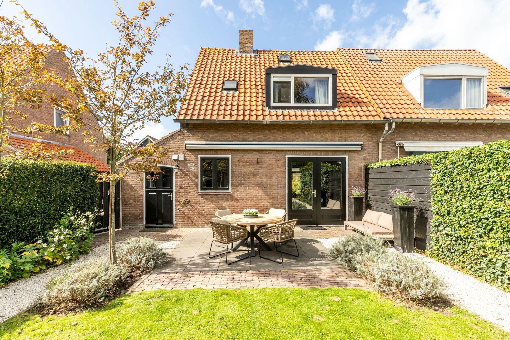 Eigentijds afgewerkte twee-onder-een-kapwoning met flinke tuin, berging en overkapping.