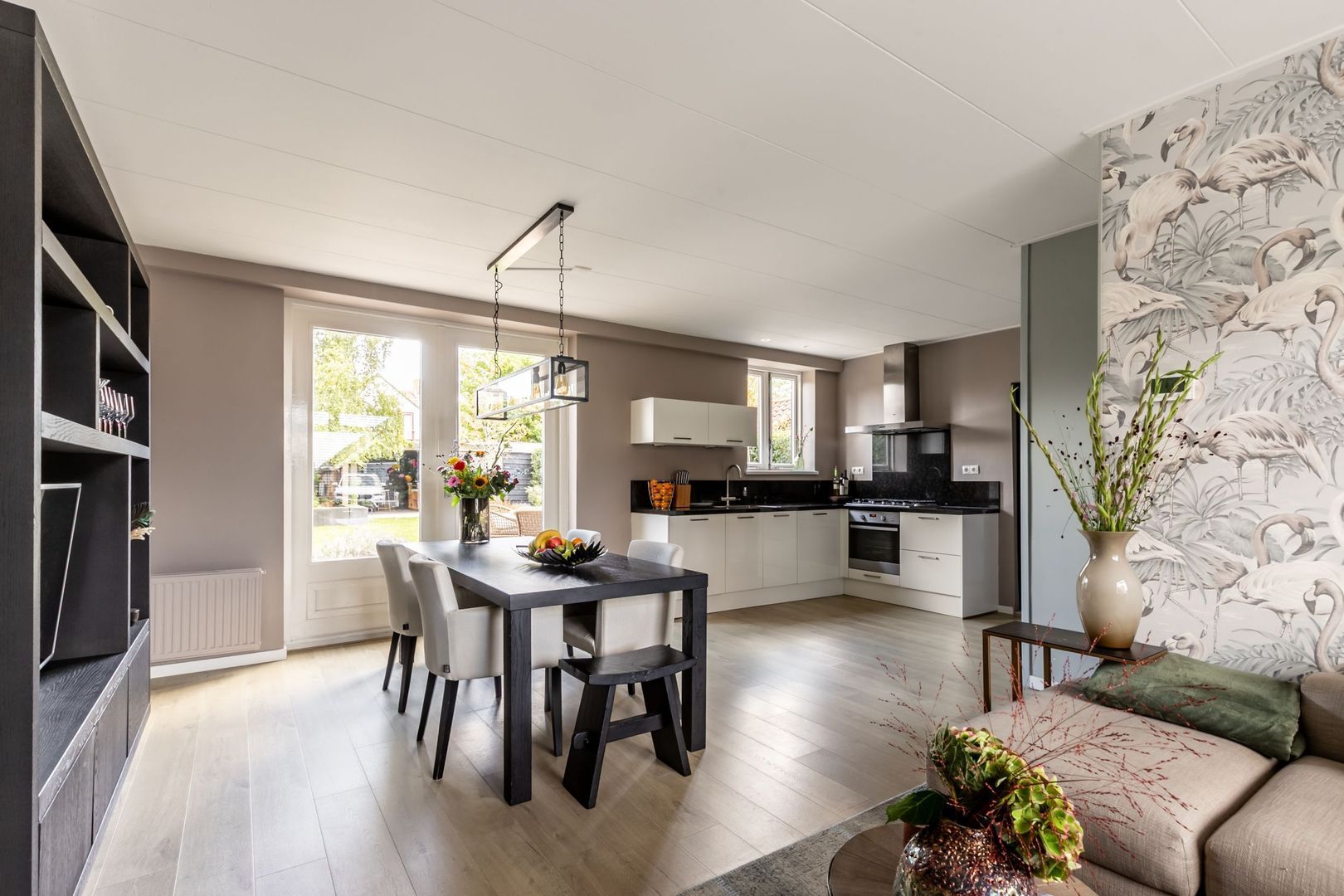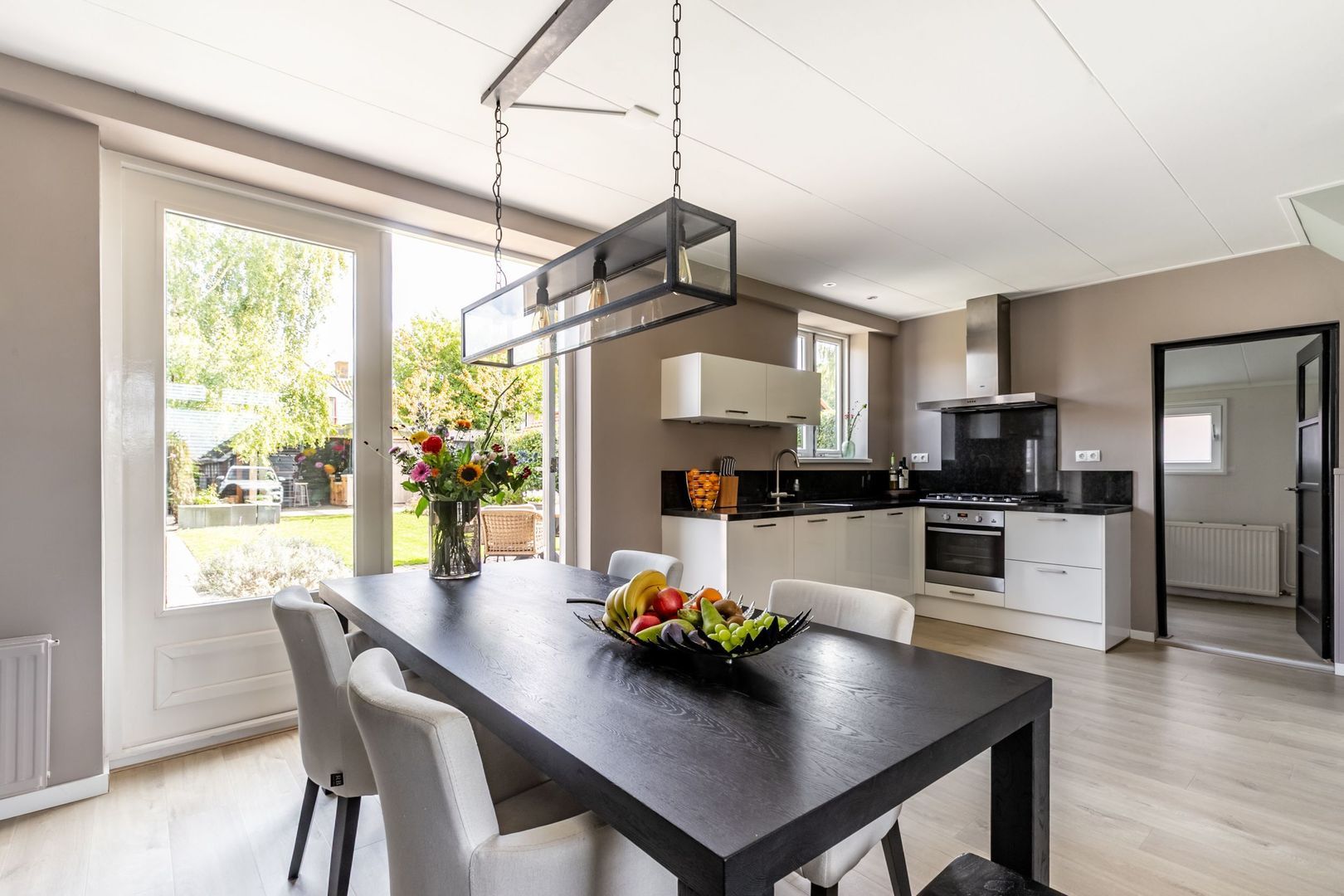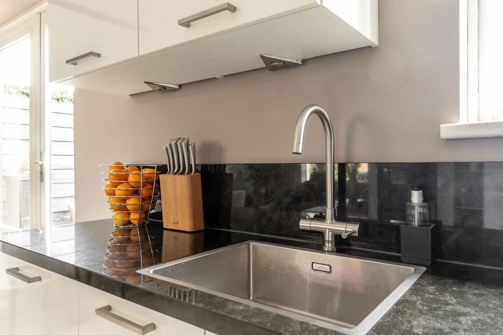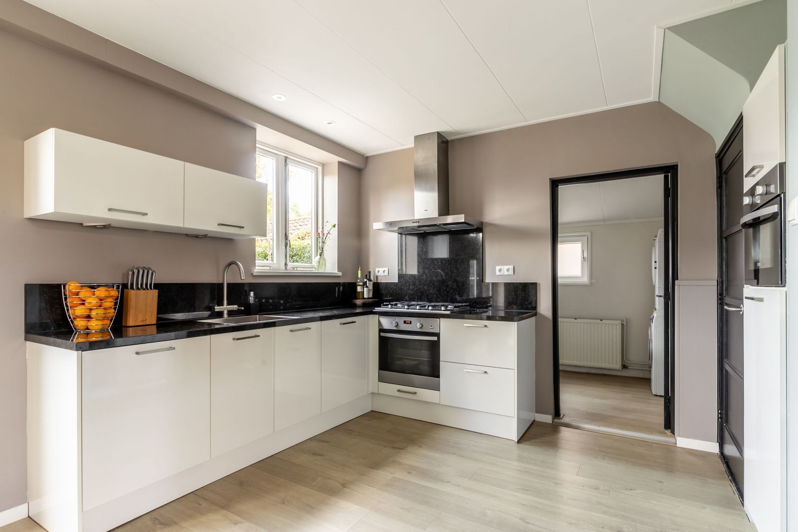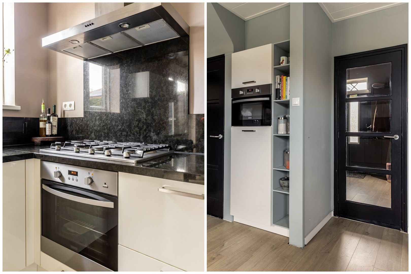 Naast de keuken bevindt zich een praktische bijkeuken met o.a. de aansluitingen voor de wasapparatuur en een kast met de cv-ketel.