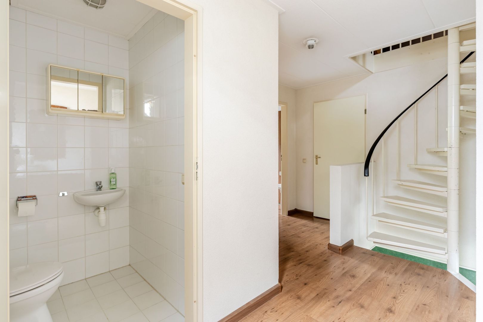Op de eerste verdieping is een grote overloop, waar eventueel een werkruimte kan worden gecreëerd.