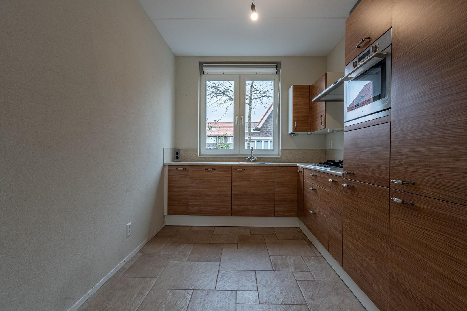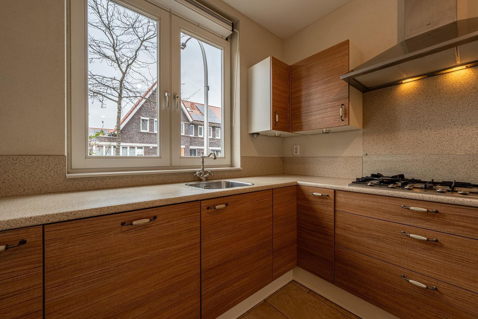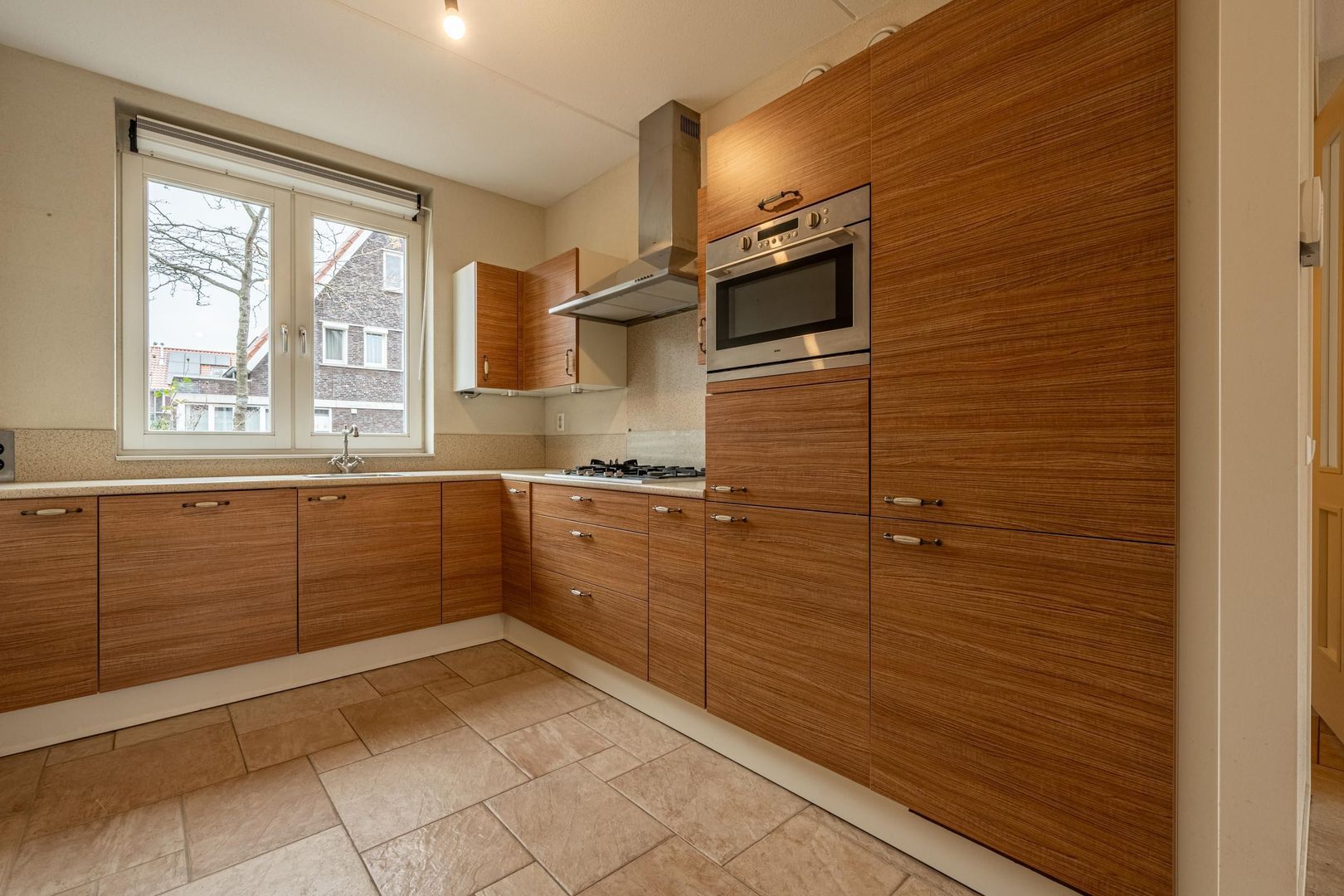 entree, hal met toiletruimte, trapopgang en meterkast. Royale tuingerichte woonkamer met openslaande deuren naar de tuin. De keuken bevindt zich aan de straatkant. Deze is ingericht met een L-vormige wandopstelling en is uitgevoerd met inbouwapparatuur.