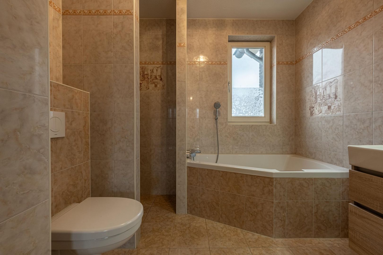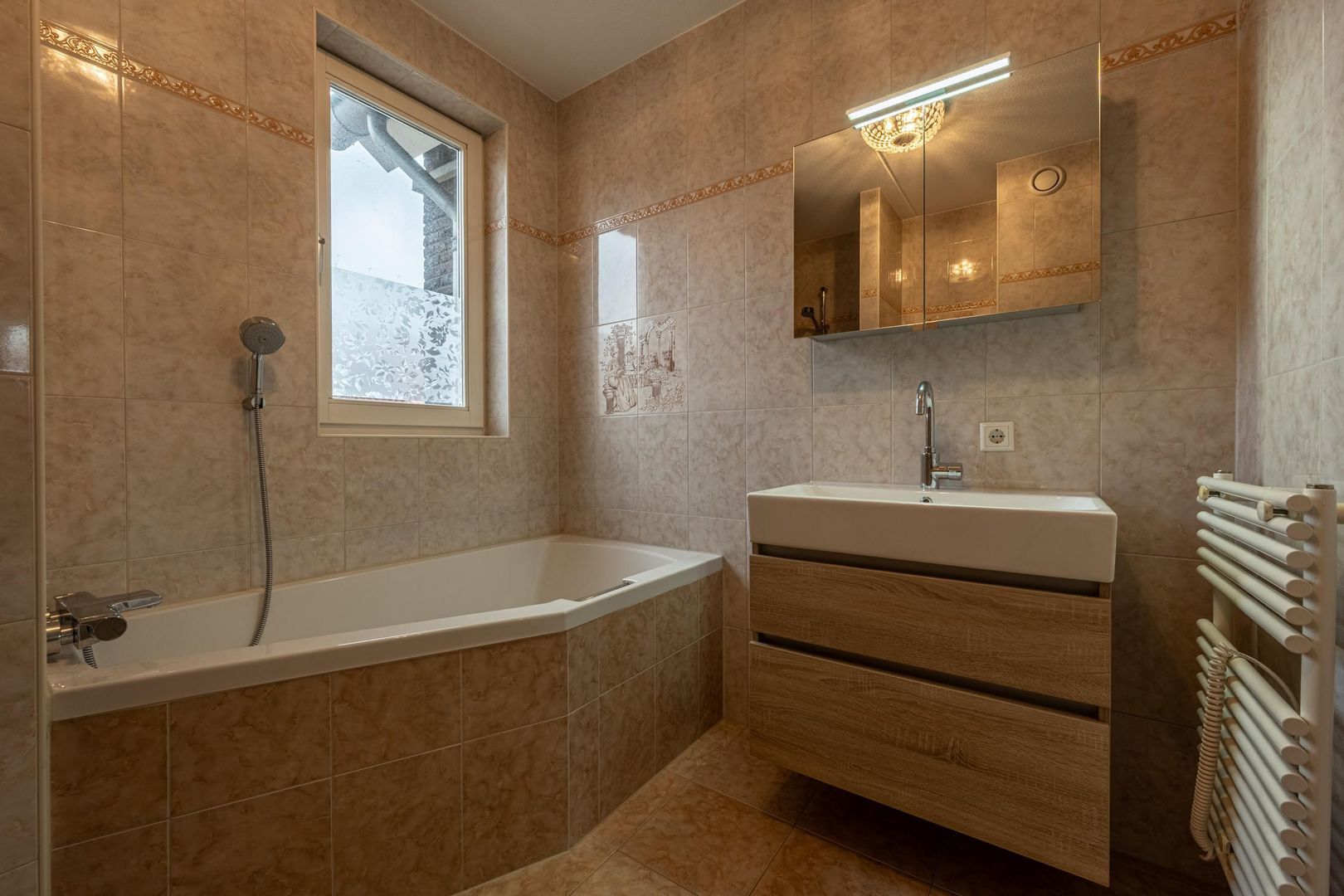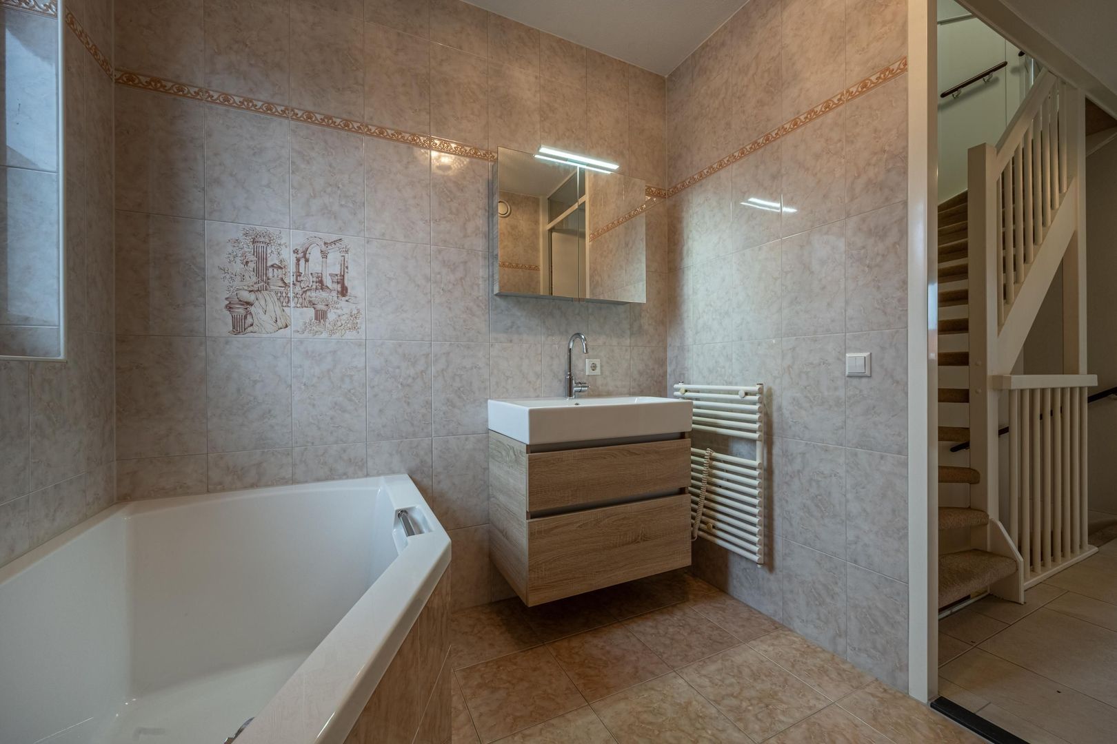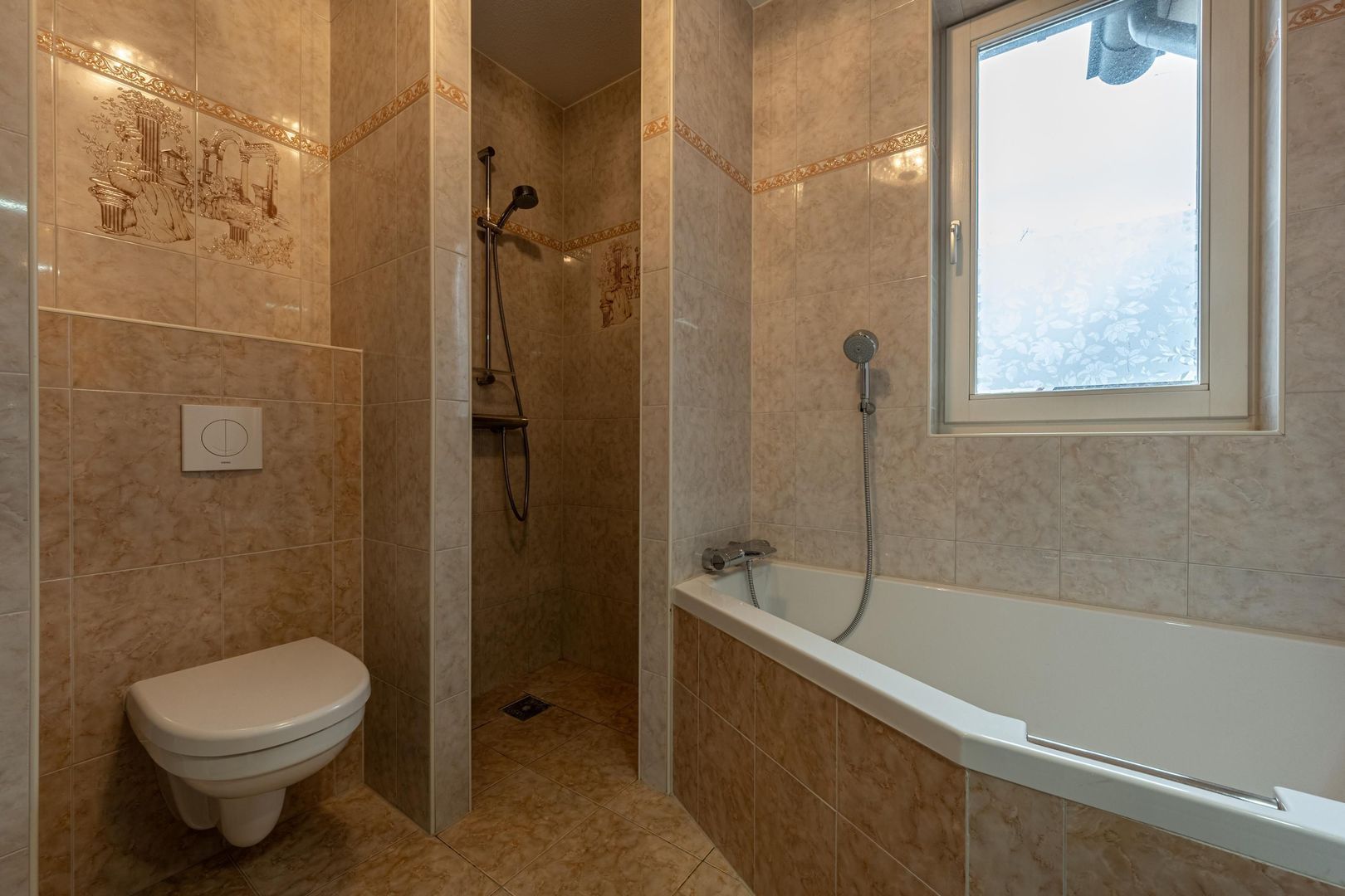 Op de eerste verdieping zijn drie slaapkamers en de badkamer. Deze is van alle gemakken voorzien en biedt plaats aan een hoekbad, een inloopdouche, een tweede toilet en een wastafelmeubel. Bijzonder prettig is het raam dat ventileren met frisse buitenlucht mogelijk maakt.