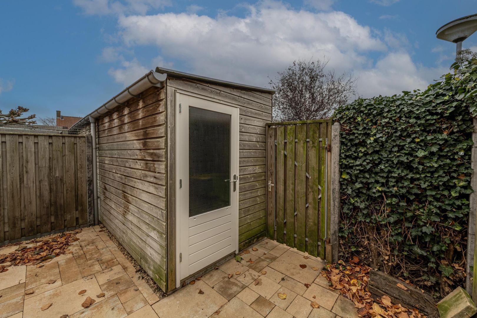 De achtertuin heeft een gunstige ligging op het zuidwesten. Achterin staat een houten berging. De tuin is onderhoudsvriendelijk ingericht.