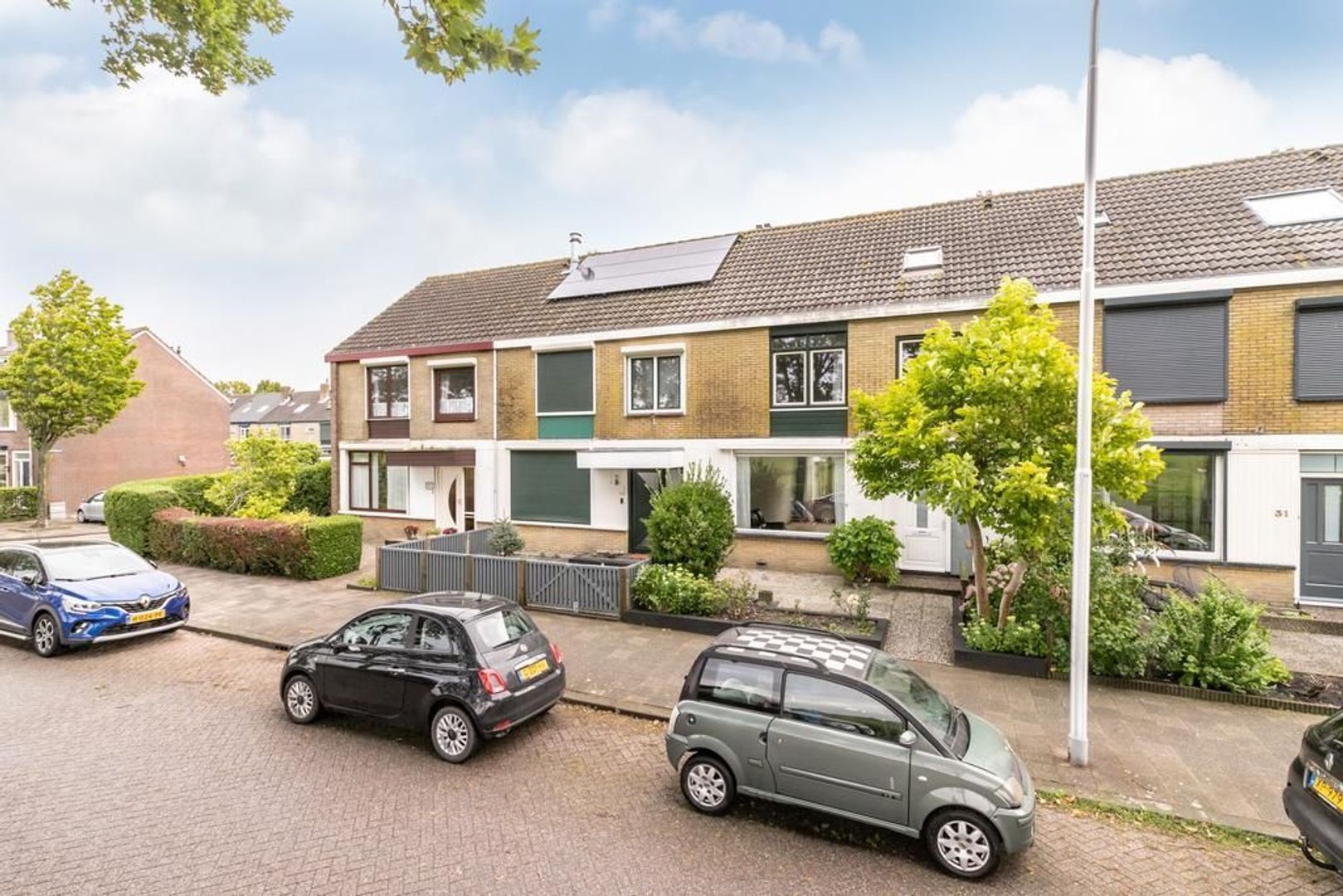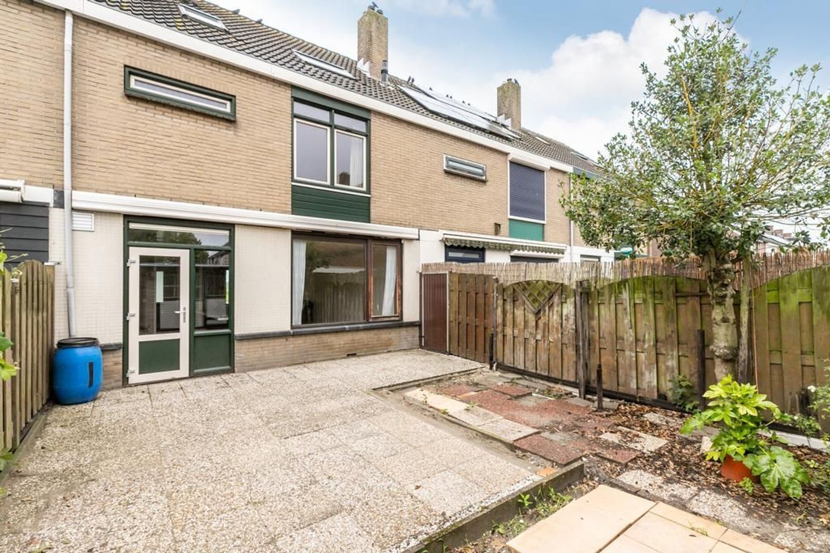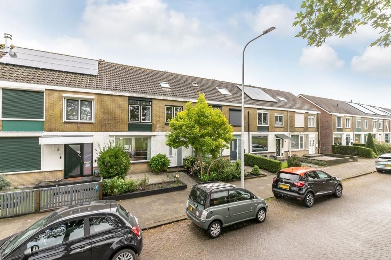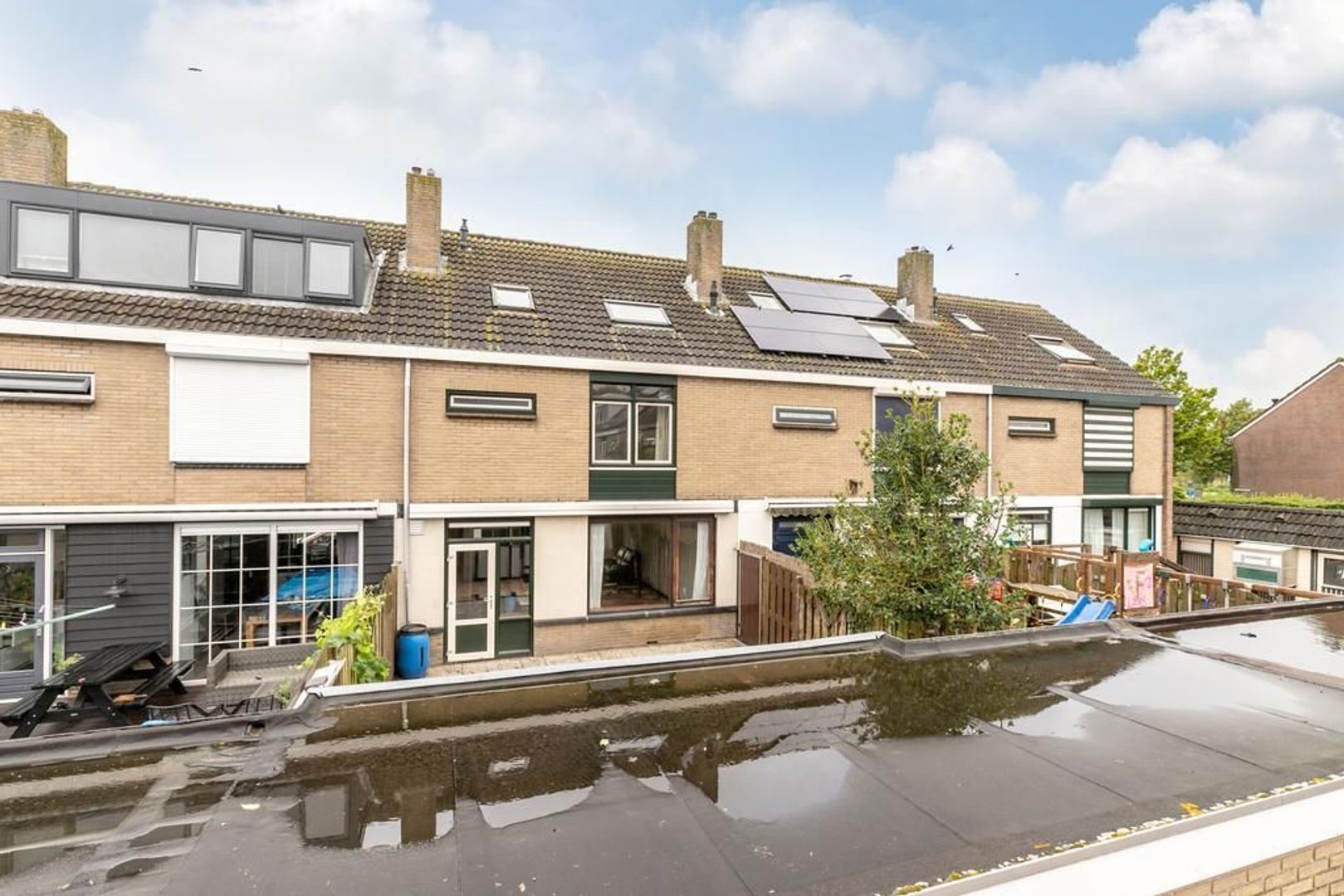 Aan de voorgevel is een elektrisch zonnescherm aangebracht en aan de achtergevel hangt een handbediend zonnescherm.