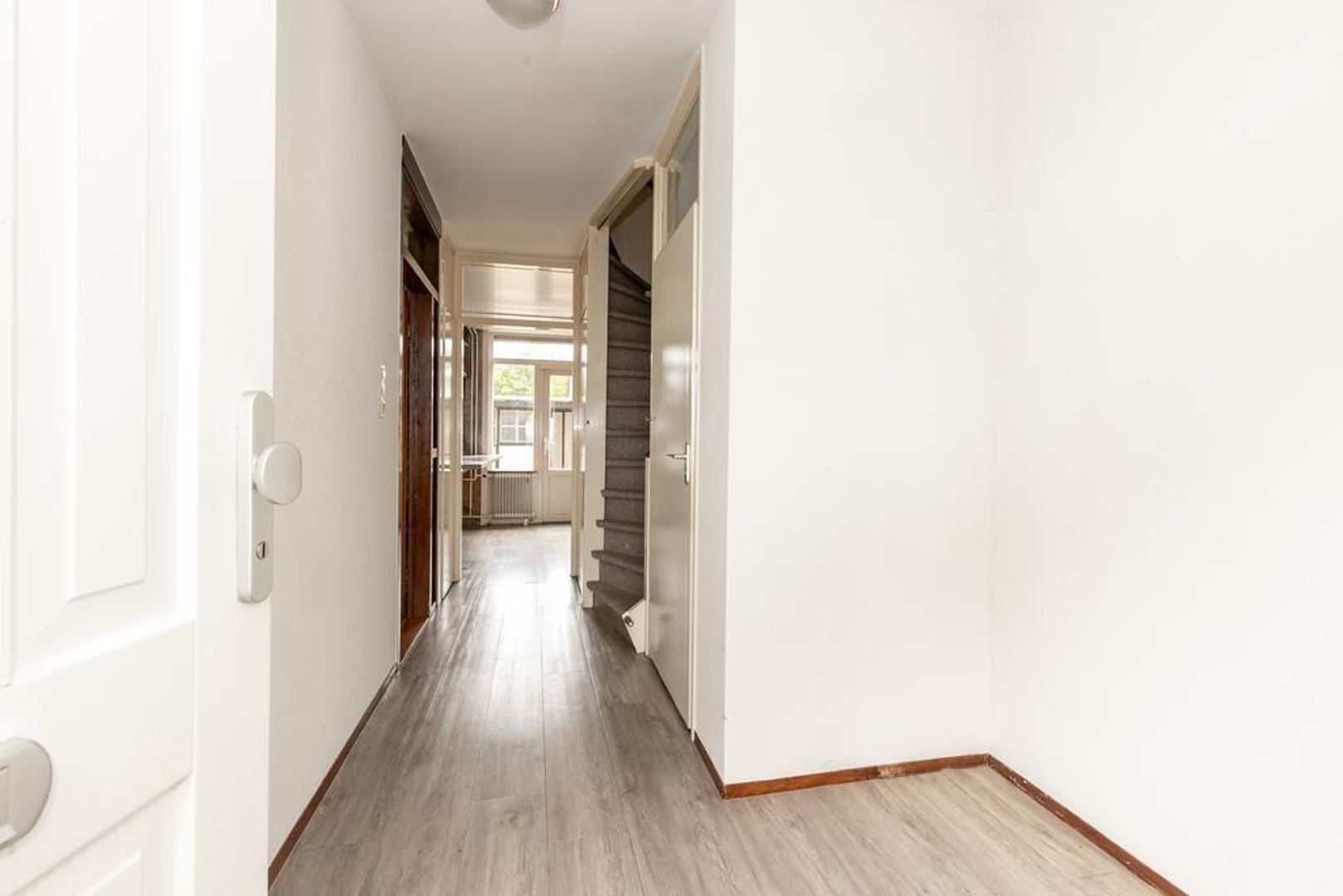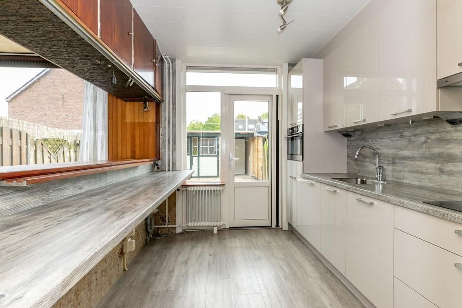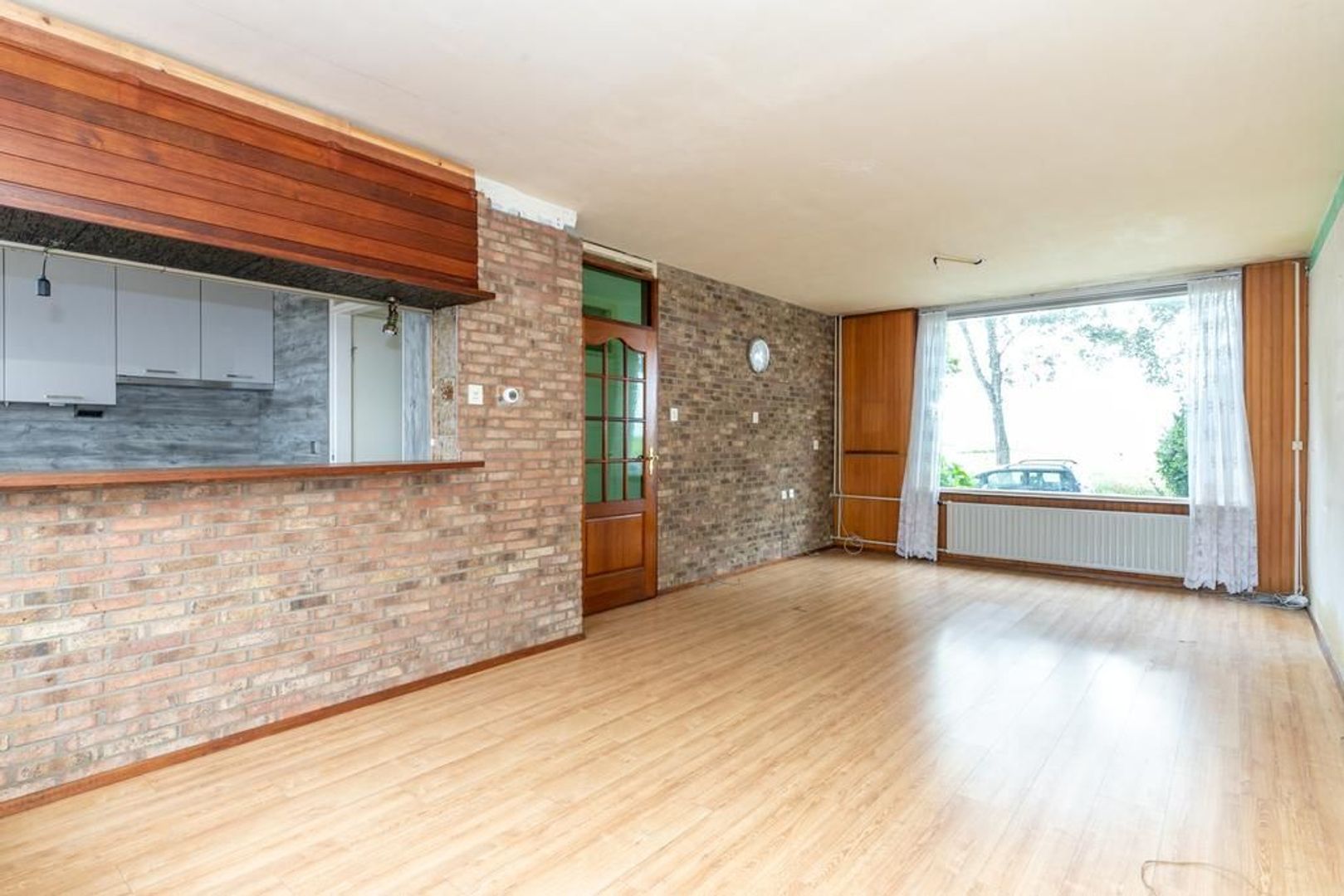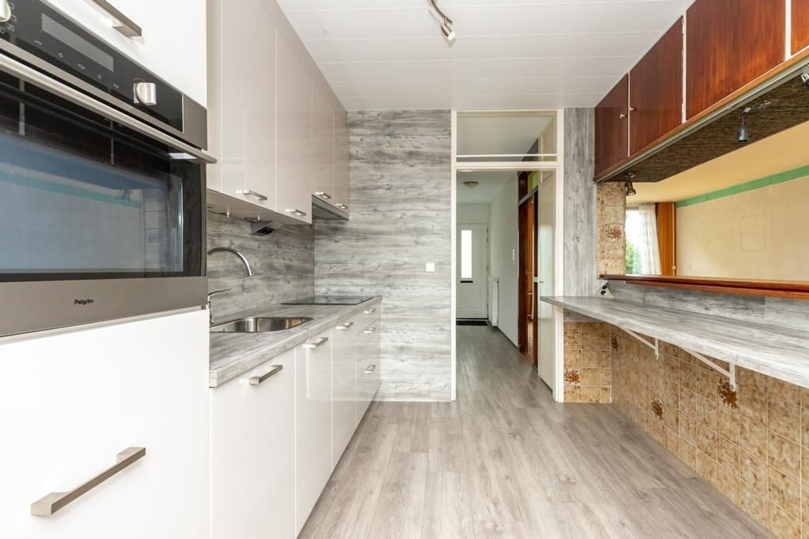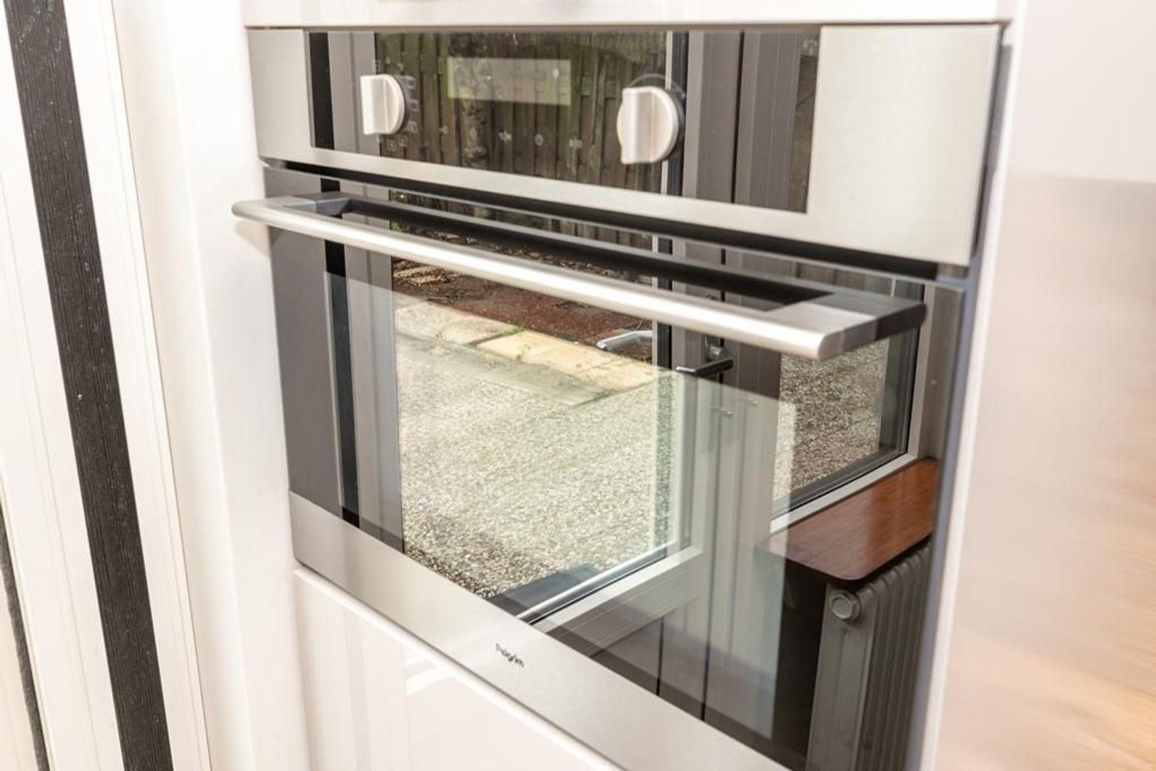 Doorzon woonkamer met een lengte van 8 meter en grote ramen aan zowel de voor- als achterzijde. De keuken is bereikbaar vanuit de hal, maar staat middels een grote opening in verbinding met de woonkamer. De moderne wandinrichting is voorzien van enkele inbouwapparaten.