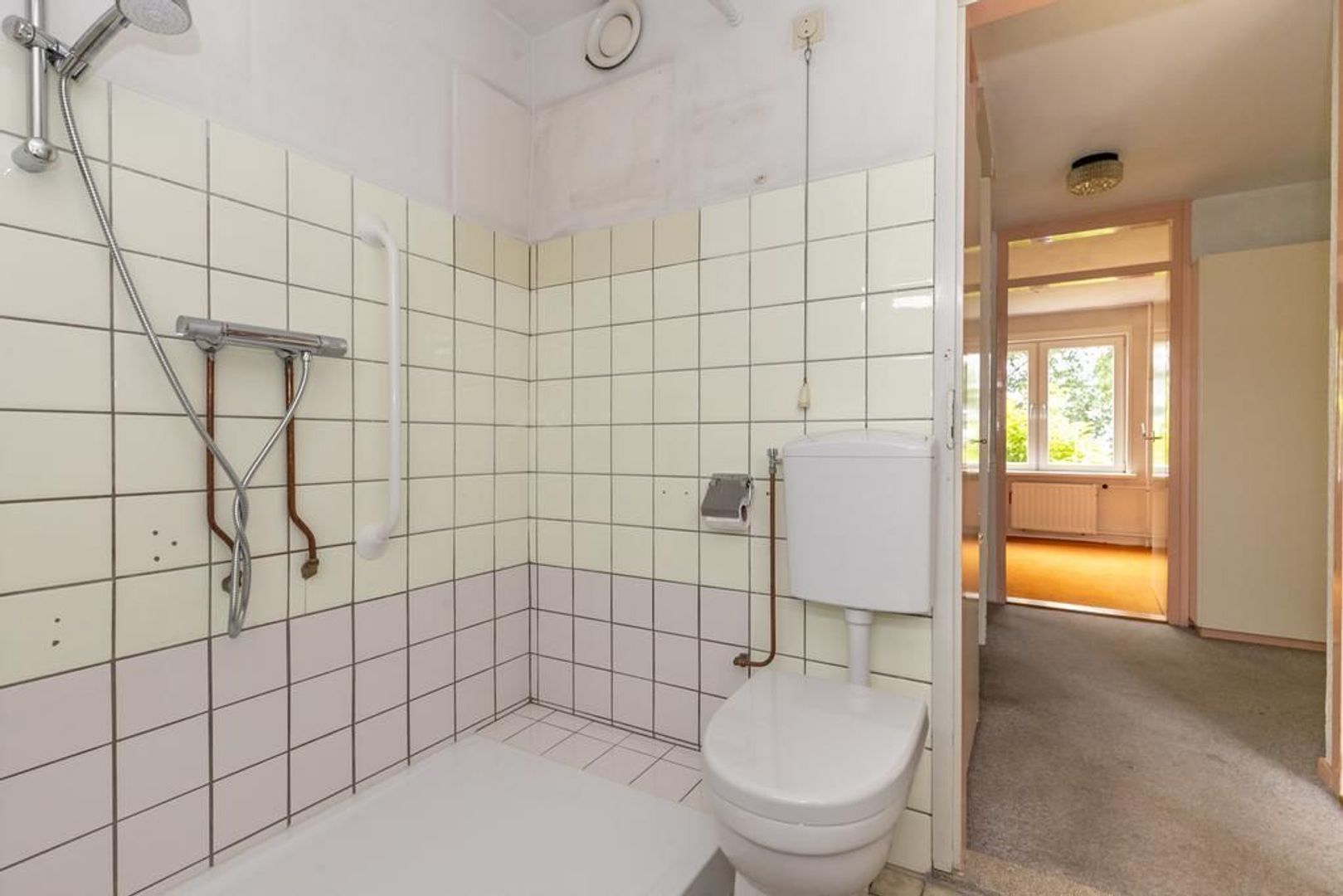 Op de eerste verdieping zijn drie slaapkamers en de badkamer. Deze is ingericht met een doucheruimte (op de plaats waar eerst het ligbad stond), een tweede toilet en een wastafel. Het raam kan open en dat geeft de mogelijkheid om te ventileren met frisse buitenlucht.