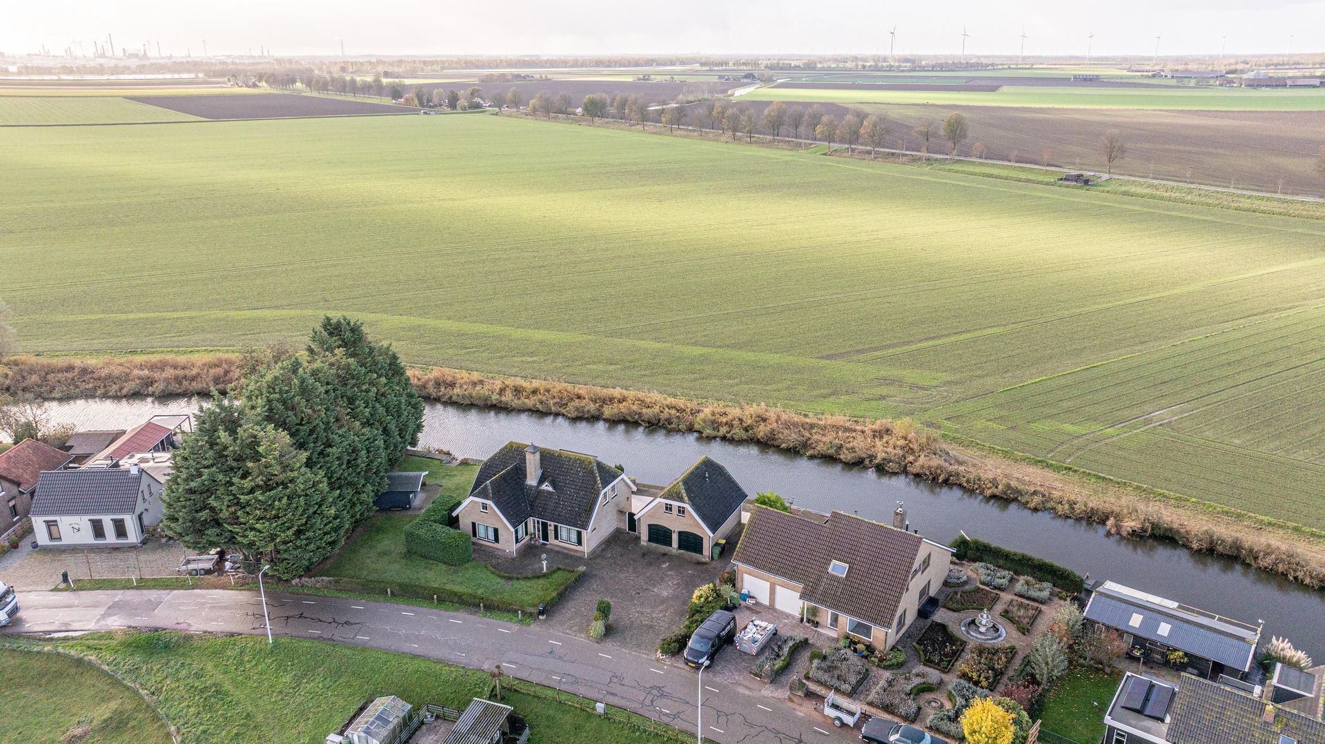 De achtertuin grenst aan het water (Strijense Haven).