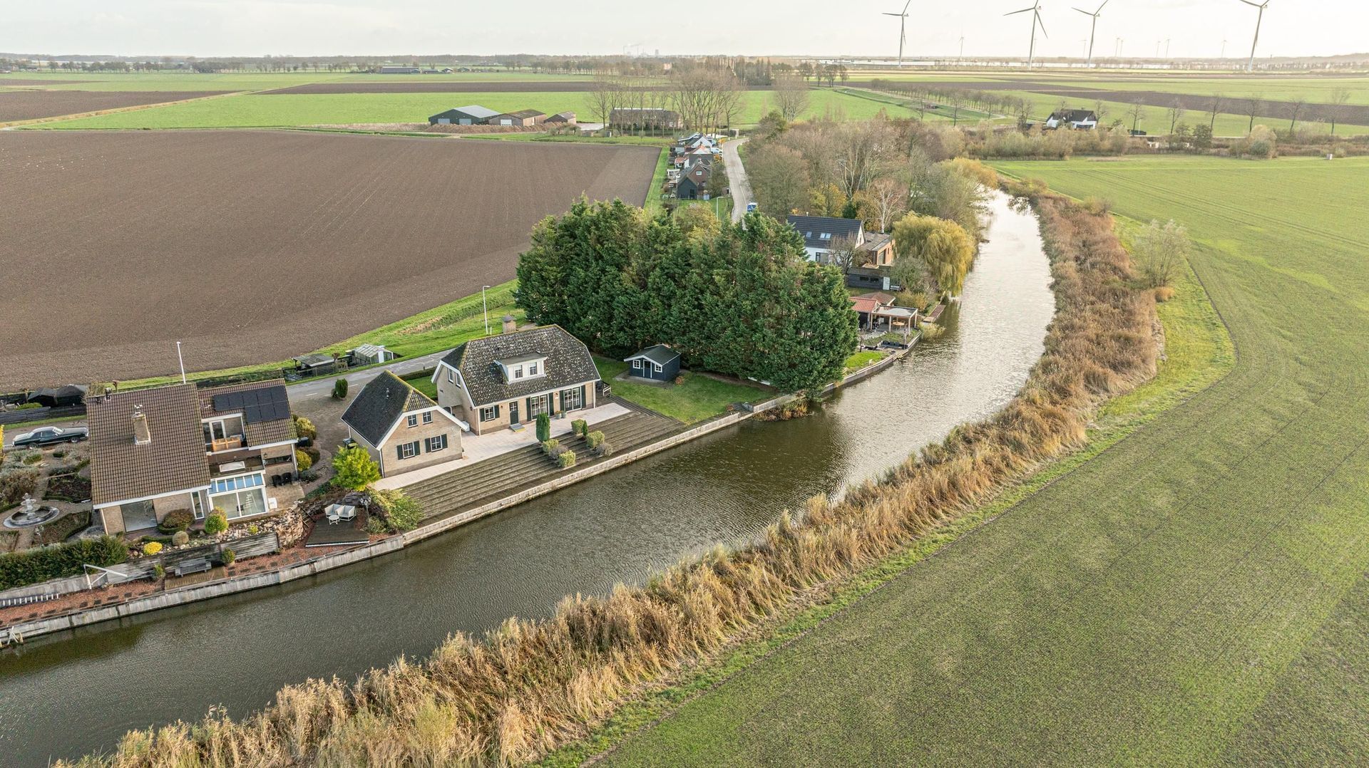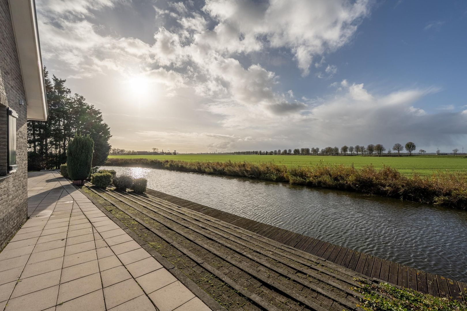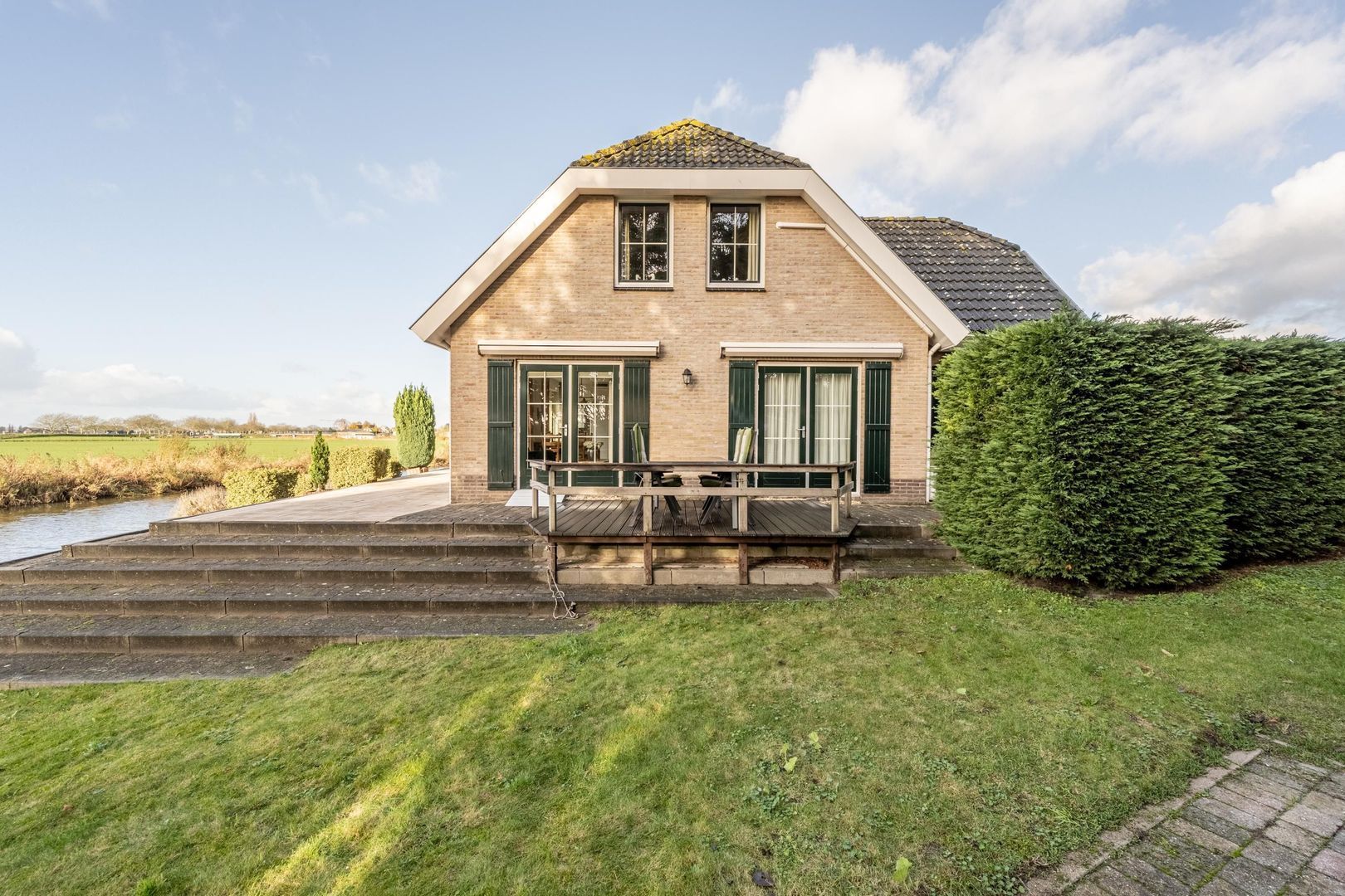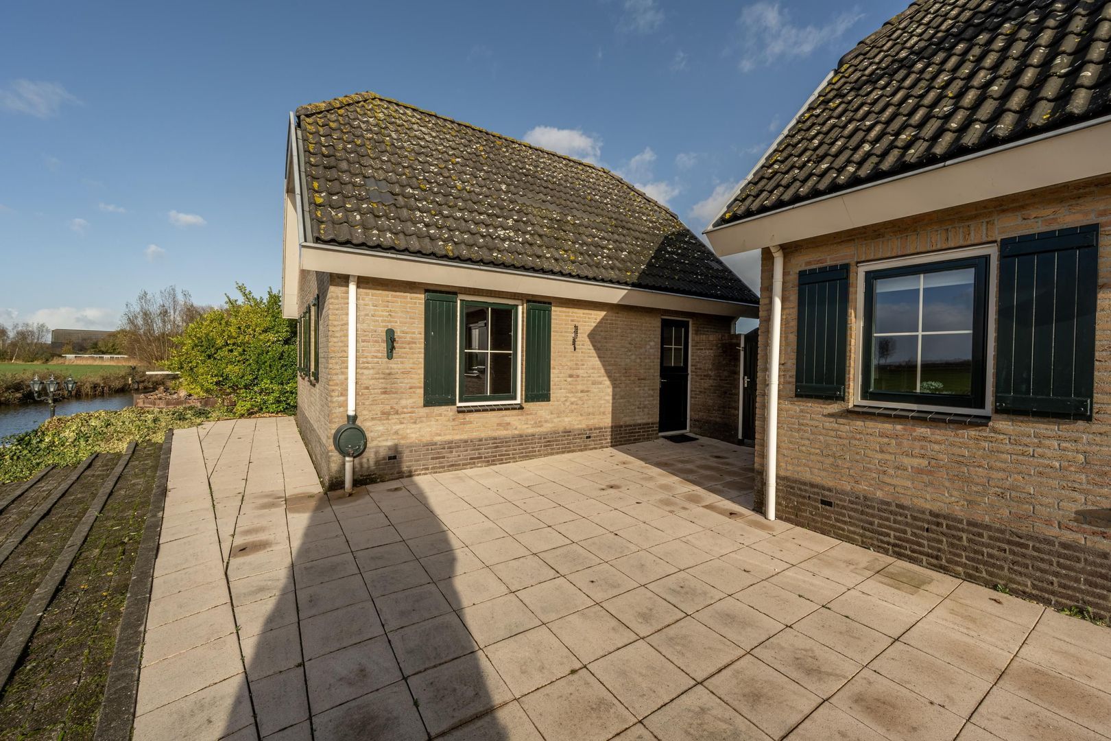 Aan de achterkant is het perceel zuid-west georiënteerd. Aan het woongedeelte is een fraai terras aangelegd, wat overgaat in een talud richting het water.